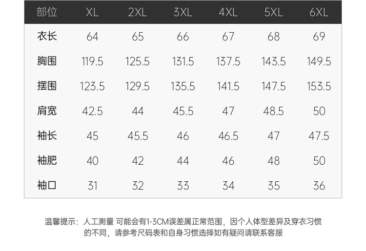 XL; 2XL; 3XL; 4XL; 5XL; 6XL; L