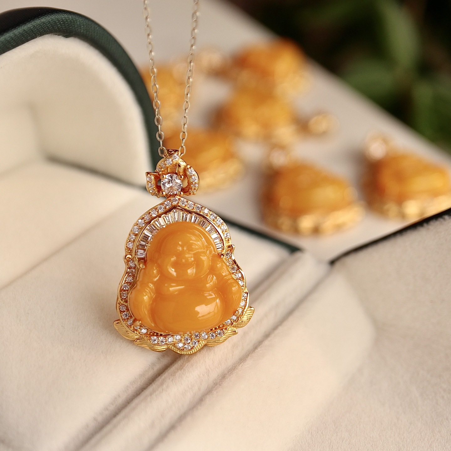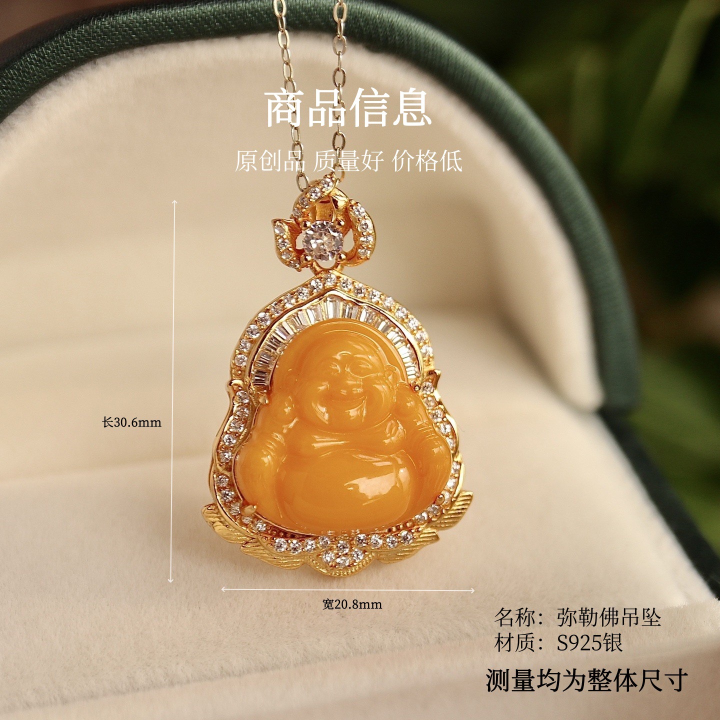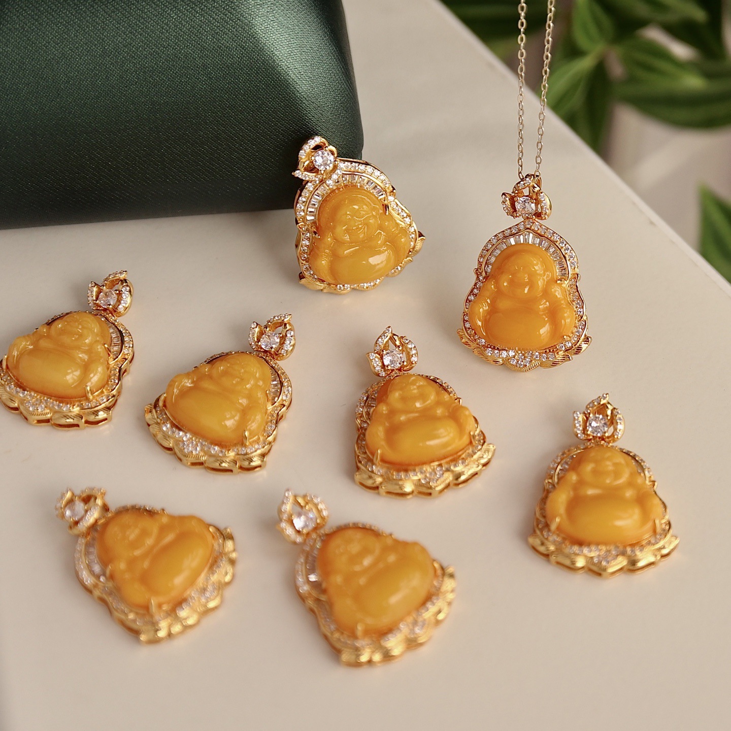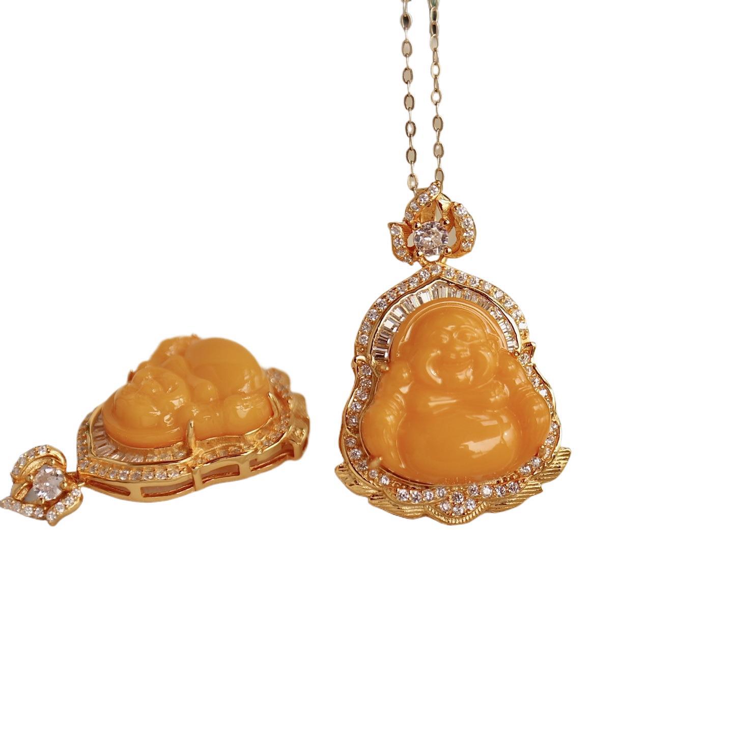 Натуральный подвеска-кулон из старого пчелиного воска с изображением Будды Майтрейи, покрытая серебром S925 с позолотой 18 карат, оптовая продажа напрямую с фабрики.