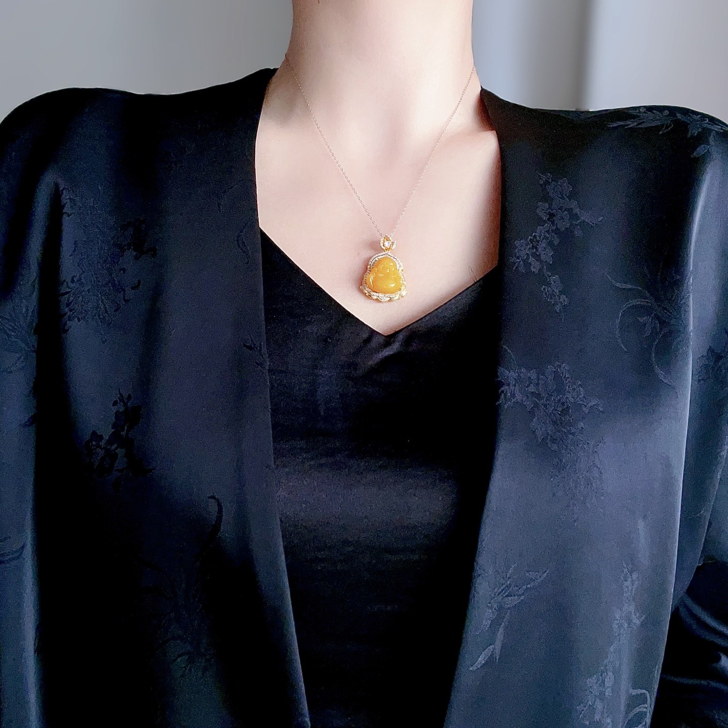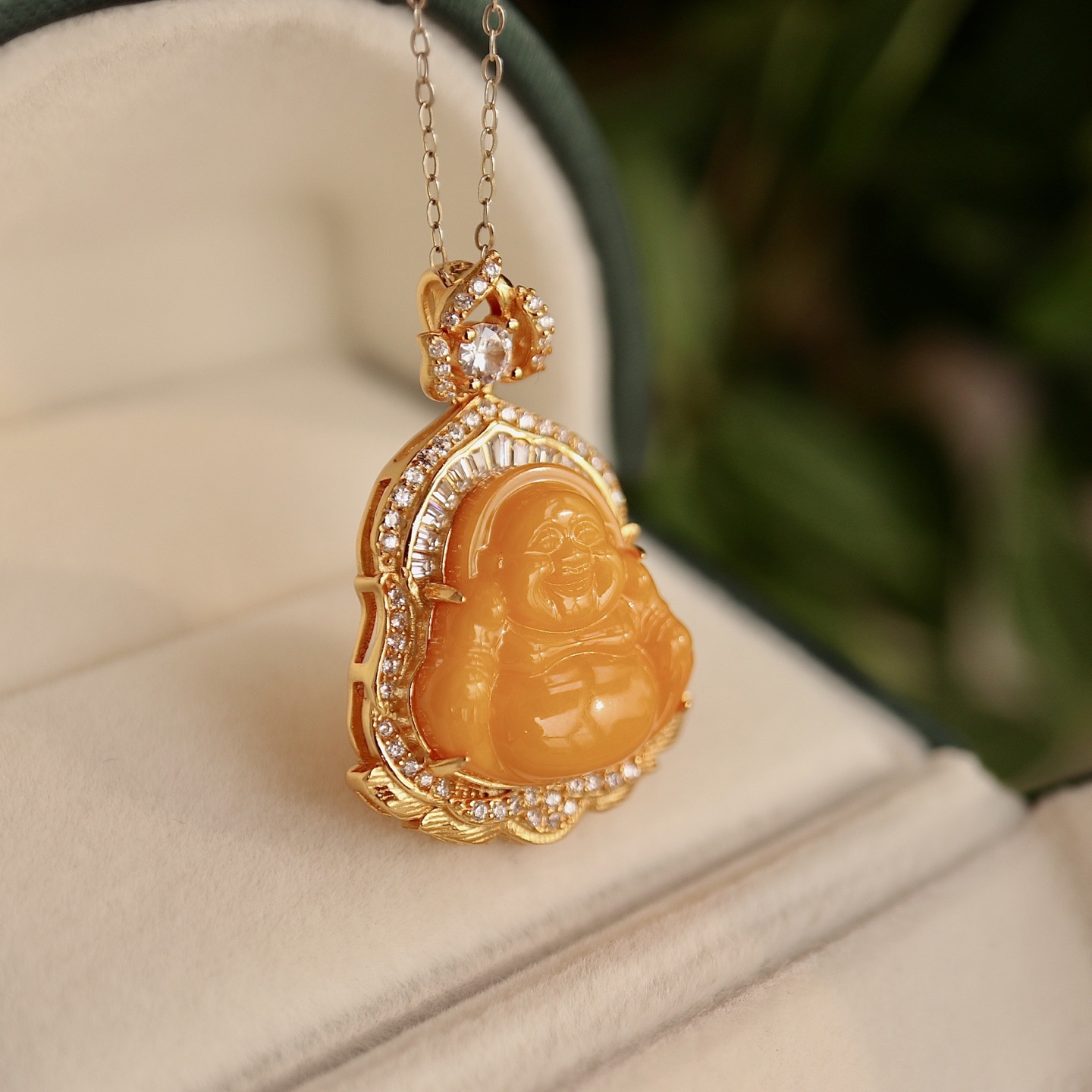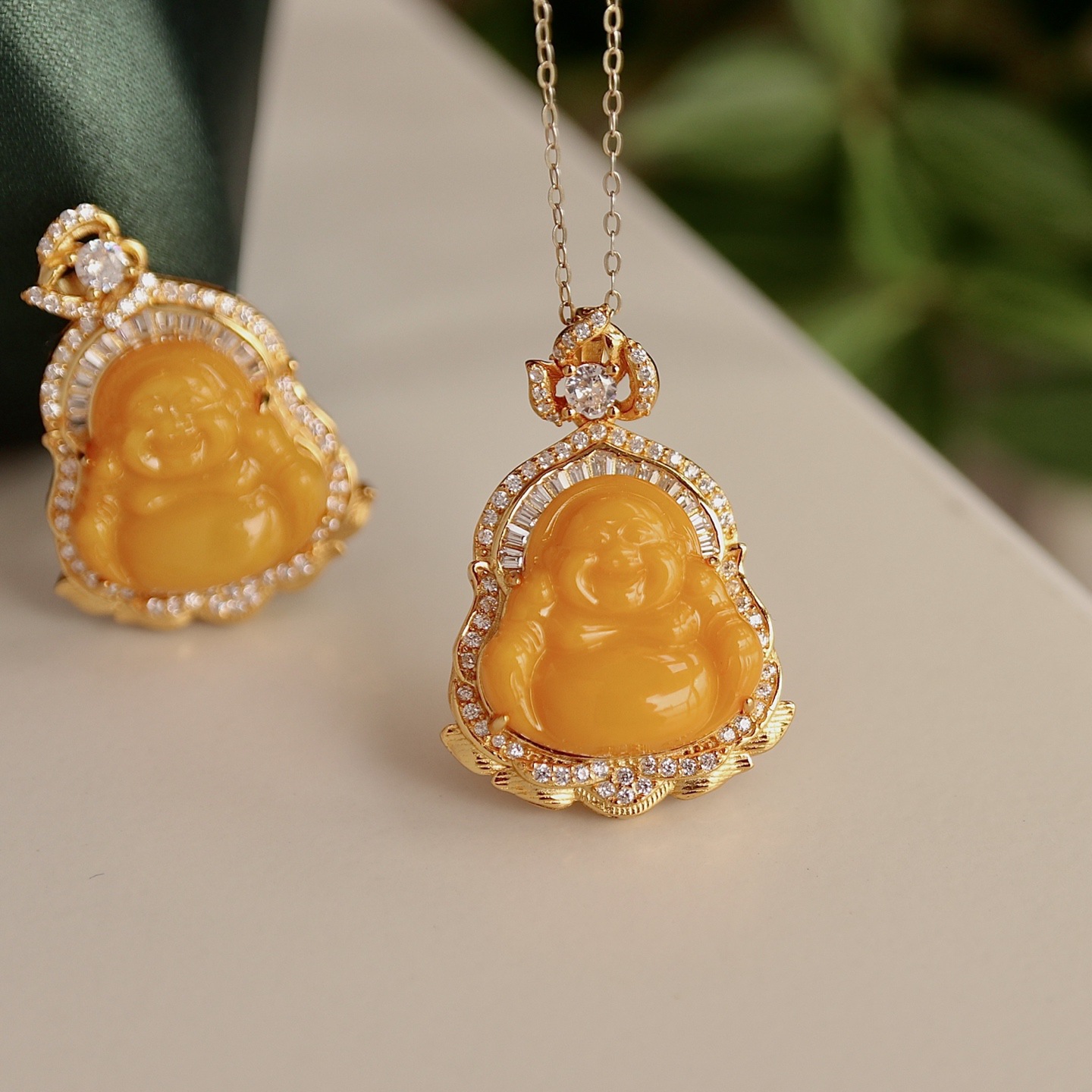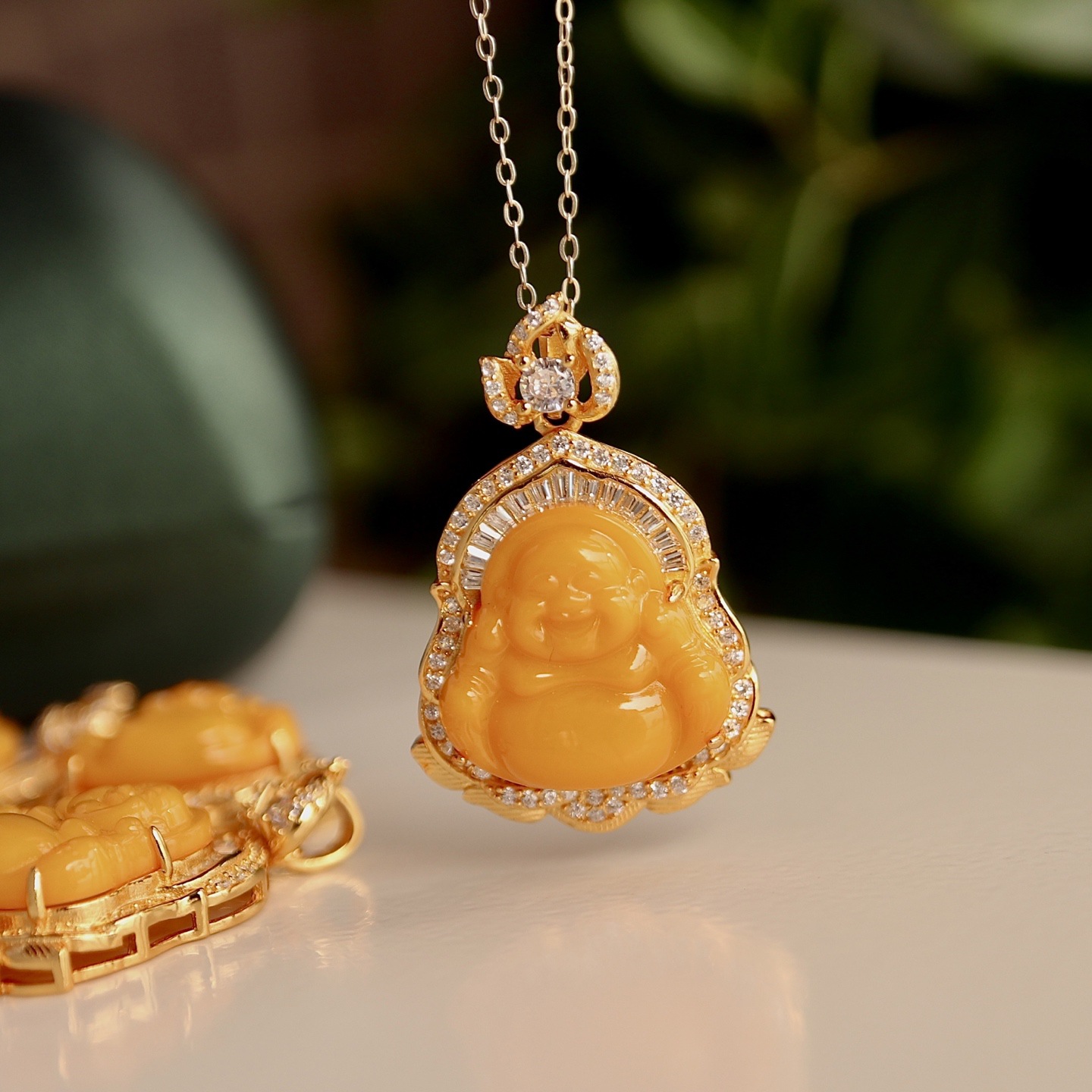 Натуральный подвеска-кулон из старого пчелиного воска с изображением Будды Майтрейи, покрытая серебром S925 с позолотой 18 карат, оптовая продажа напрямую с фабрики.