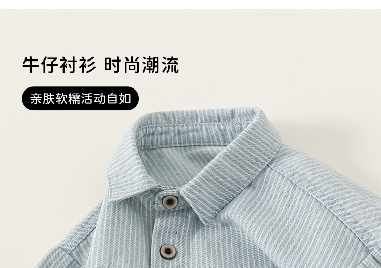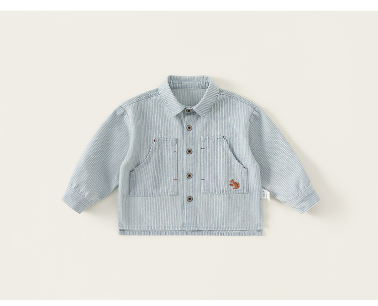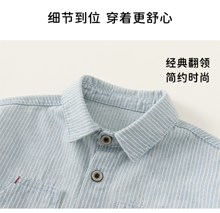 Детская рубашка Bobao Детская рубашка 2025 Новый мужской ребенок карманная рубашка мальчик с отворотом полосатая рубашка