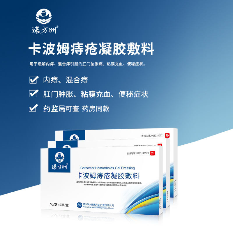 (标题关键词推荐)[诺方洲]卡波姆痔疮凝胶敷料3g*3支缓解内痔混合痔疮瘙痒疼痛便血便秘