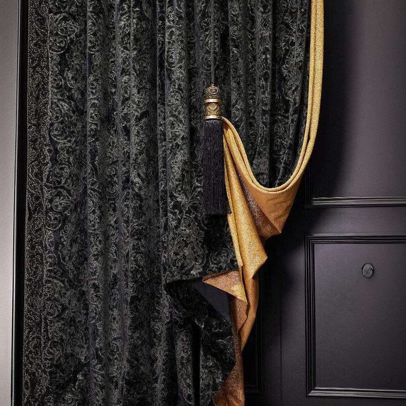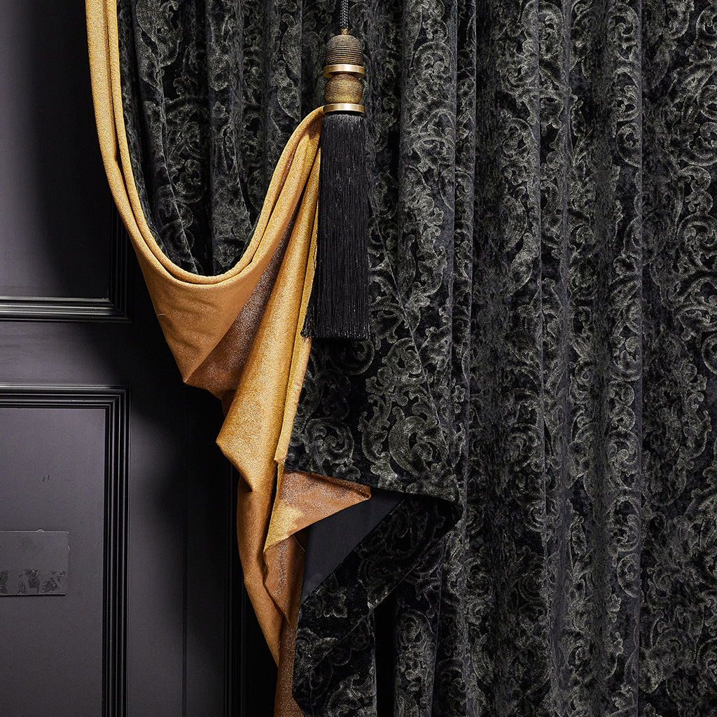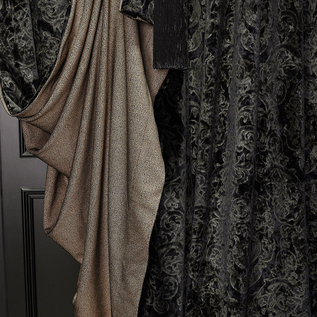 Шторы для гостиной и спальни в стиле лёгкой французской роскоши, чёрные, современные, большие, плоские, из высококачественного вельвета, новая модель 2025 года.