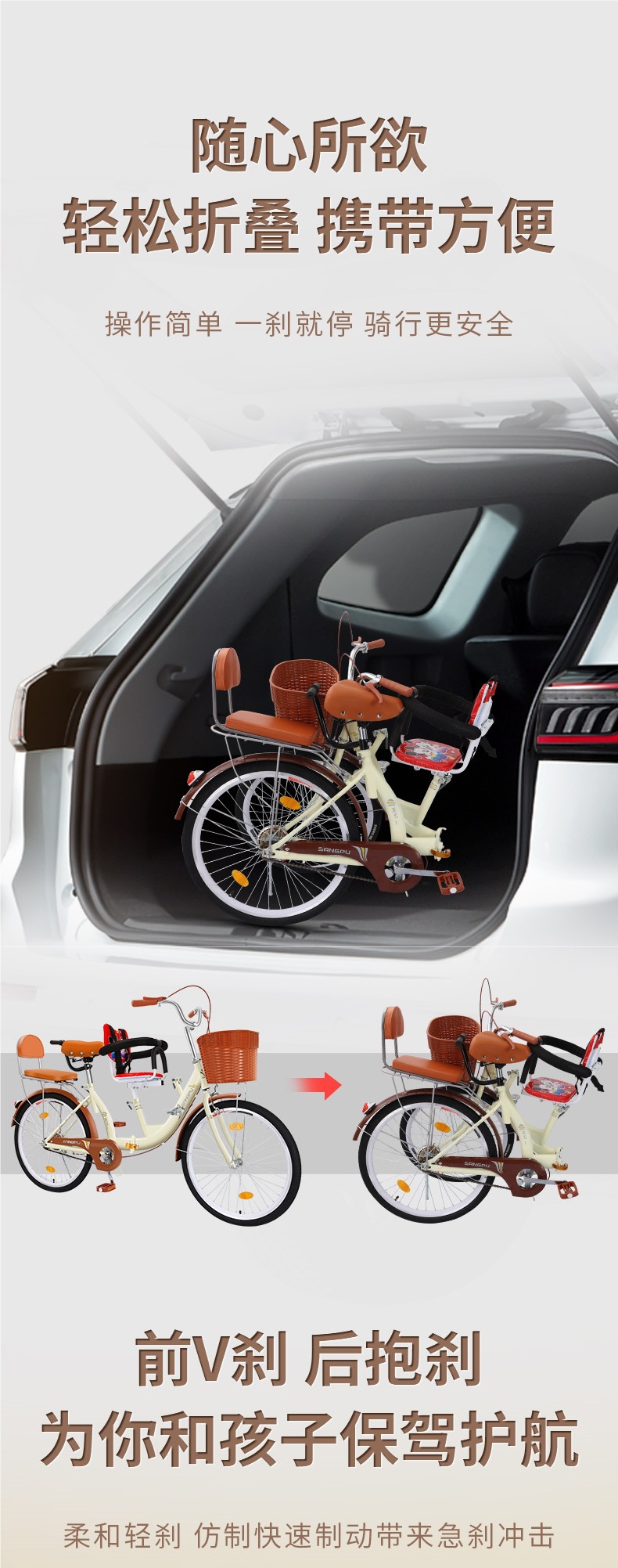 Складной велосипед родитель-ребенок с матерью и ребенком с детским велосипедом