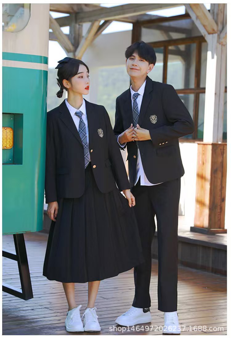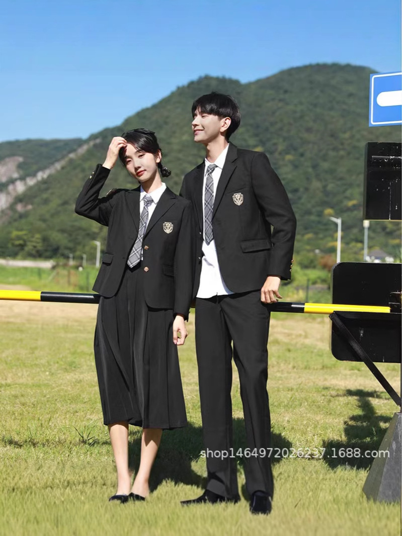 {Обновленная ткань] Мужской костюм из саржи + белая рубашка с длинными рукавами + черные брюки из саржи + серый галстук; {Обновленная ткань] Женский костюм из саржи + белая рубашка с длинными рукавами + длинная юбка из саржи + серый галстук; {Обычная ткань] Мужской костюм + белая рубашка с длинными рукавами + черные брюки + серый галстук; {Обычная ткань] Женский костюм + белая рубашка с длинными рукавами + черная длинная юбка + серый галстук; Цельный костюм {цельный костюм для мужчин и женщин}
