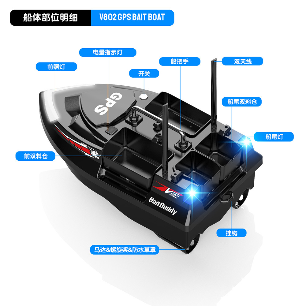 2025 новый V802Pro с дистанционным управлением лодочный корабль GPS Точное позиционирование и эффективный рыболовный инструмент 4 бункер 3KG приманка