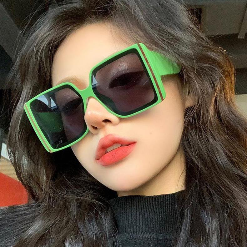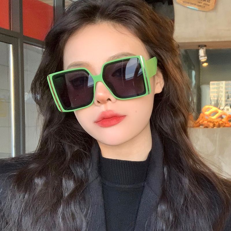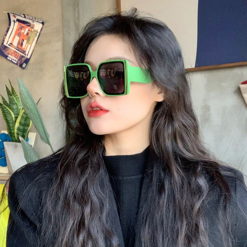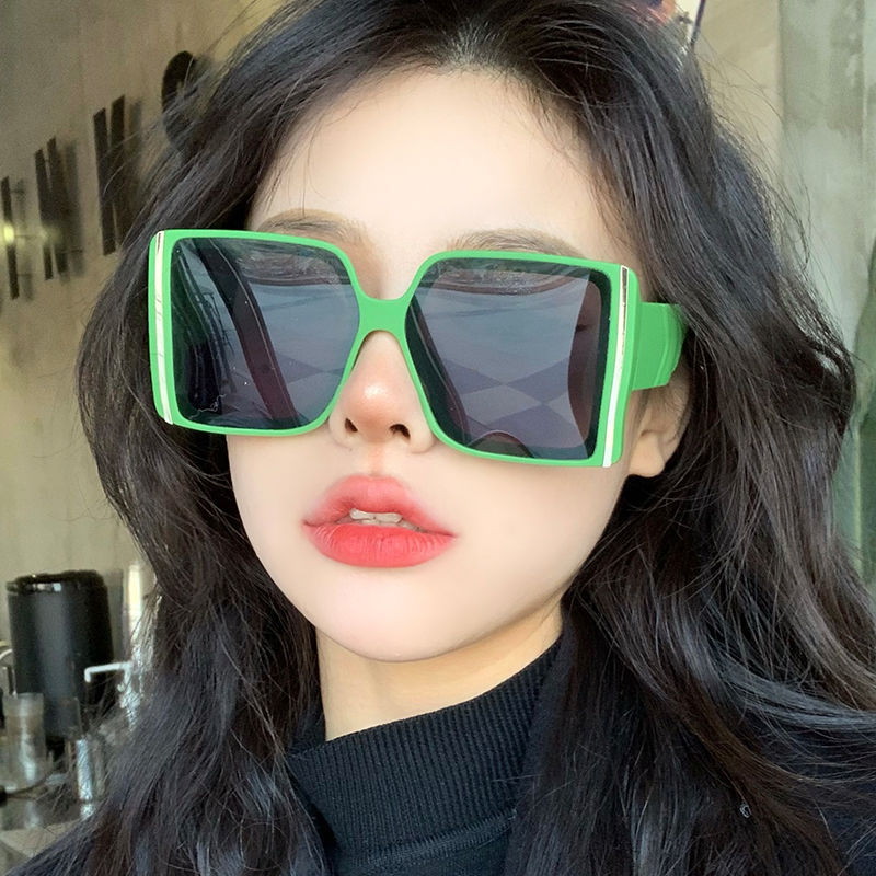 Квадратные зеленые очки в большой оправе женские солнцезащитные очки сетка красная уличная камера ins анти-ультрафиолетовое круглое лицо тонкие корейские солнцезащитные очки