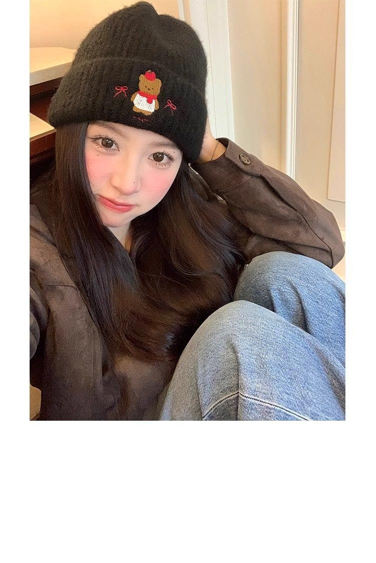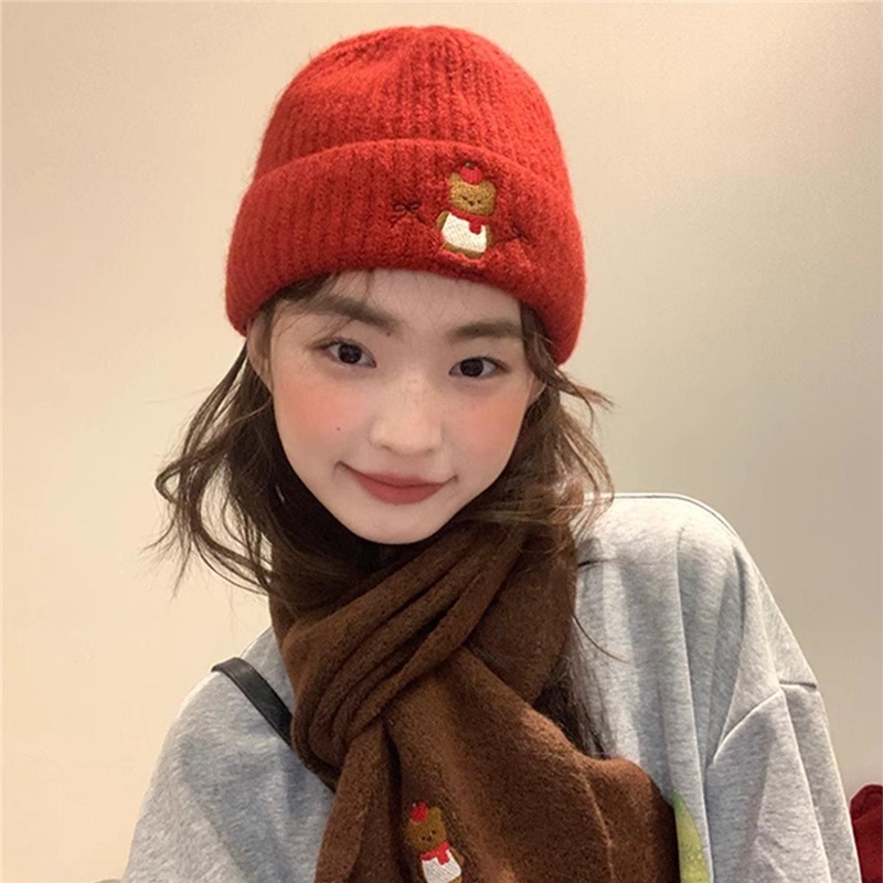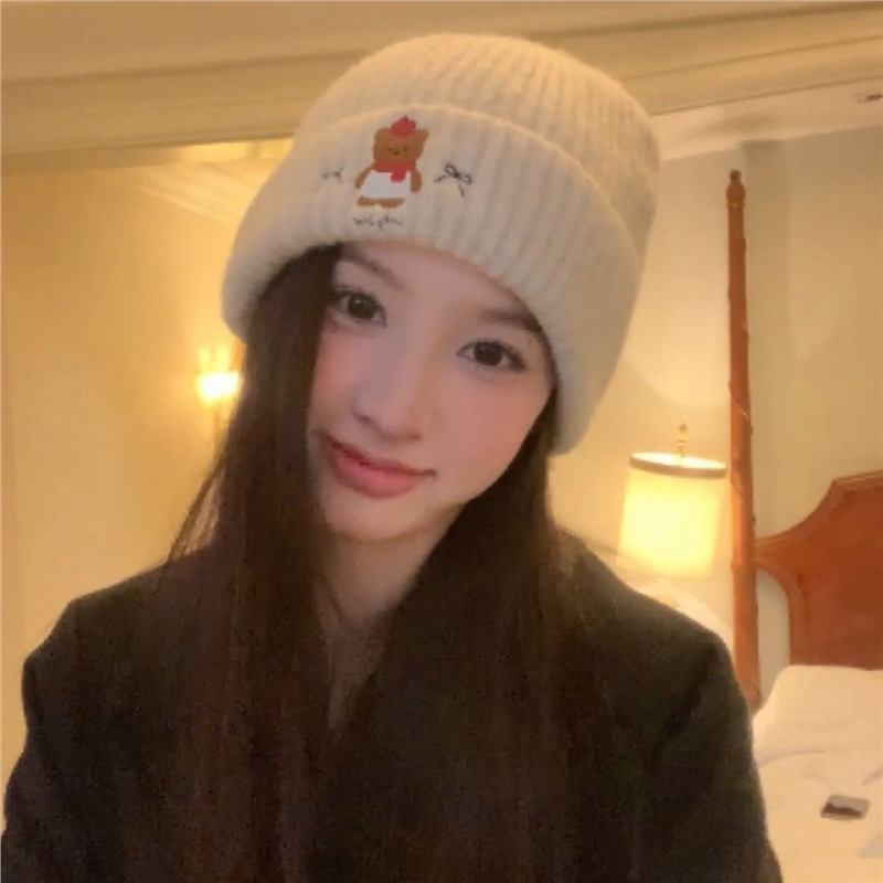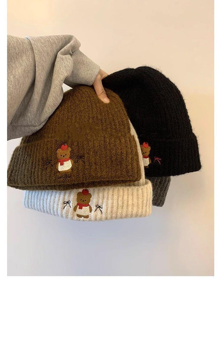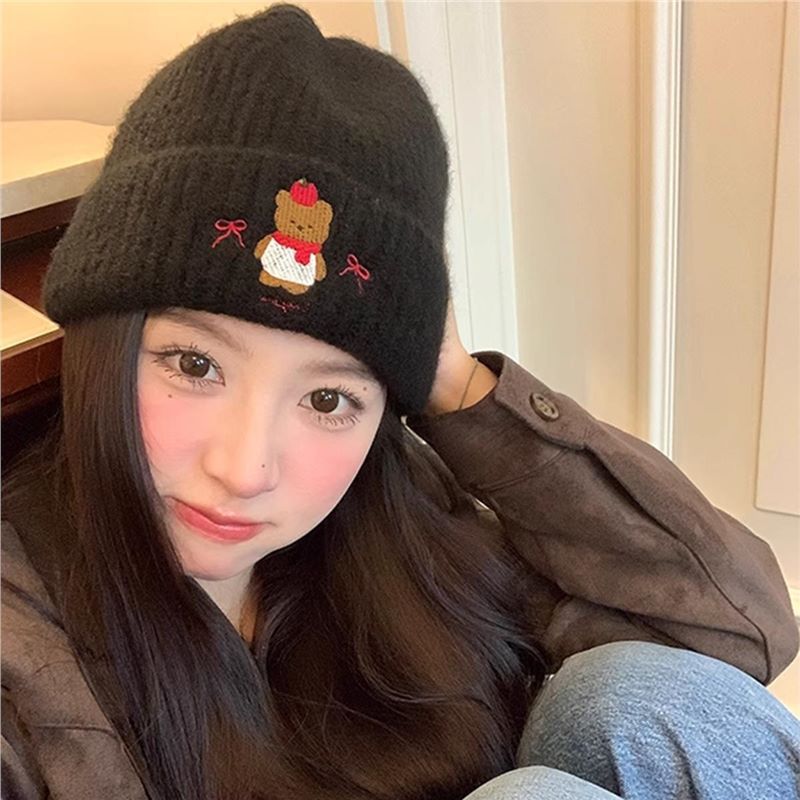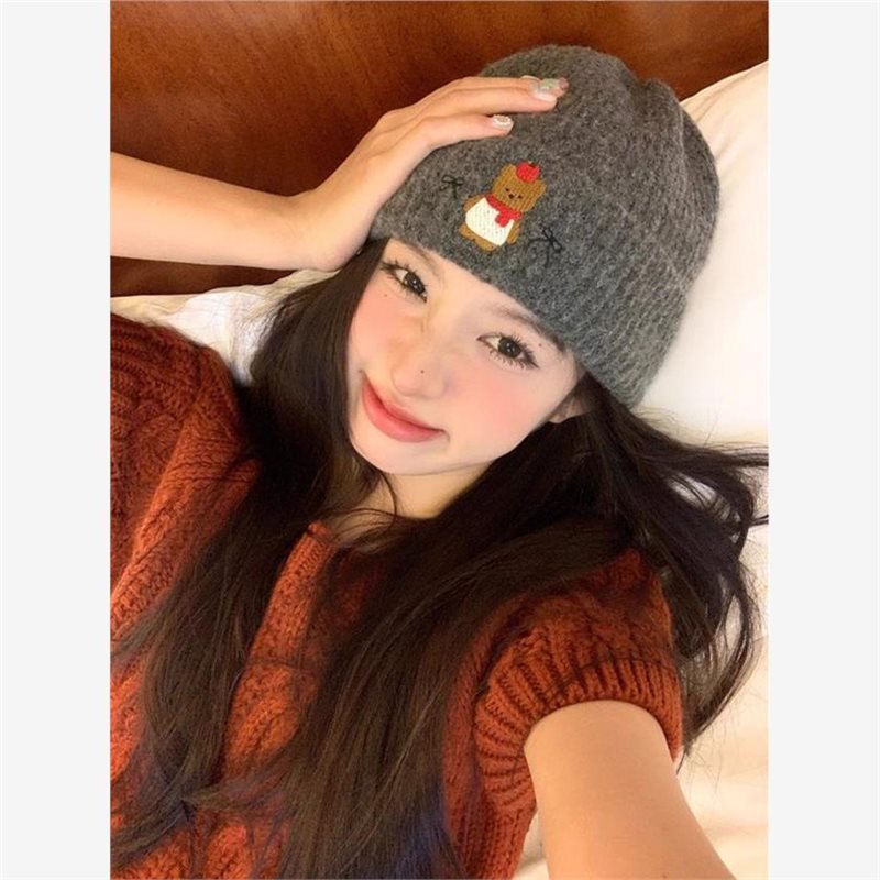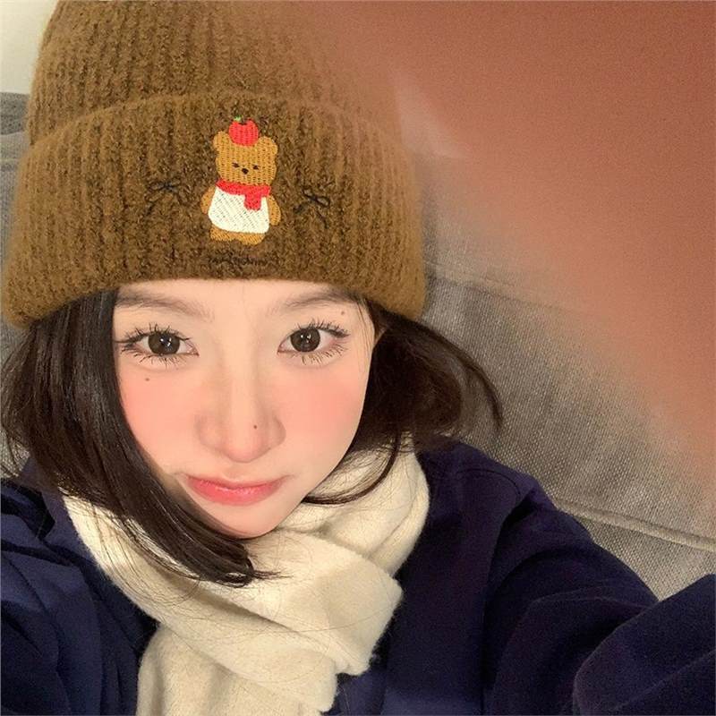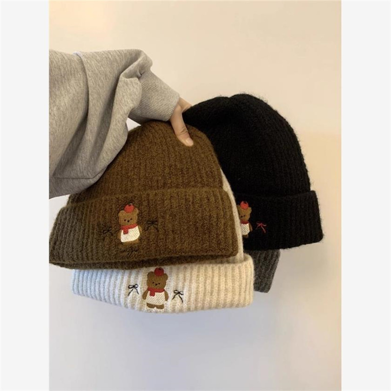 Весенняя и осенняя зимняя теплая и морозостойкая шерстяная шапка толстая шапка из дыни милый мультяшный медведь вязаная шапка женщина