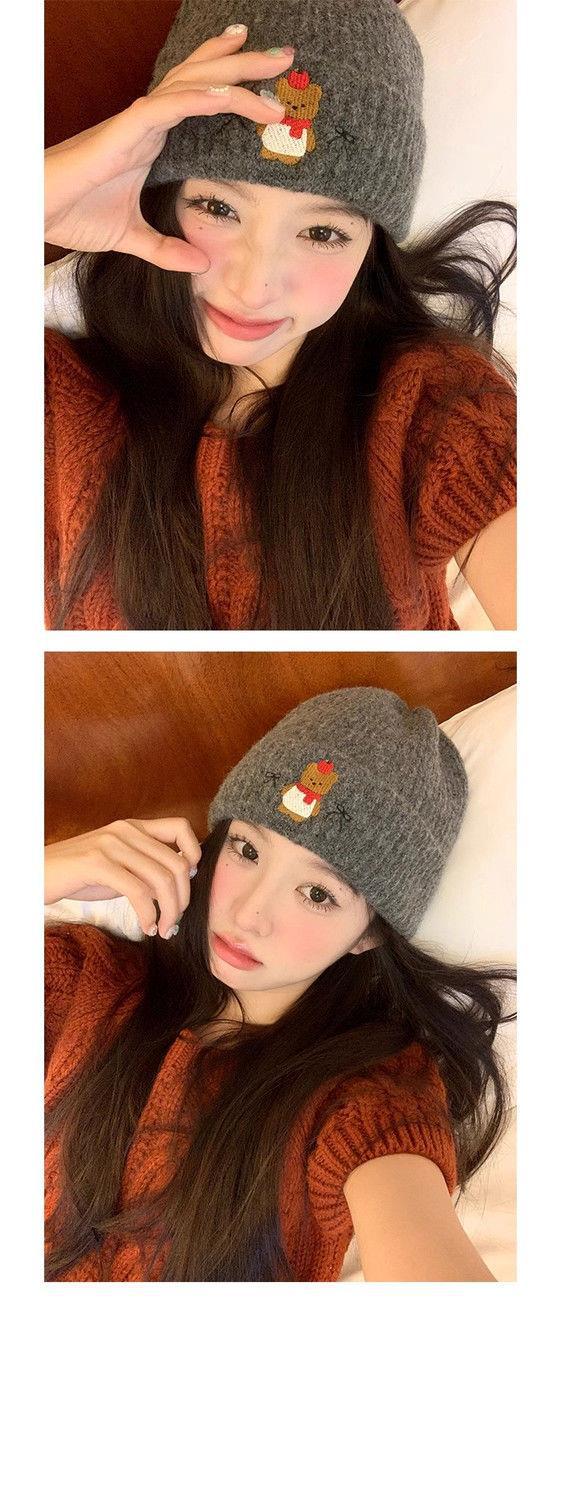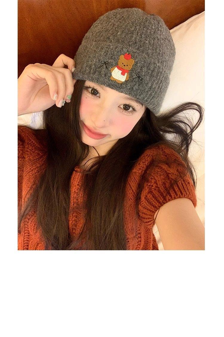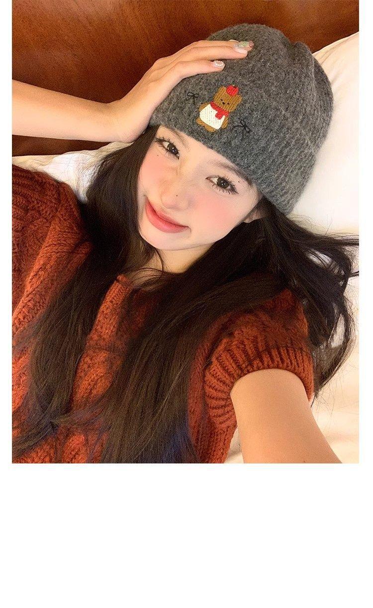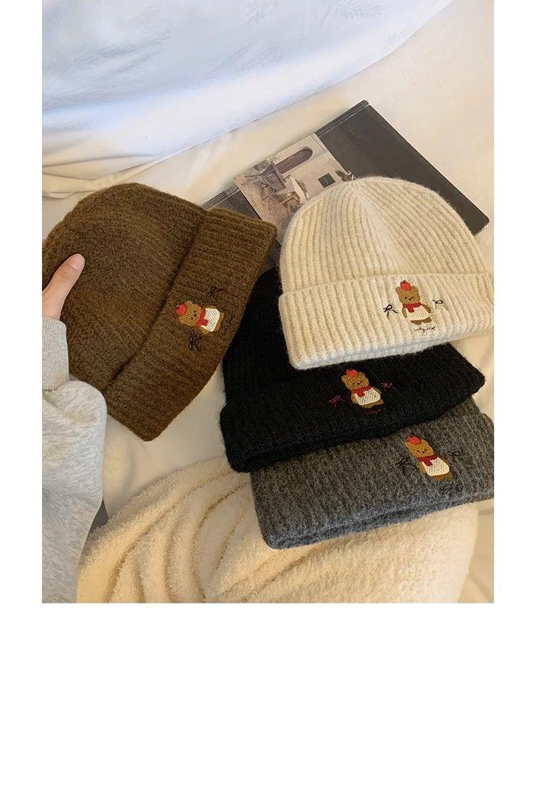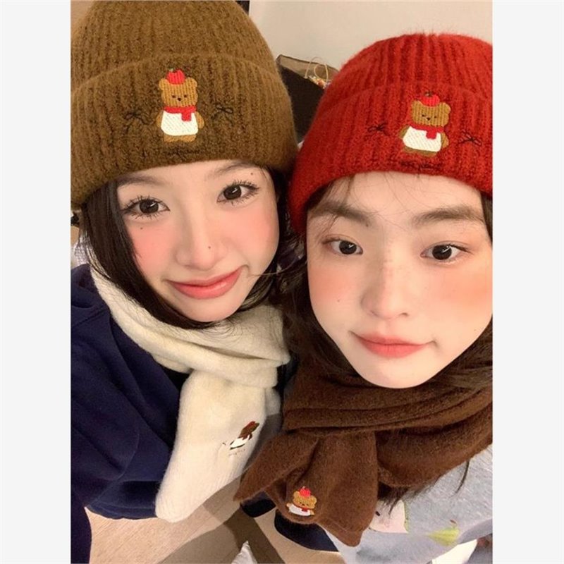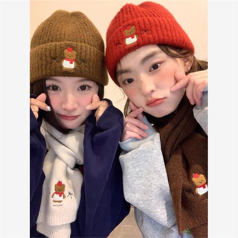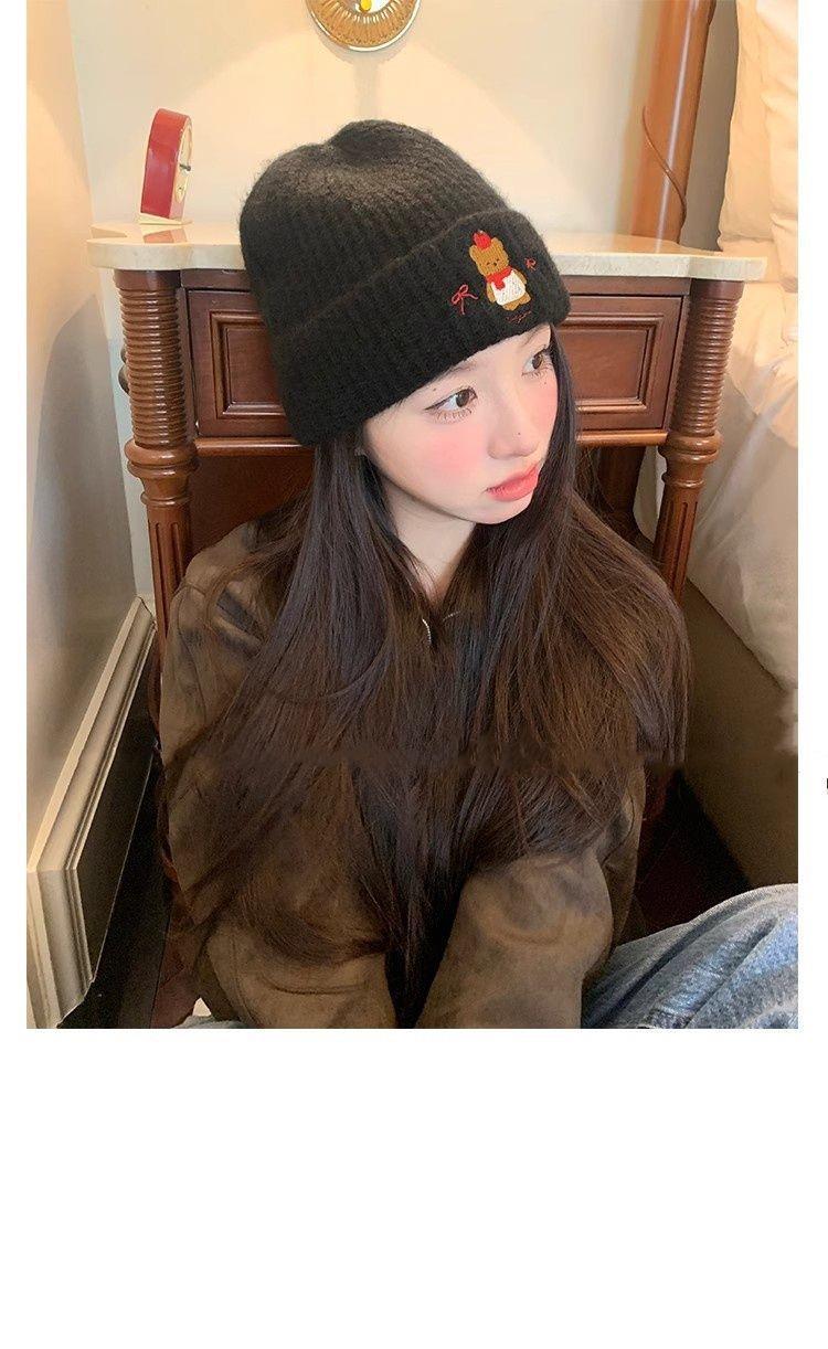 Весенняя и осенняя зимняя теплая и морозостойкая шерстяная шапка толстая шапка из дыни милый мультяшный медведь вязаная шапка женщина