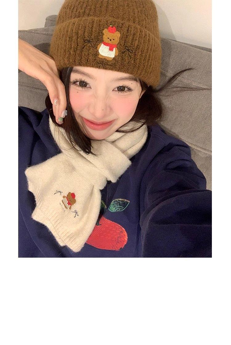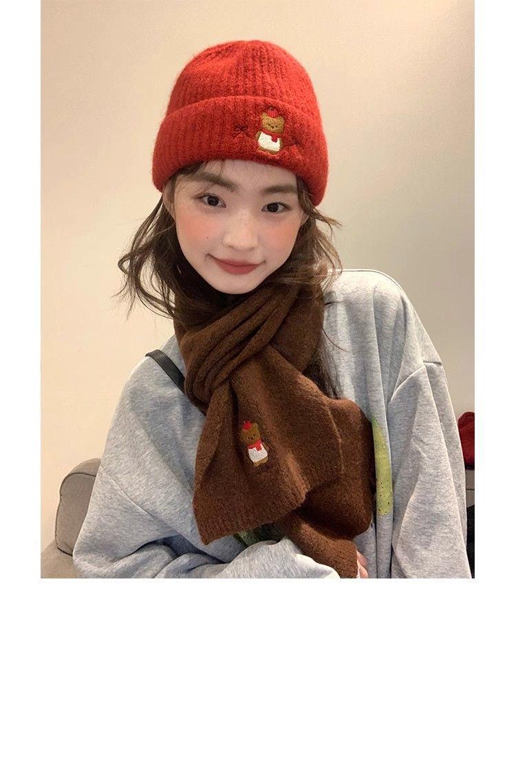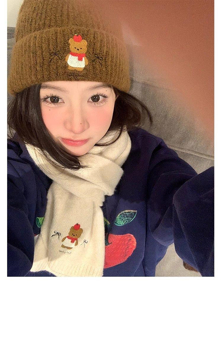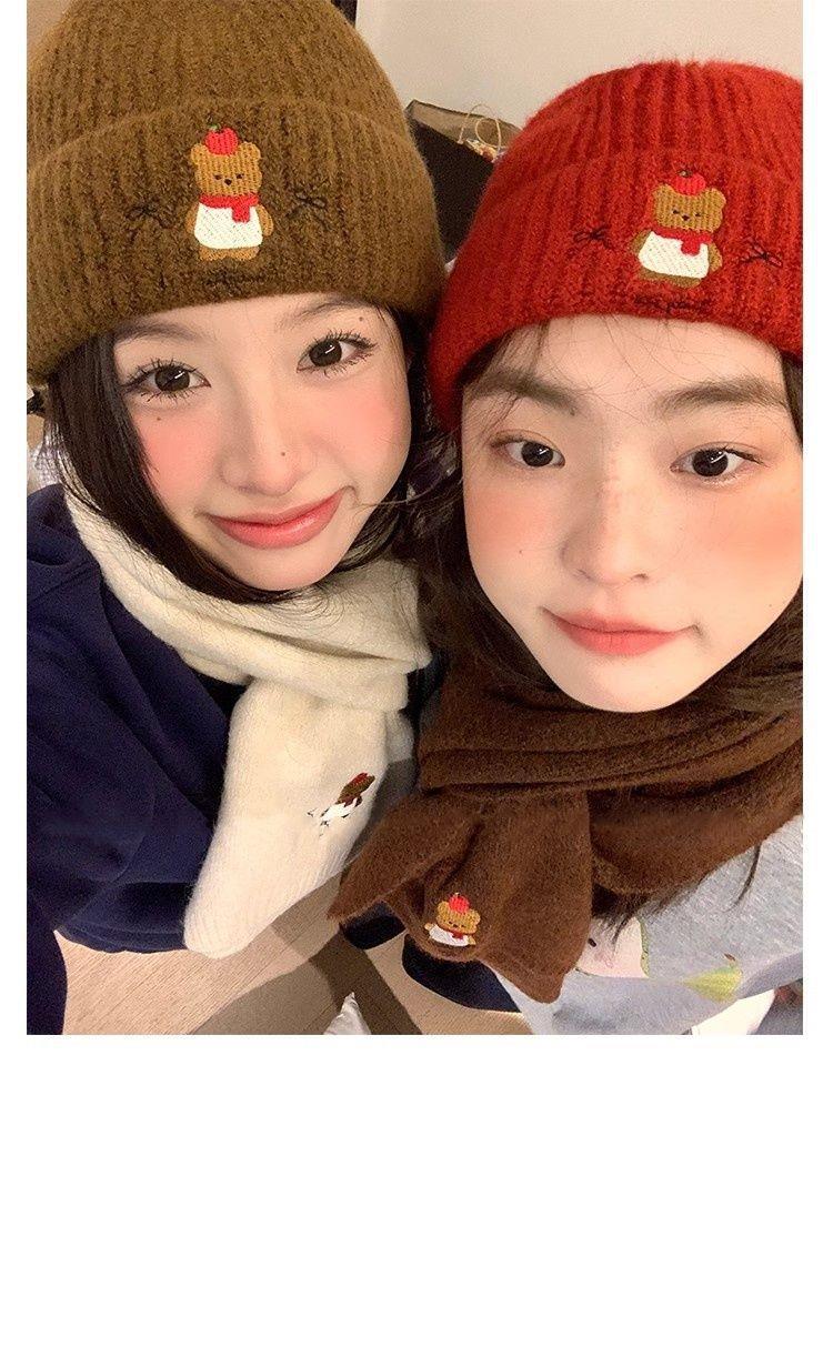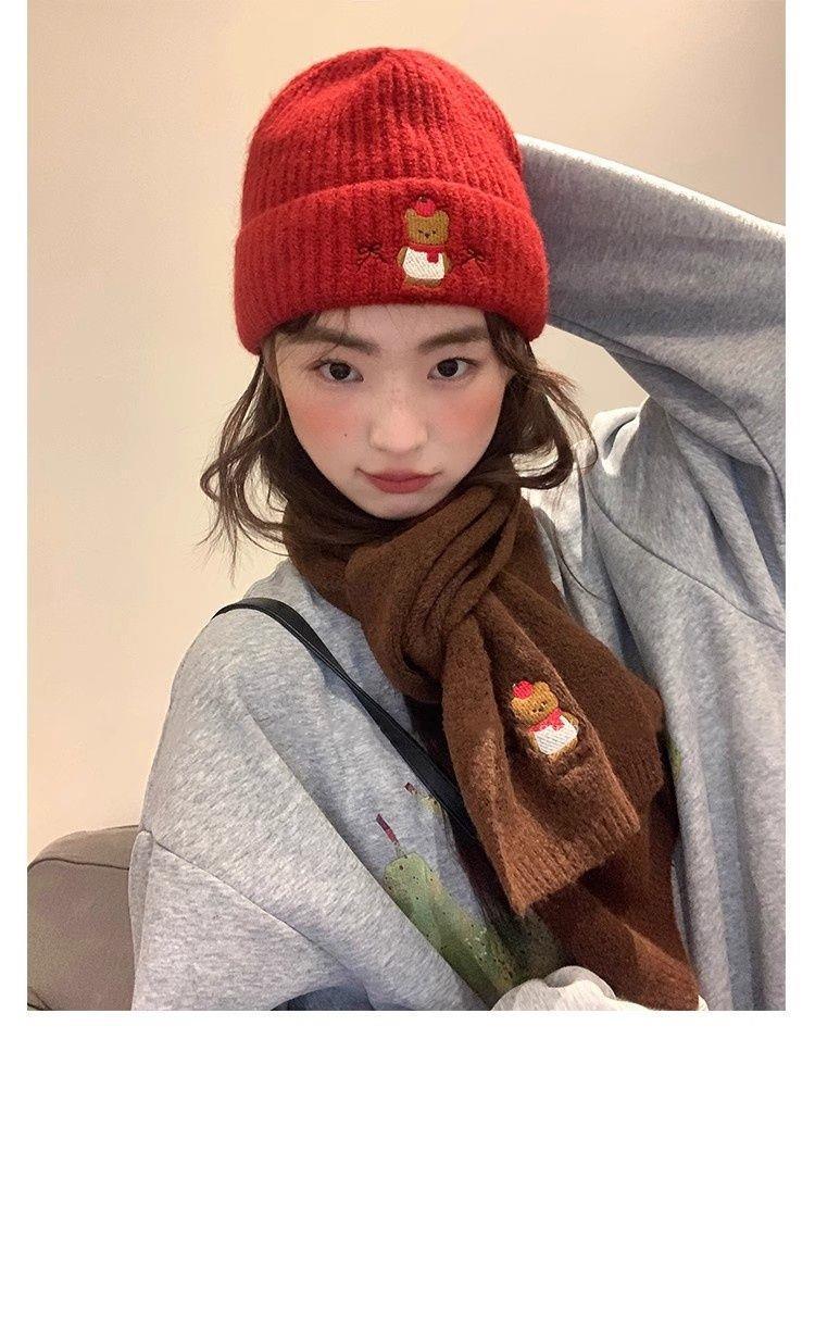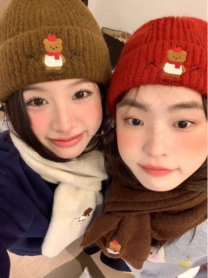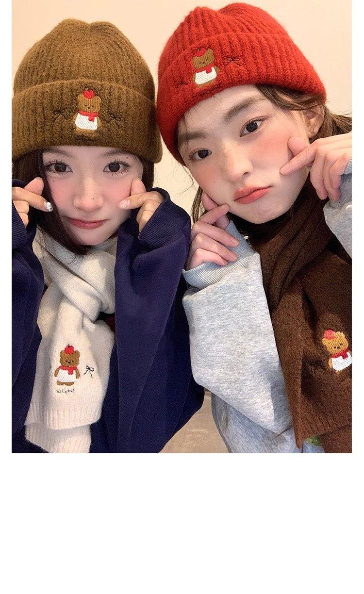 Весенняя и осенняя зимняя теплая и морозостойкая шерстяная шапка толстая шапка из дыни милый мультяшный медведь вязаная шапка женщина