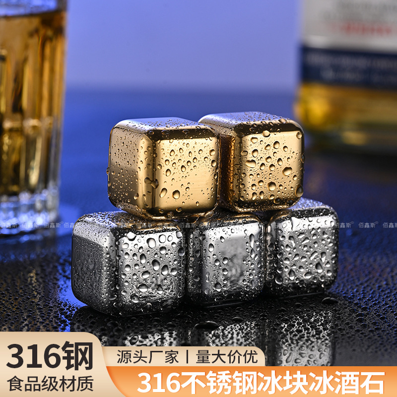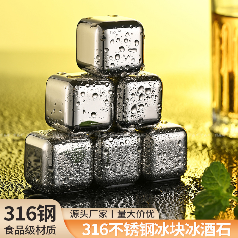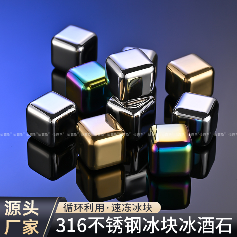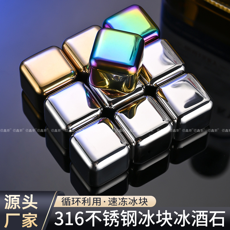 Оптовые металлические кубики для льда из нержавеющей стали 316 для быстрого охлаждения напитков (виски, пиво) для KTV-баров