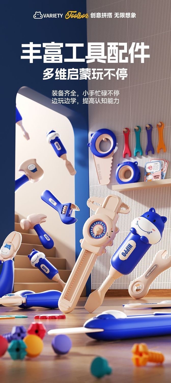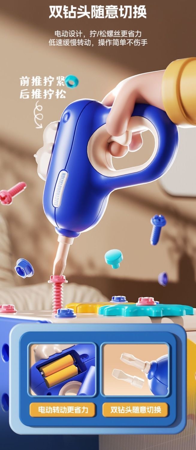 Hippo Xiaobei Douyin трансграничный набор инструментов, имитация ручной электрической дрели, винтовой инструмент, игрушка для мальчиков, ролевые игры