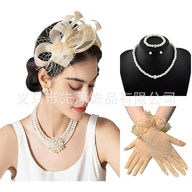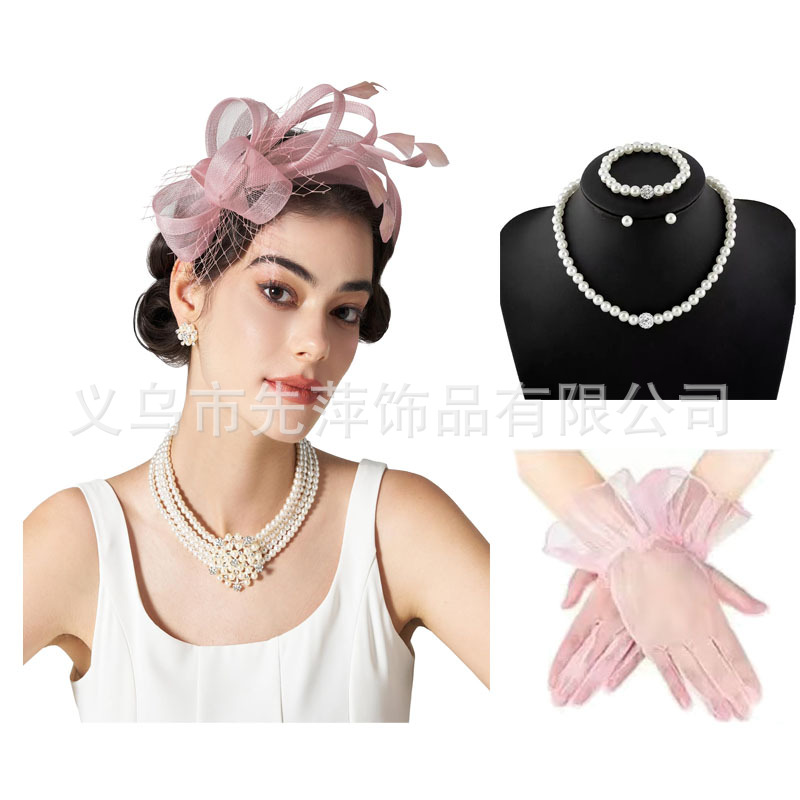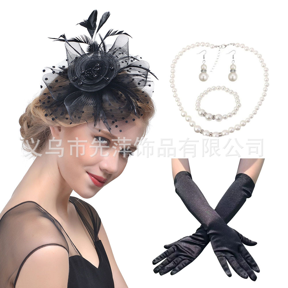 Амазонские перья головные уборы европейские и американские свадебные головные уборы перчатки ожерелье аксессуары для волос набор головных уборов для скачек