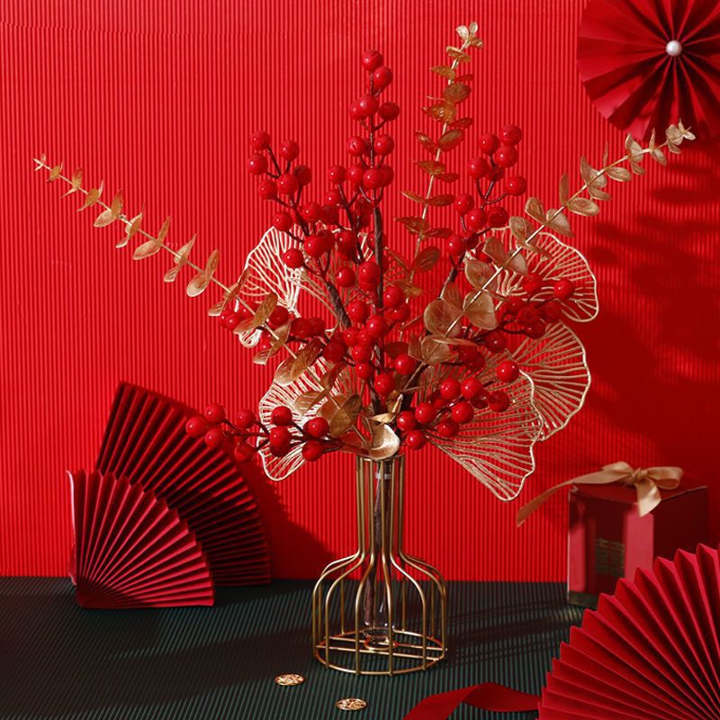 Красные фрукты, богатые фрукты, поддельные цветы, настоящие цветы, свадебные цветы