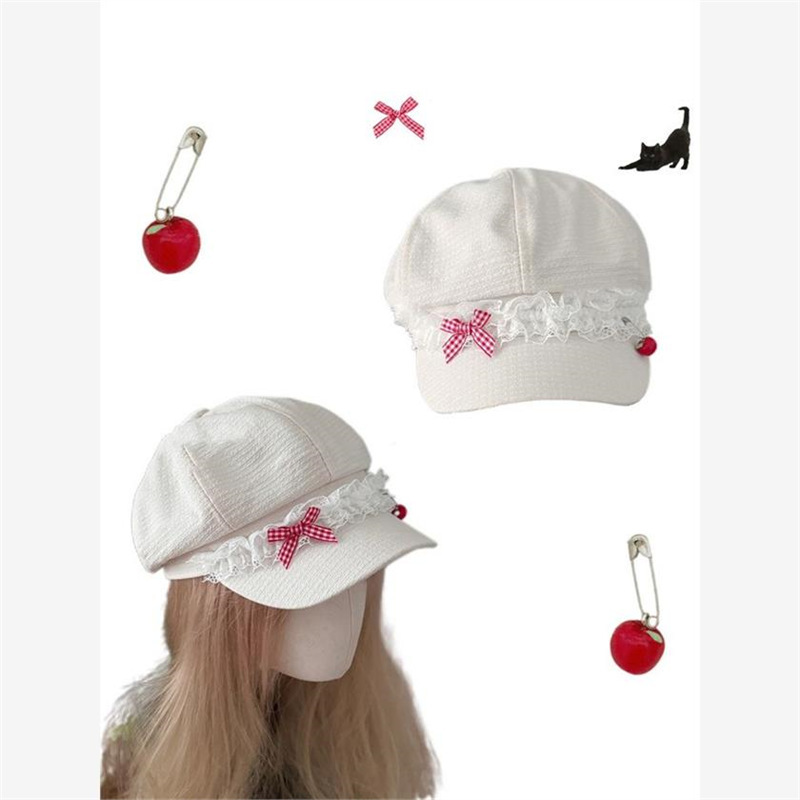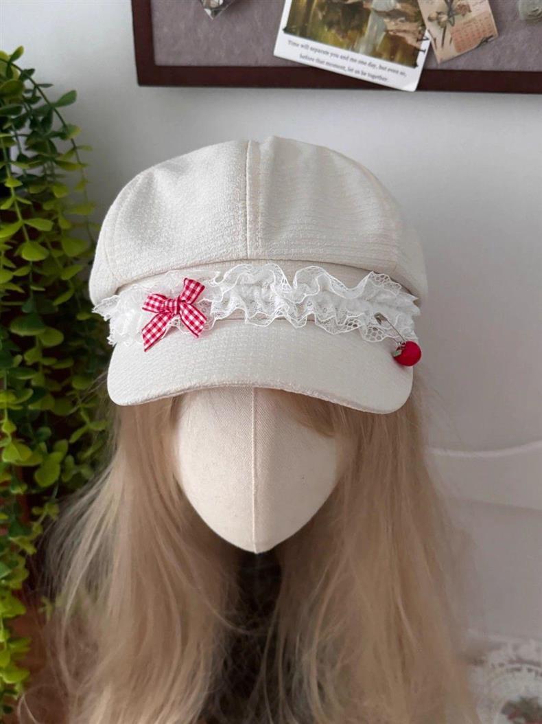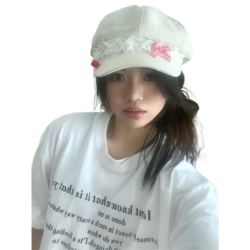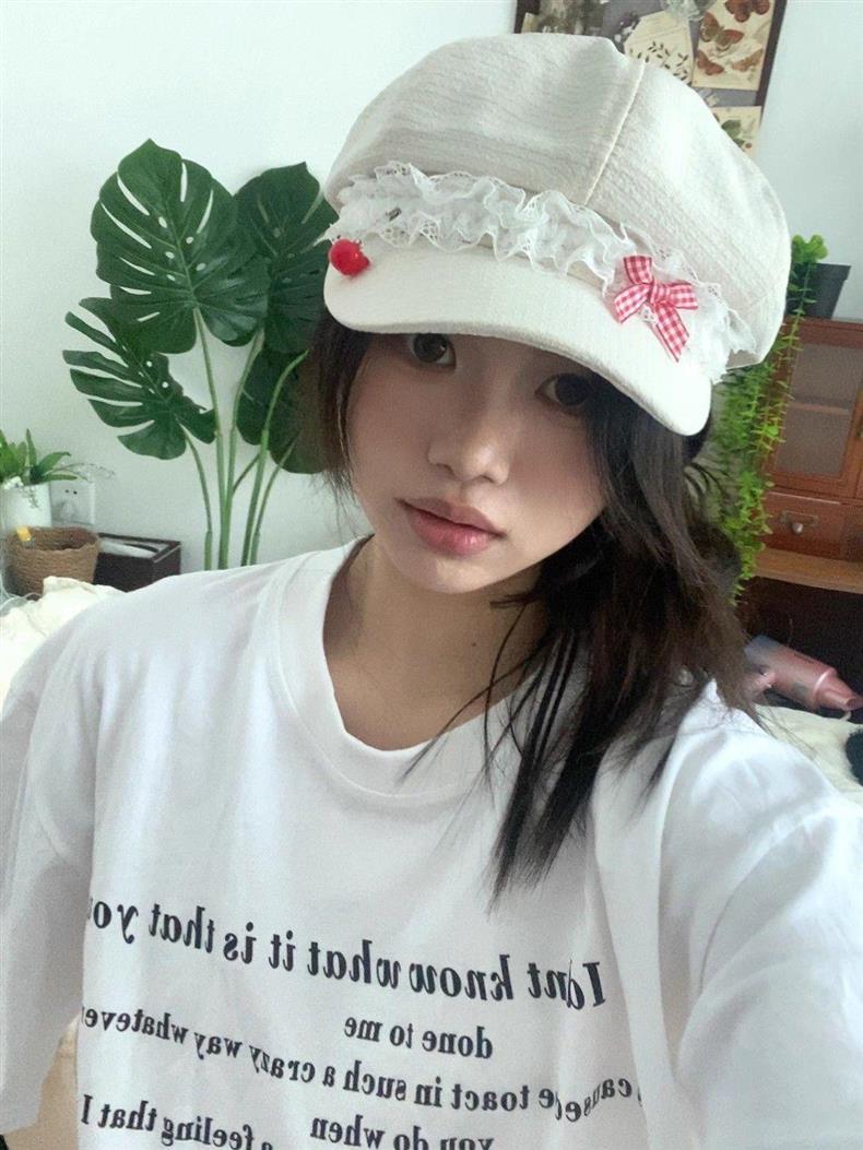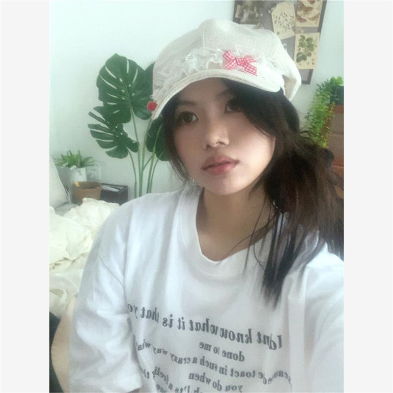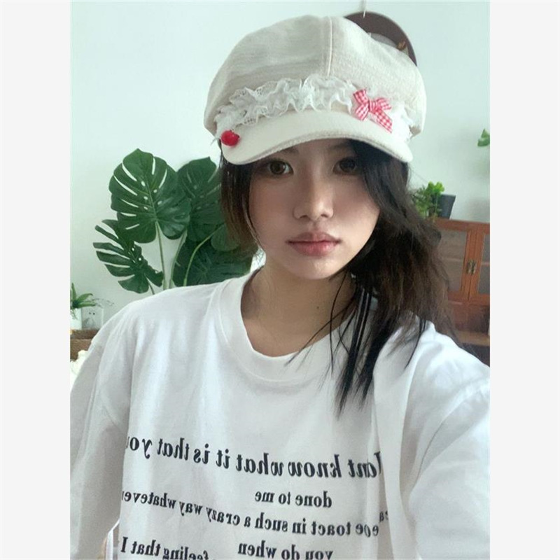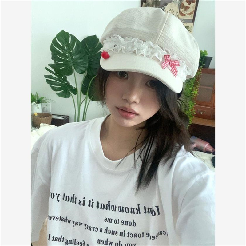 Корейская оригинальная милая весна и лето Apple Голова Летний лук кружева девушка тонкая y2k газетная шляпа художника