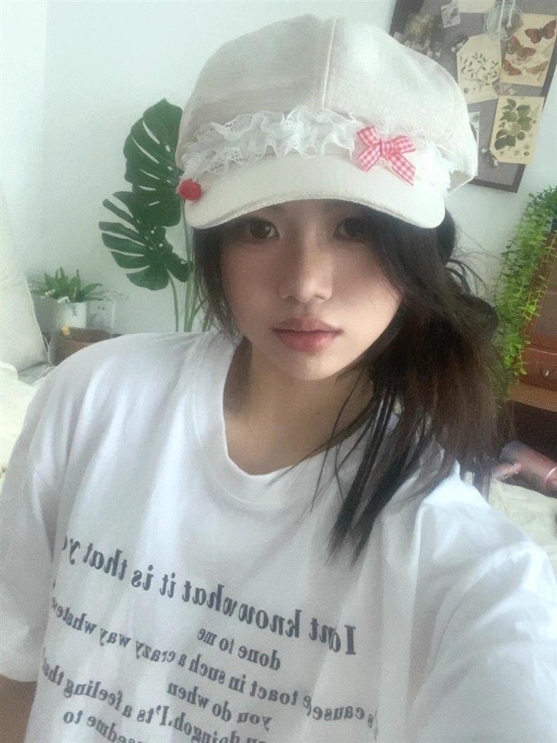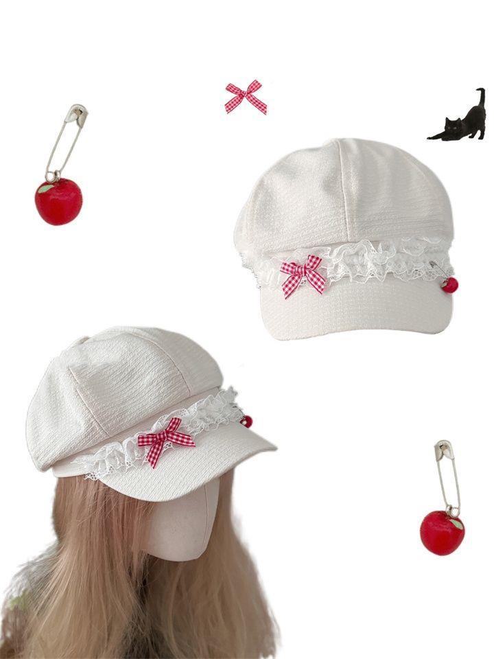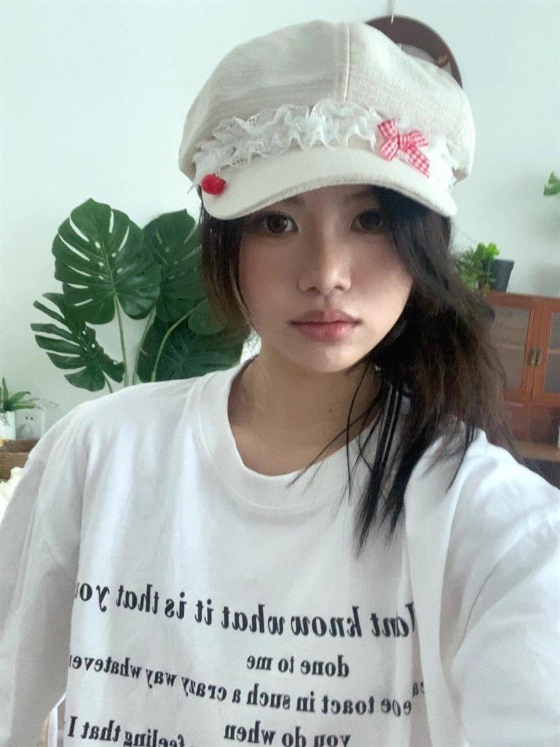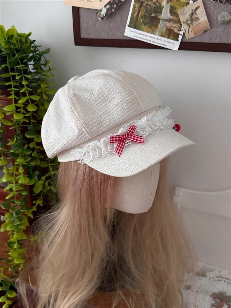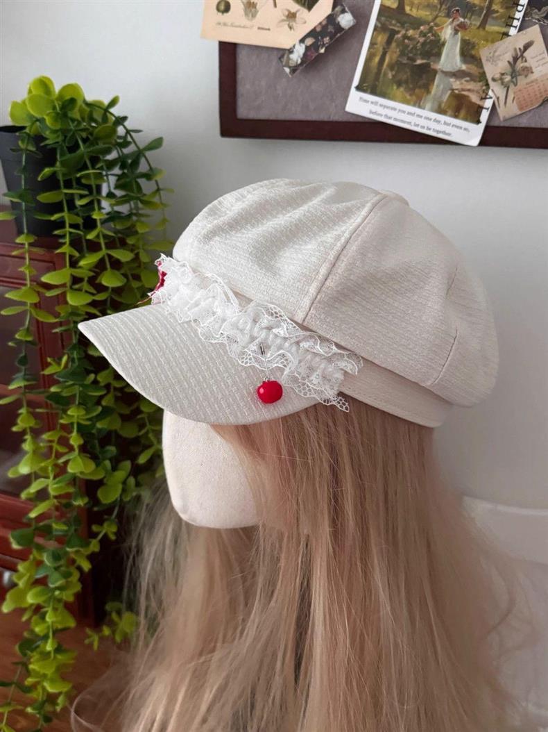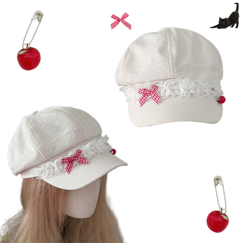 Корейская оригинальная милая весна и лето Apple Голова Летний лук кружева девушка тонкая y2k газетная шляпа художника
