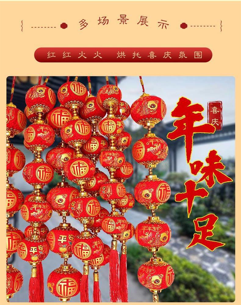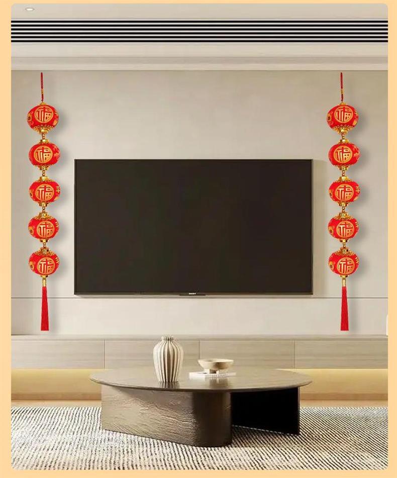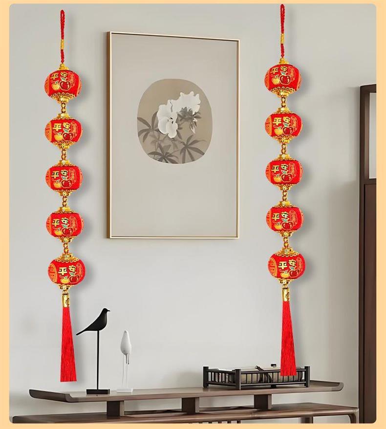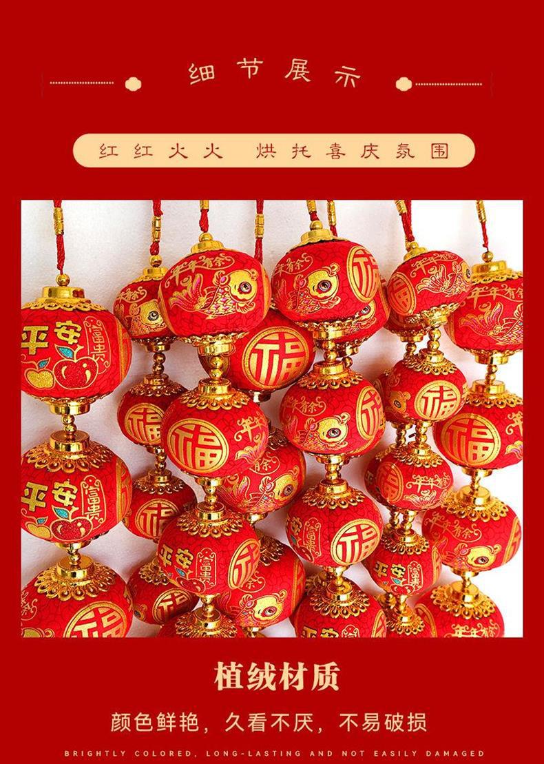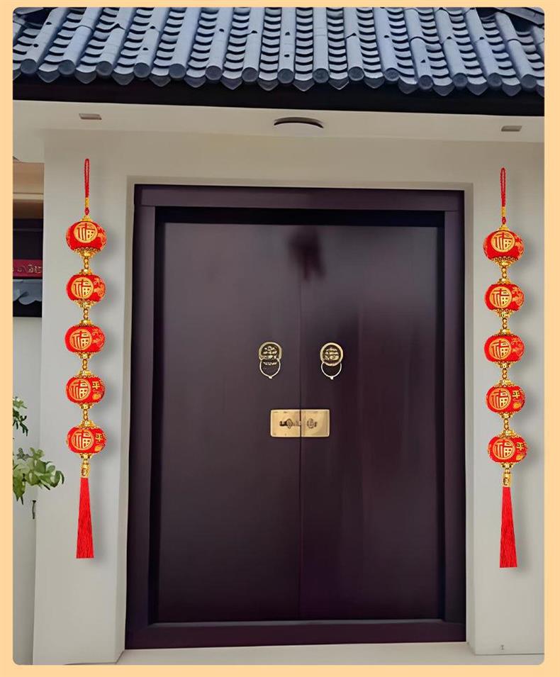 Маленький одиночный фонарь с благословляющим персонажем - стандартный; Одиночный фонарь среднего размера с благословляющим персонажем - стандартный; Большой одиночный фонарь с благословляющим персонажем - стандарт; Нить из пяти шариков со словом благословение - стандарт; Нить из пяти шариков со словом благословение посередине - стандарт.; Нить из пяти шариков с надписью благословение большого размера - стандарт; Пара труб с пятью шариками и надписью «Фу» - стандарт.; Пара шаров среднего размера с пятью шариками и благословляющими символами - стандарт.; Пара больших чисел с пятью шариками и словом «Фу» — стандарт.