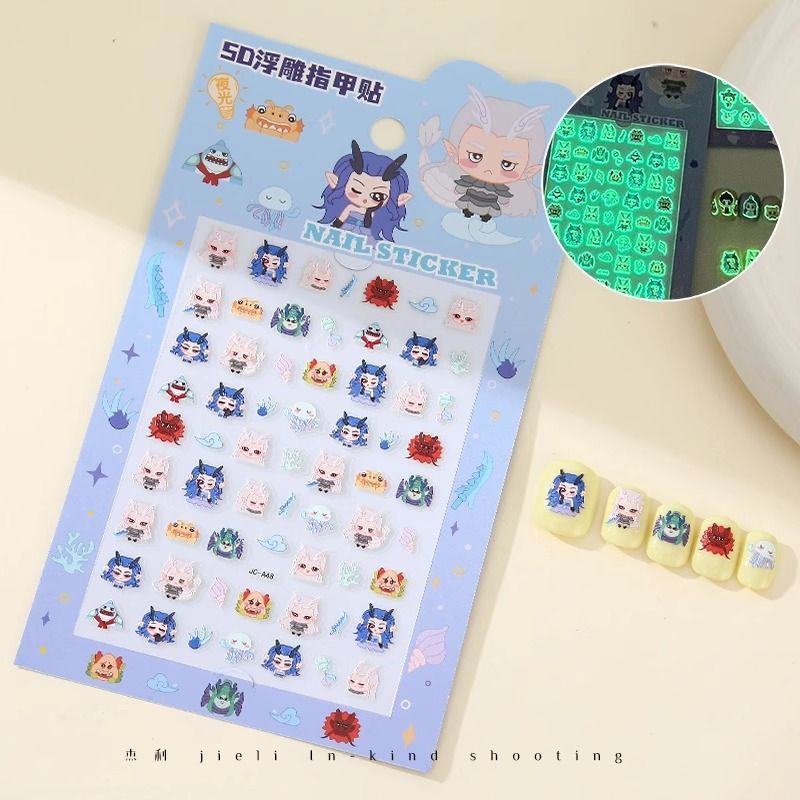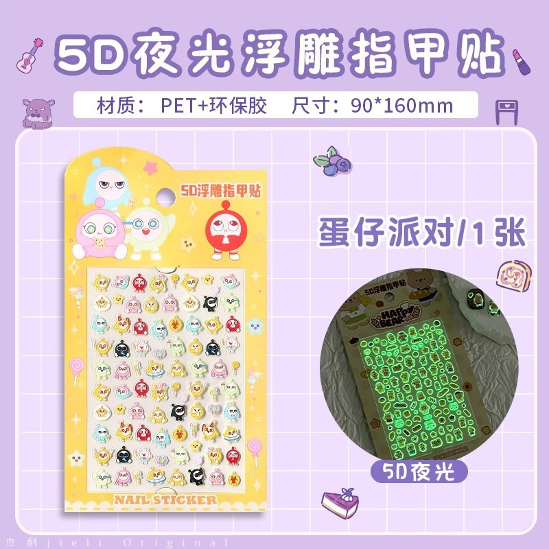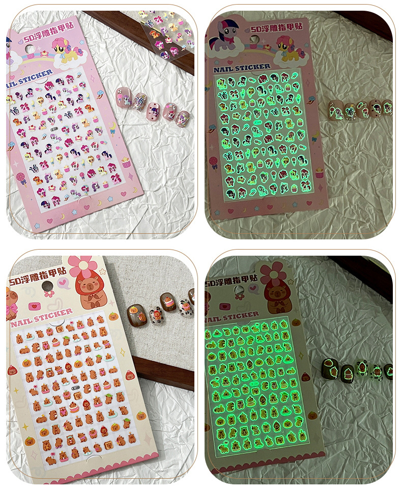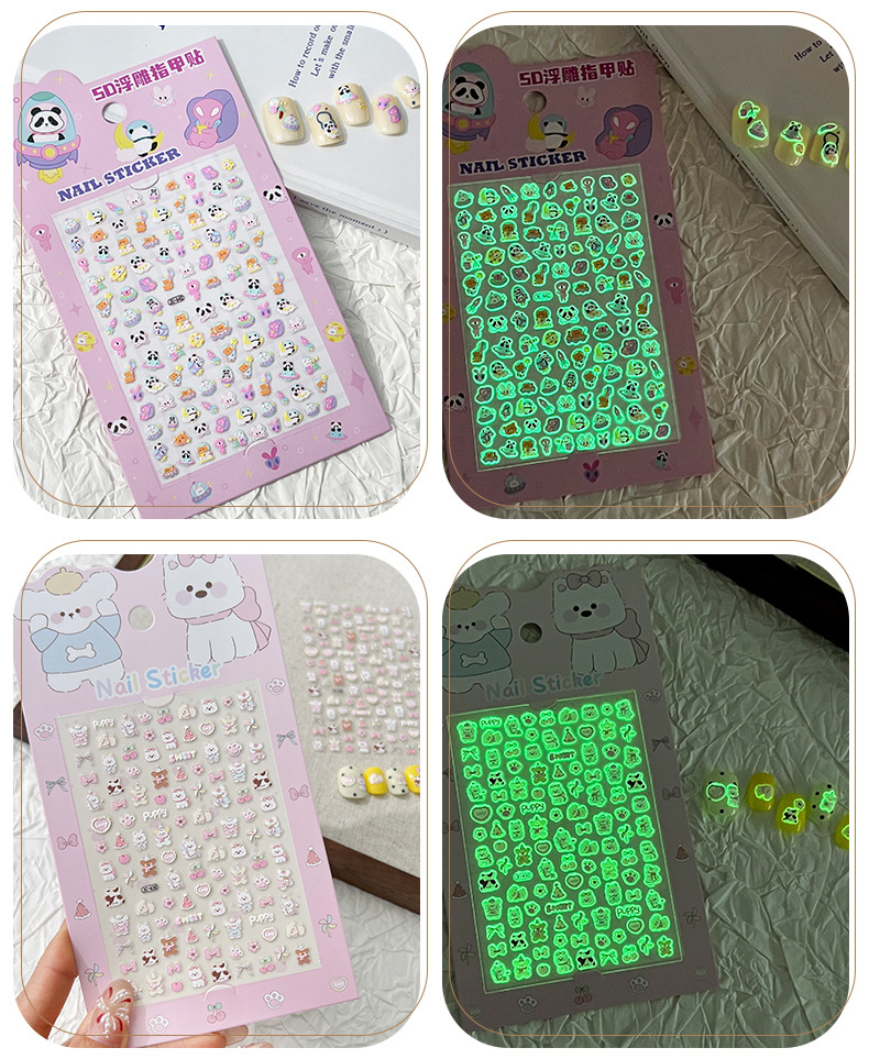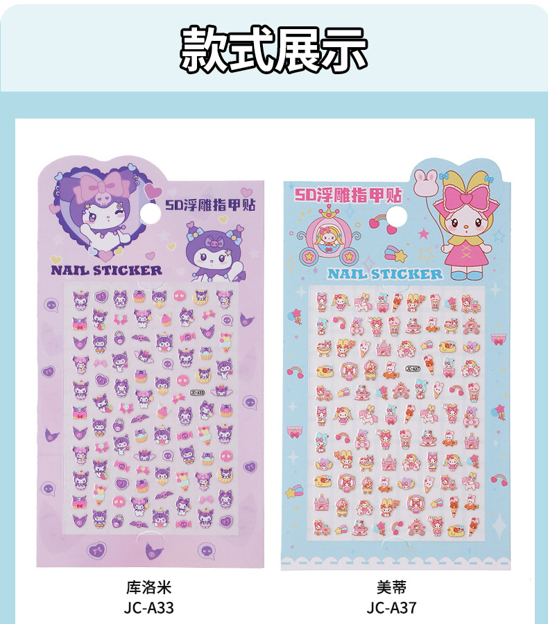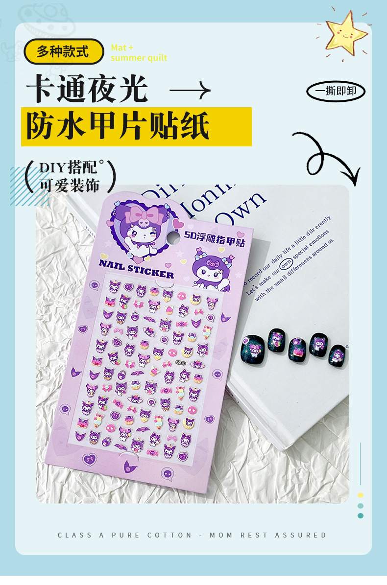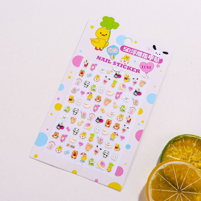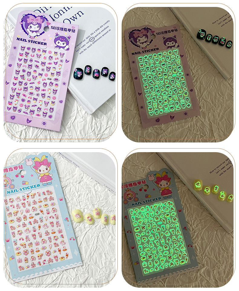 5D стерео наклейки для ногтей с тиснением, наклейки для дизайна ногтей, милые животные Kuromi labubu, детские и светящиеся наклейки с героями мультфильмов для девочек