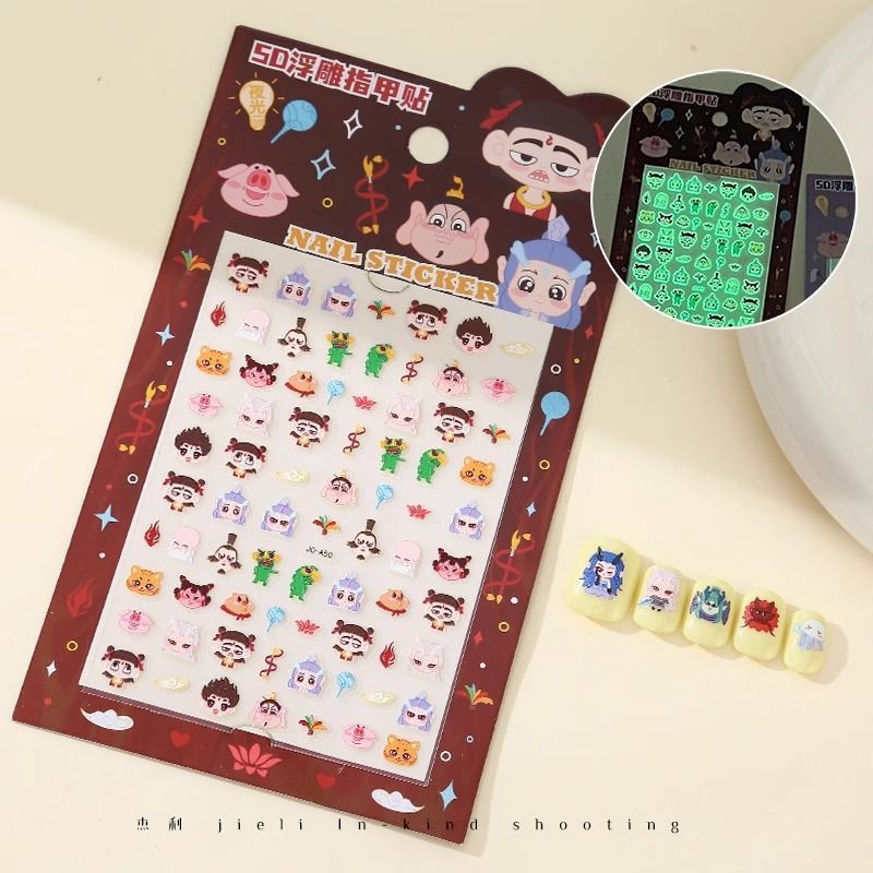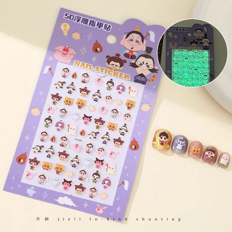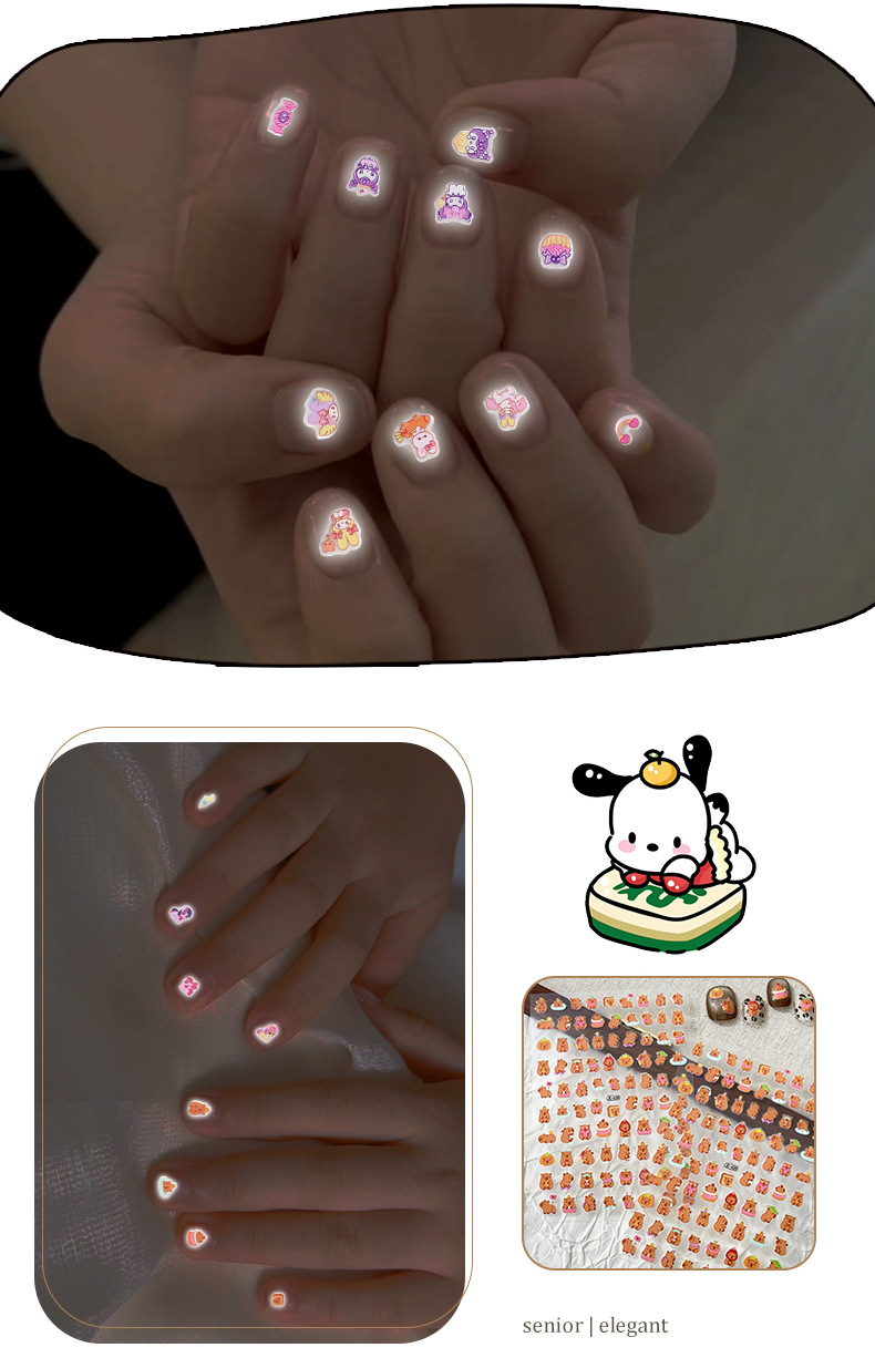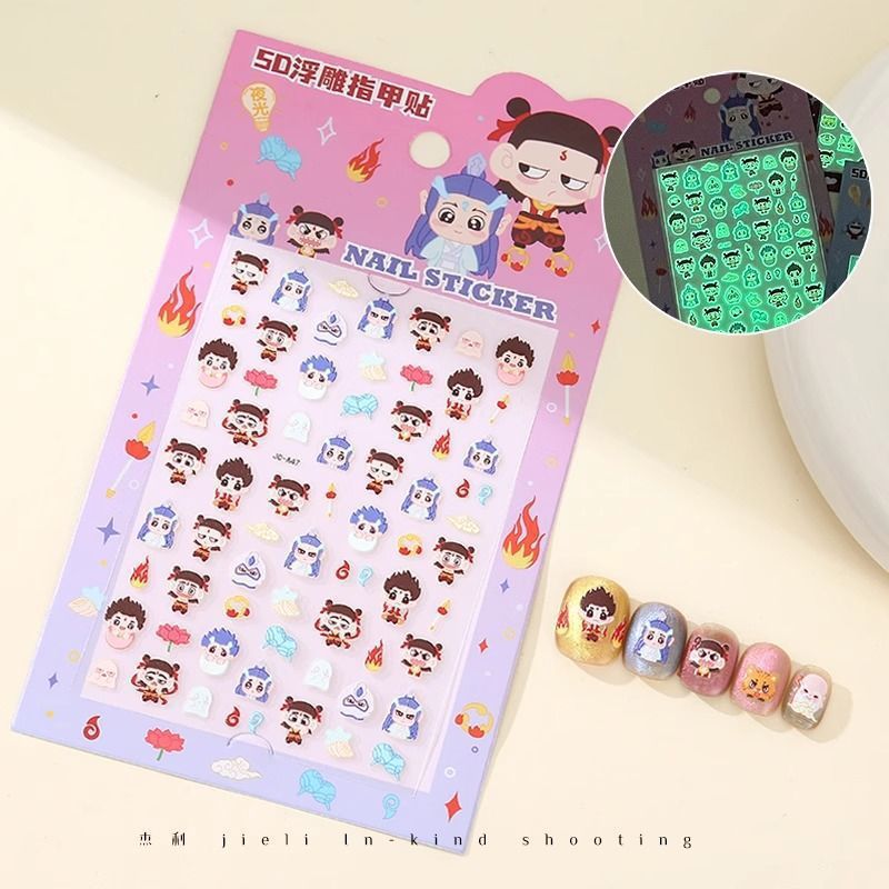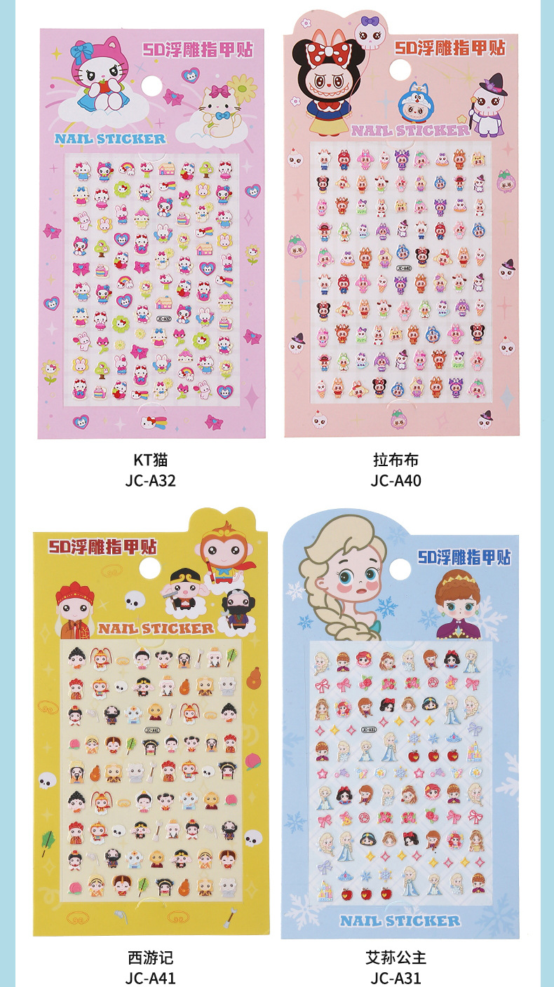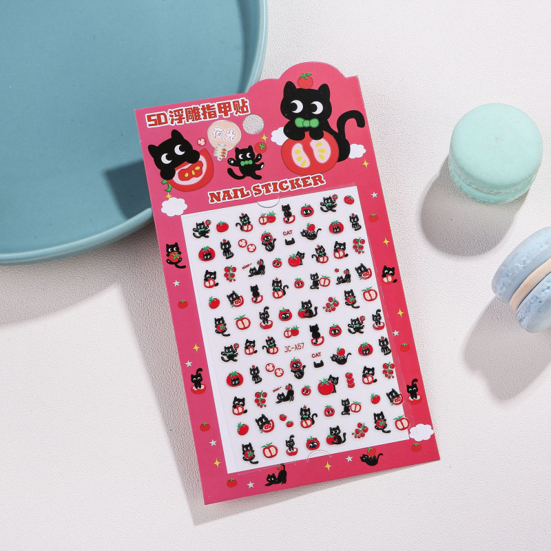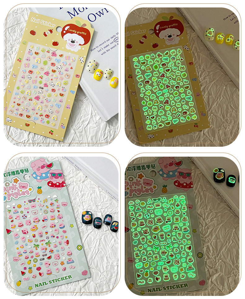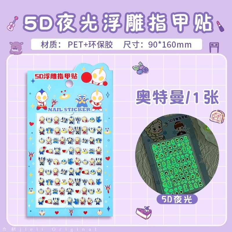5D стерео наклейки для ногтей с тиснением, наклейки для дизайна ногтей, милые животные Kuromi labubu, детские и светящиеся наклейки с героями мультфильмов для девочек