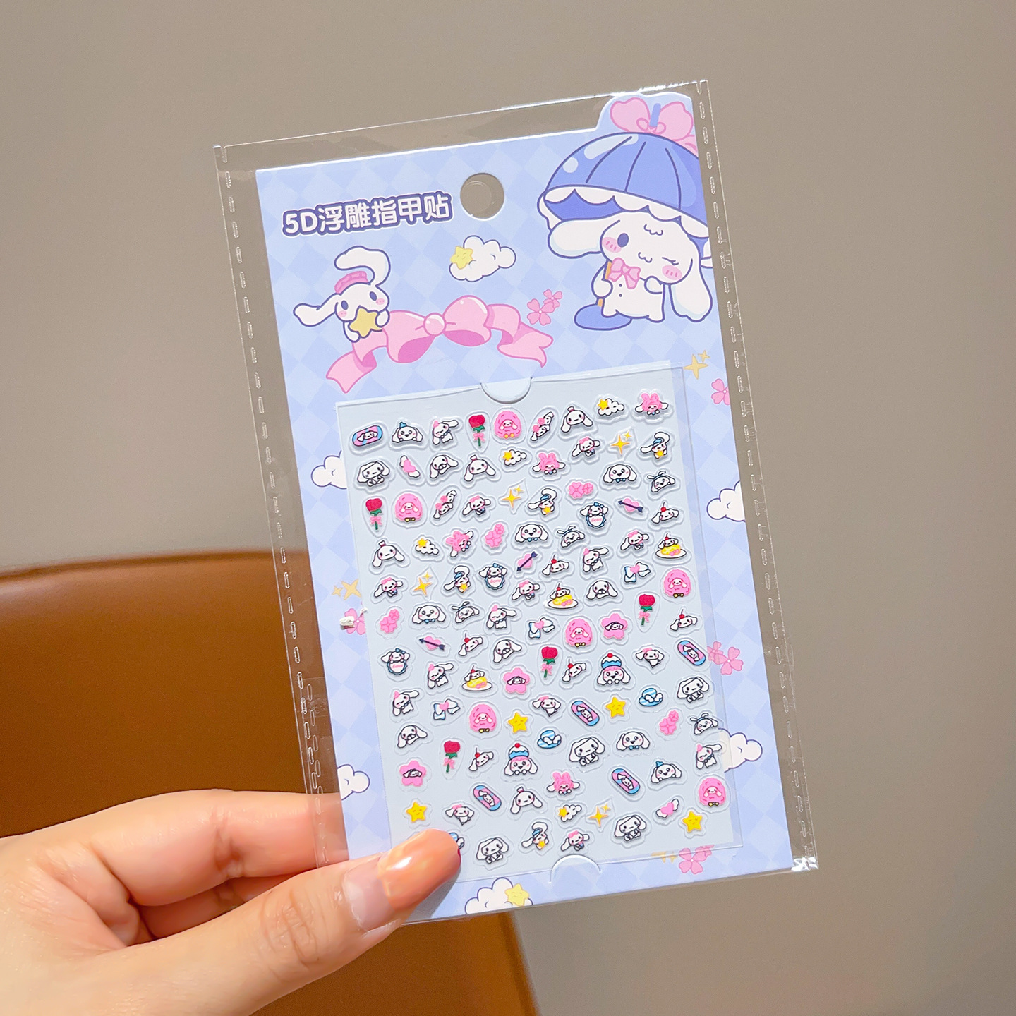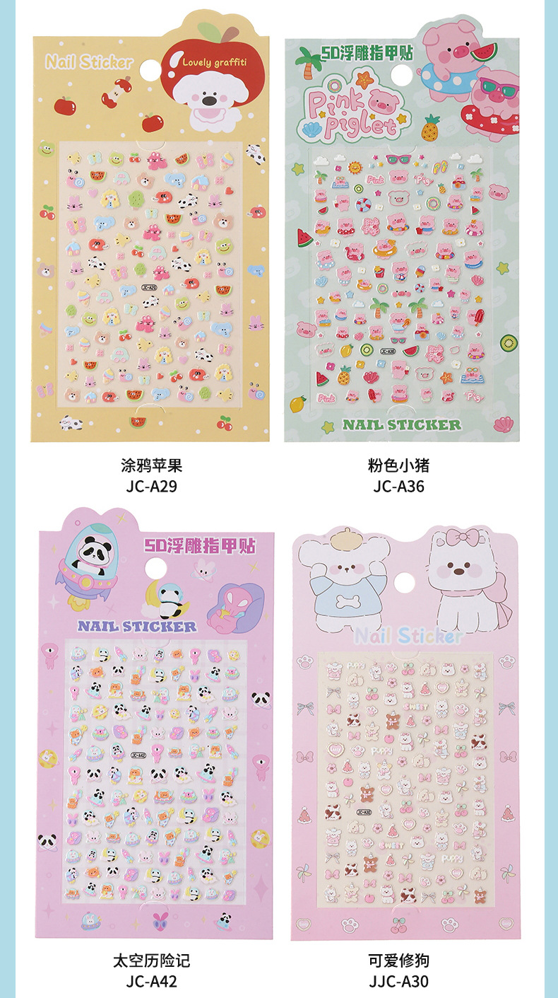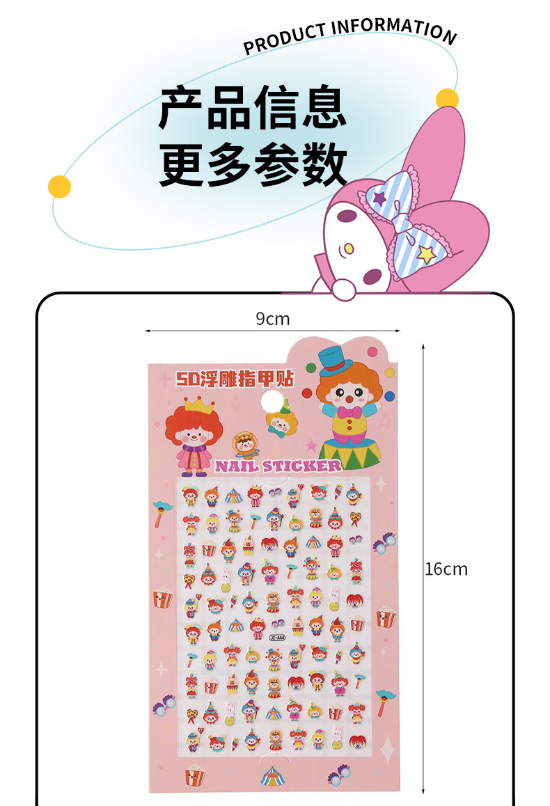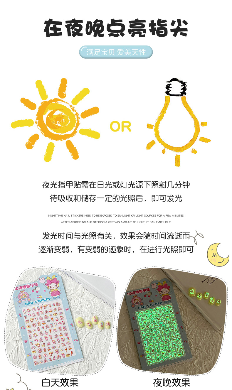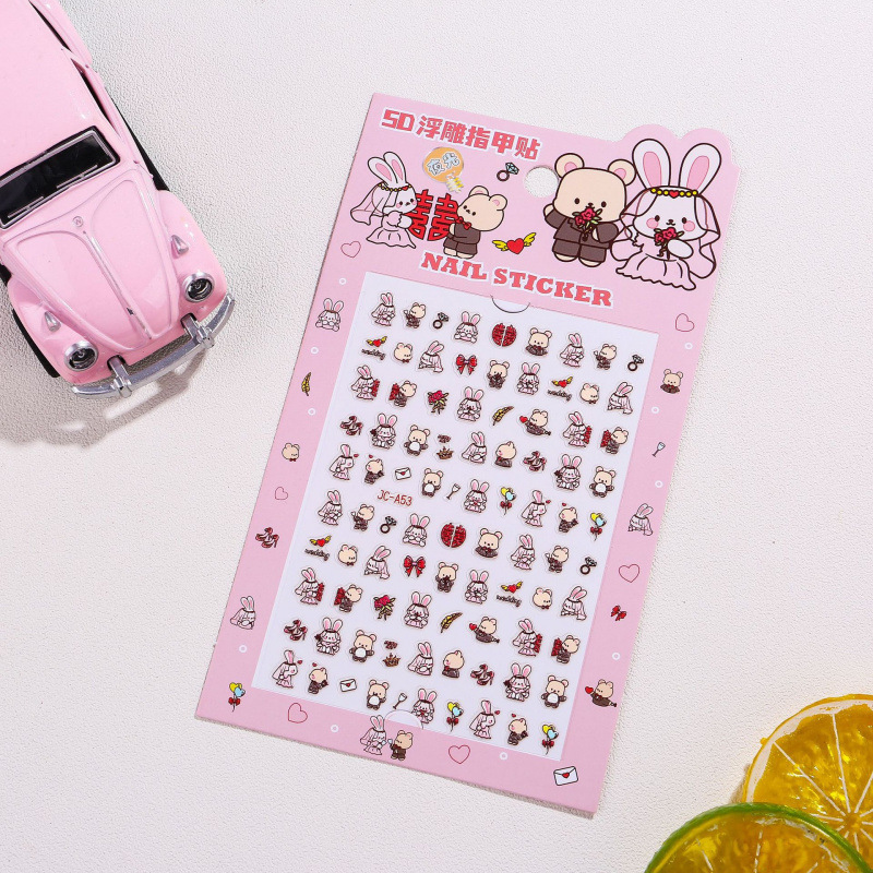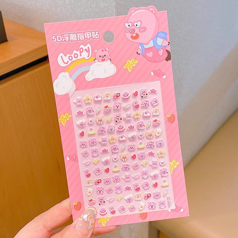 5D стерео наклейки для ногтей с тиснением, наклейки для дизайна ногтей, милые животные Kuromi labubu, детские и светящиеся наклейки с героями мультфильмов для девочек