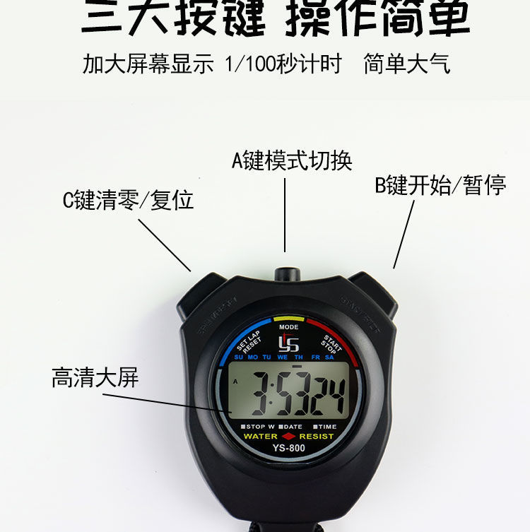 Таймер Секундомер Тренировка Студенческий тренер по фитнесу Судья Легкая атлетика Спортивный бег Большой экран Хронограф