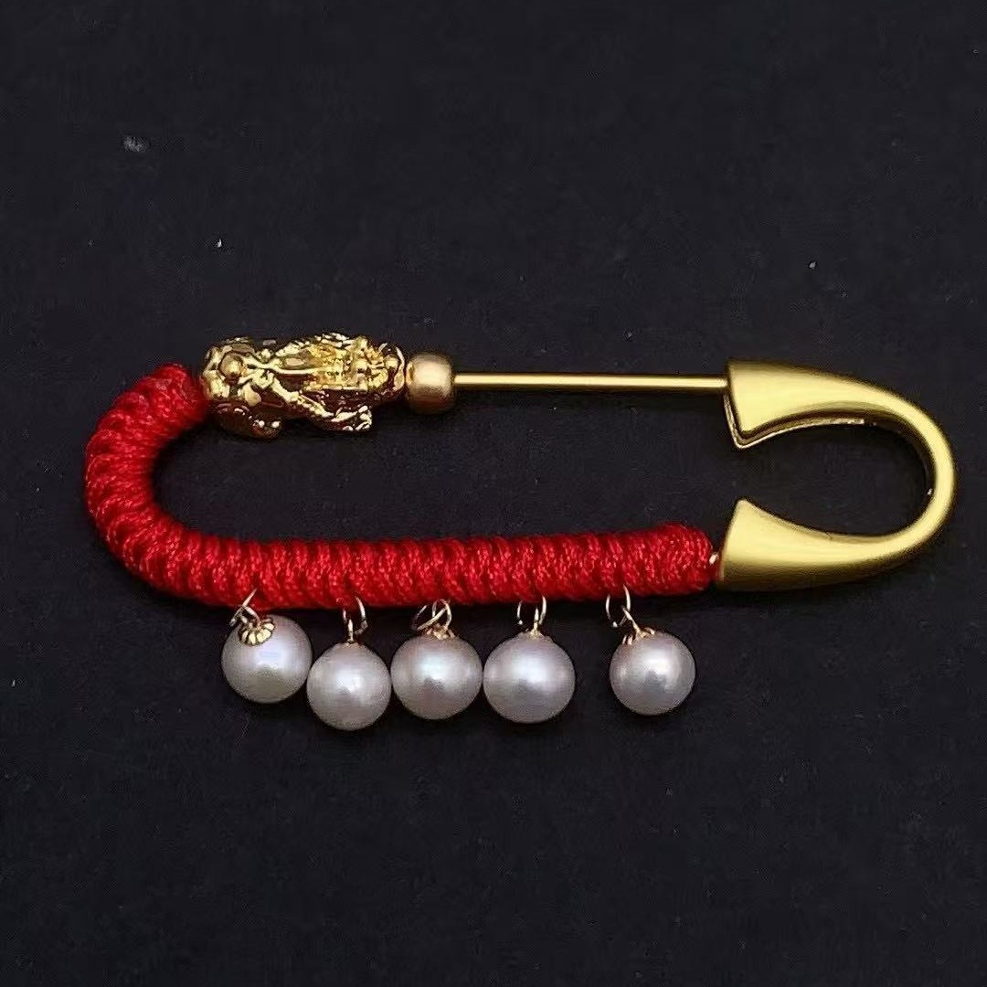 Золотая брошь для малышей из золота 18 карат, успокаивающая маленький амулет Pixiu, брошь для беременных женщин, жемчужный подвесной кулон