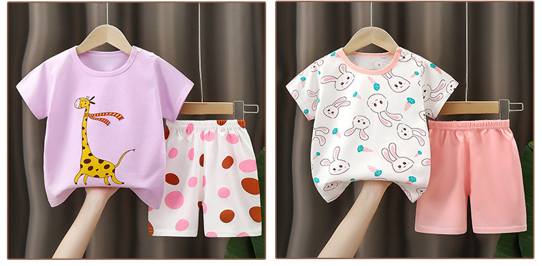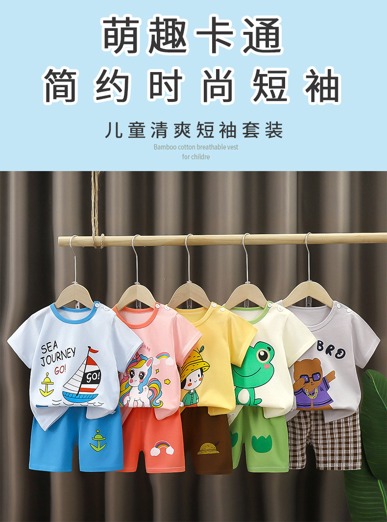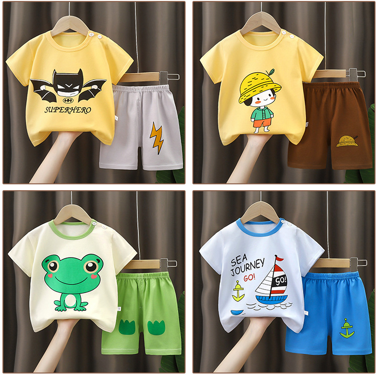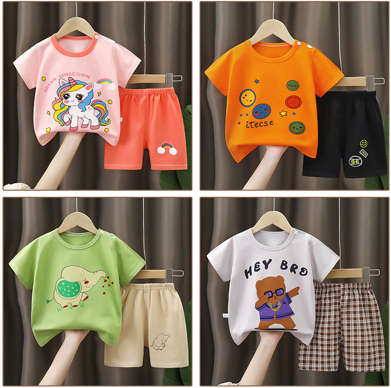 2025 новый детский набор с короткими рукавами Летний хлопчатобумажный детский топ шорты из двух частей