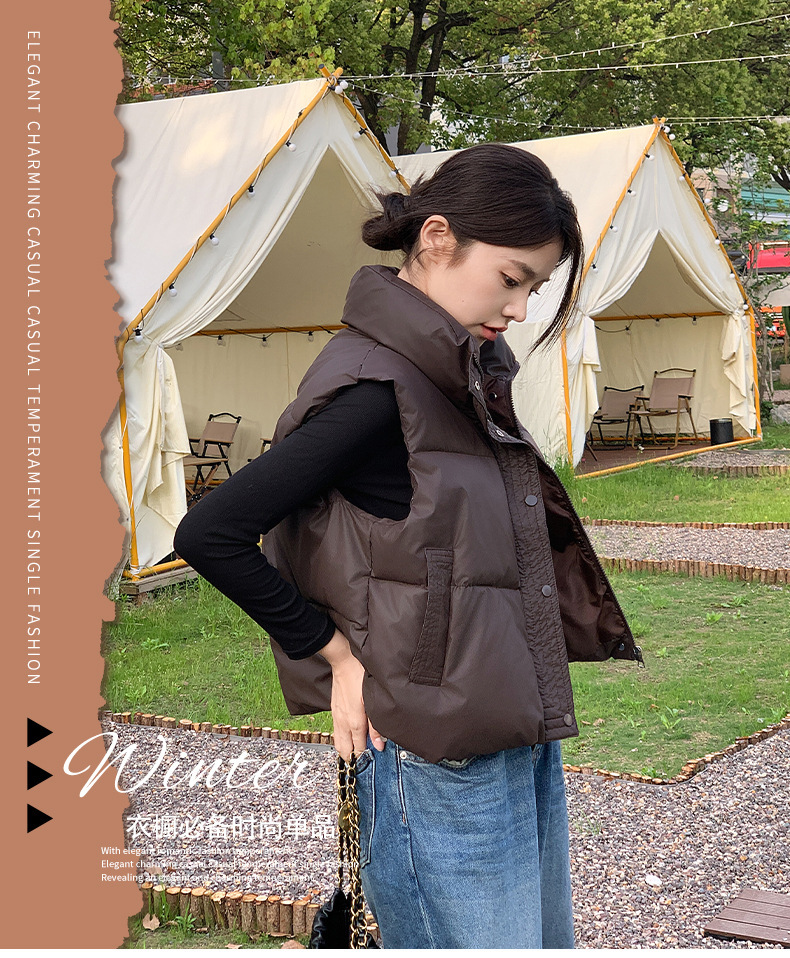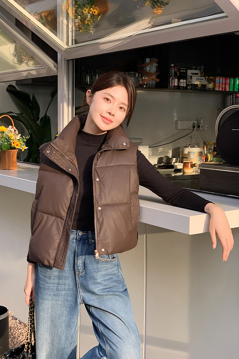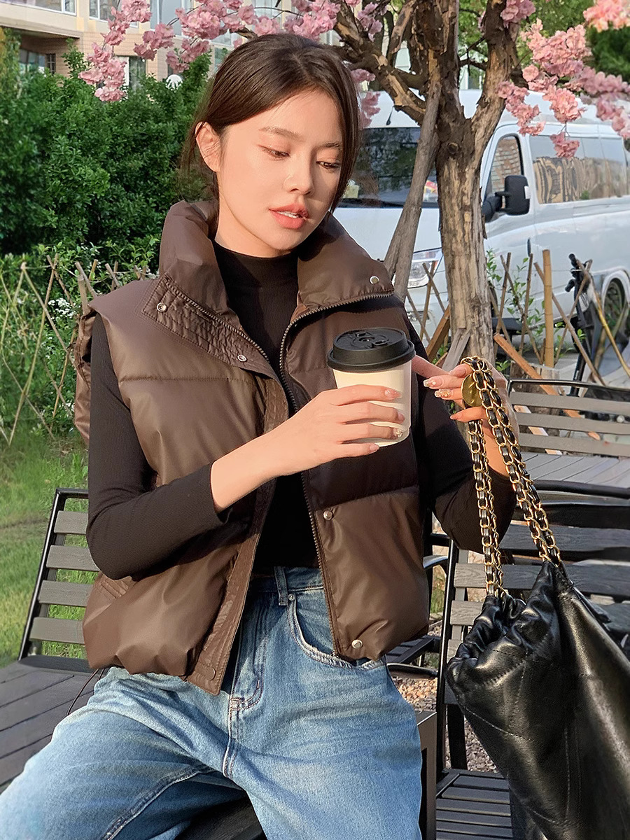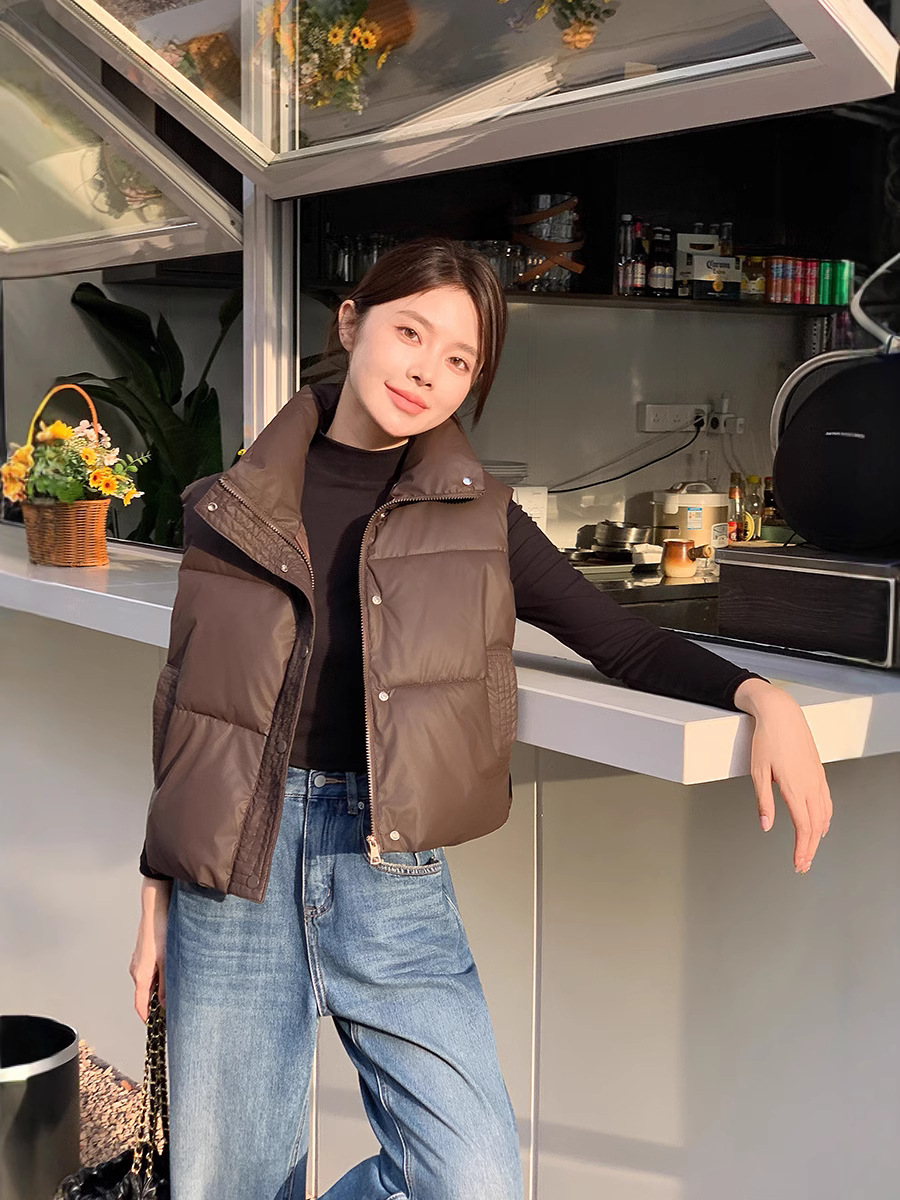 2025 осенний и зимний сплошной воротник с коротким воротом из хлопка