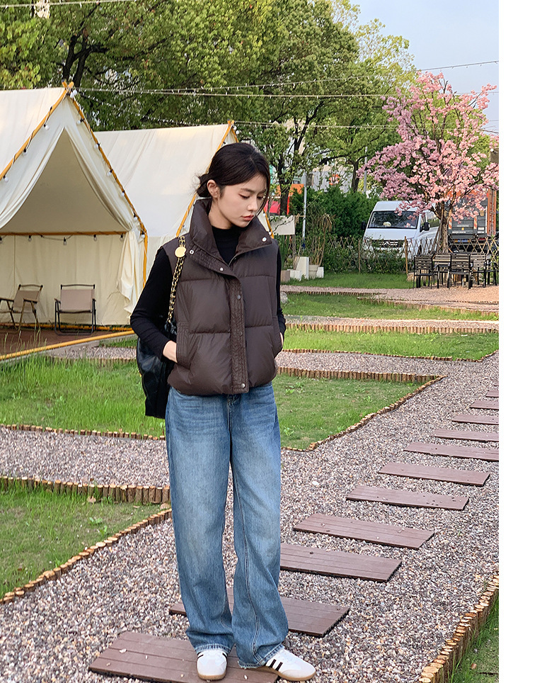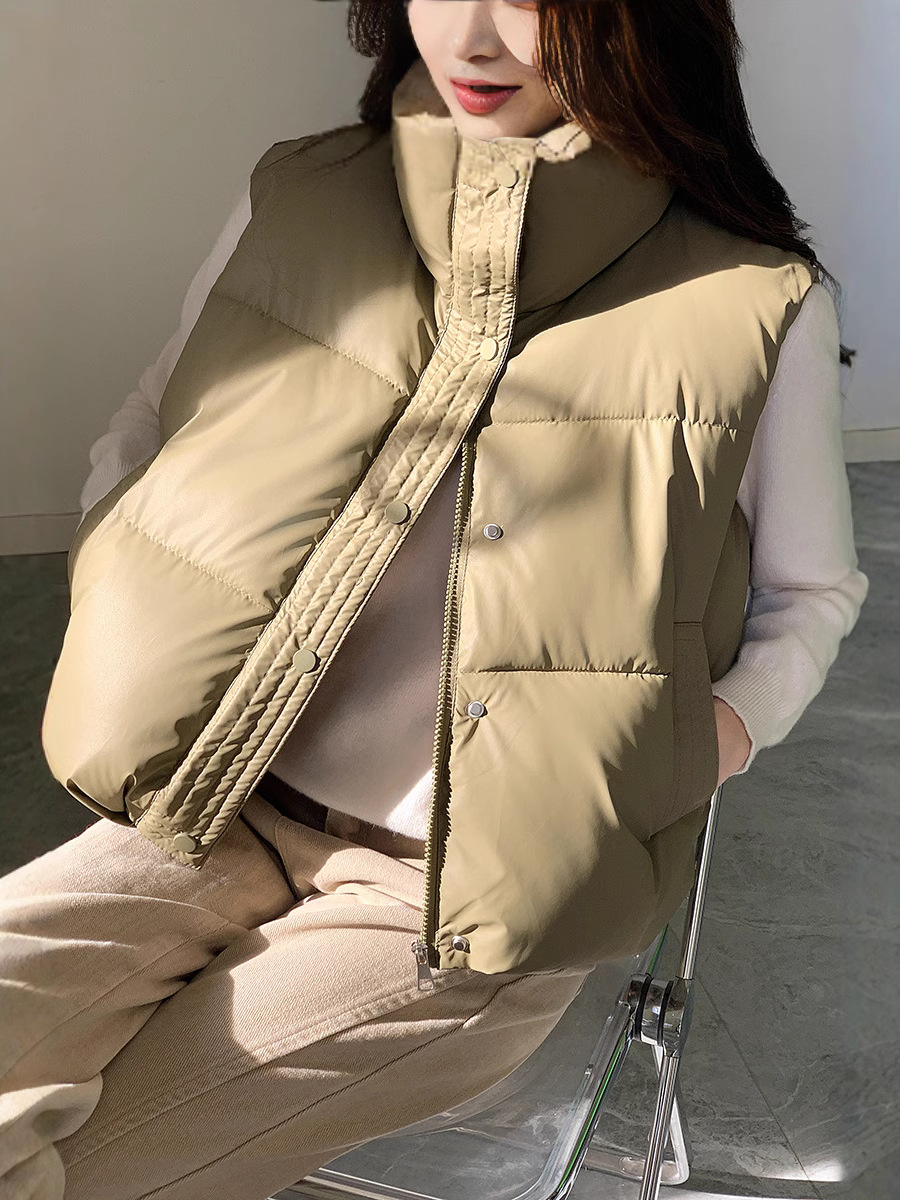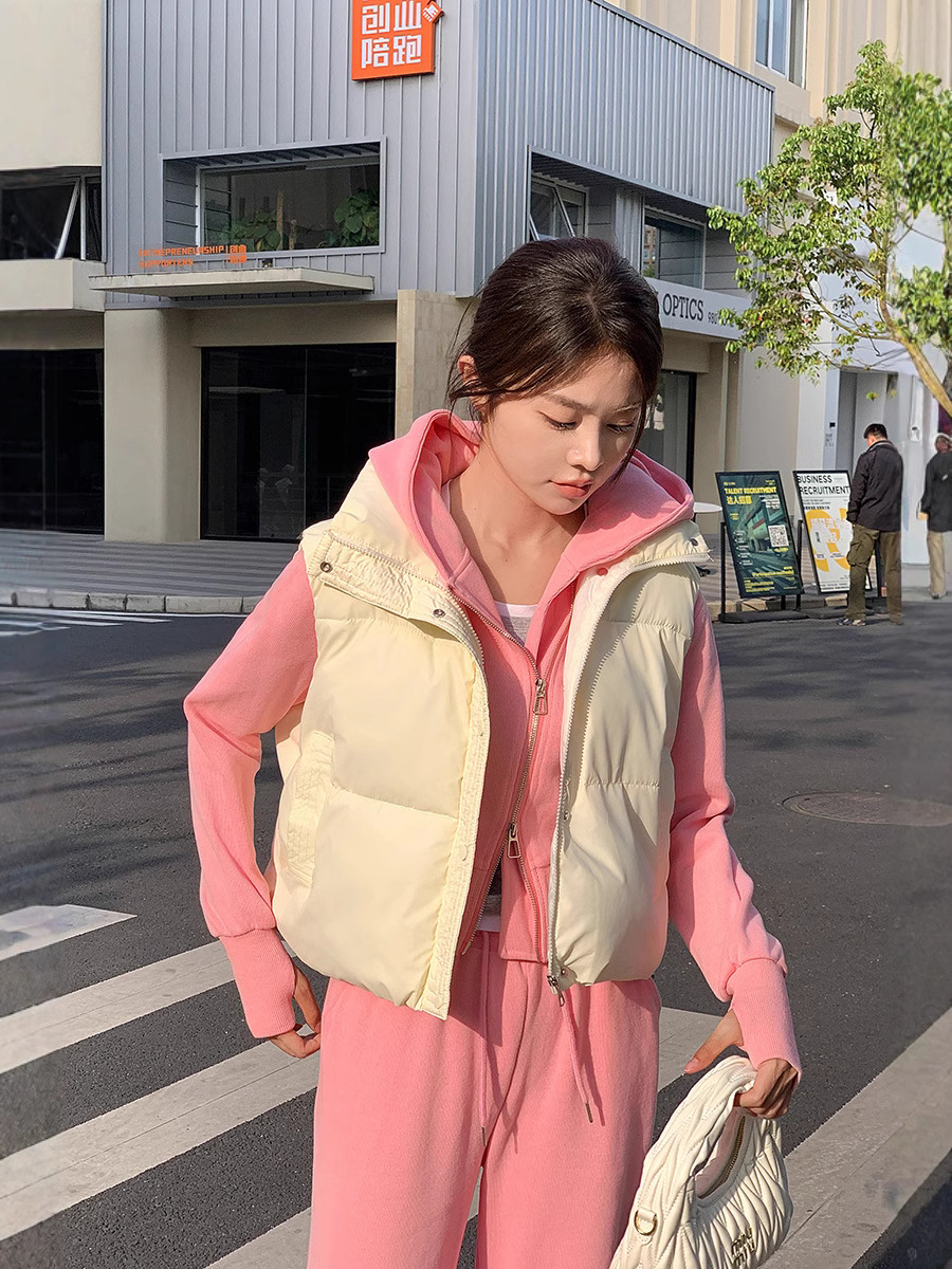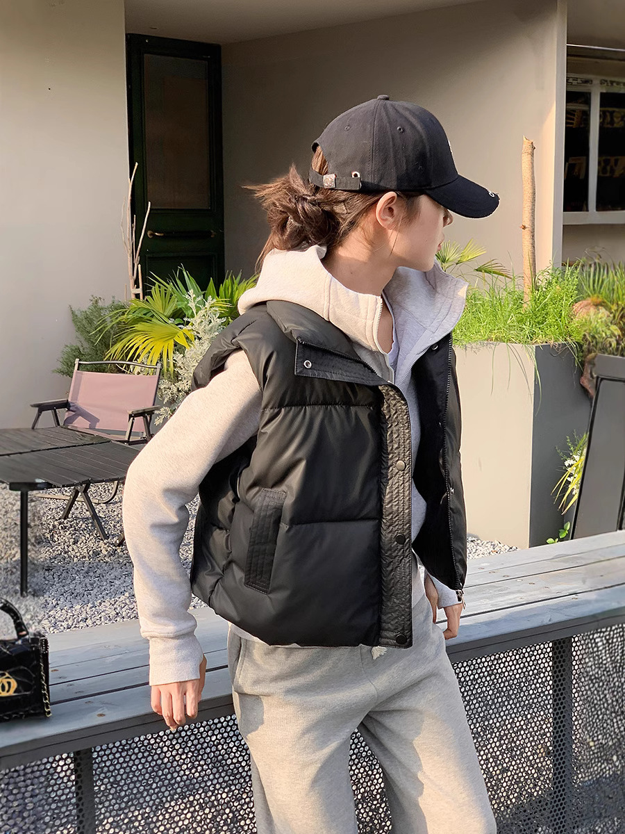 2025 осенний и зимний сплошной воротник с коротким воротом из хлопка