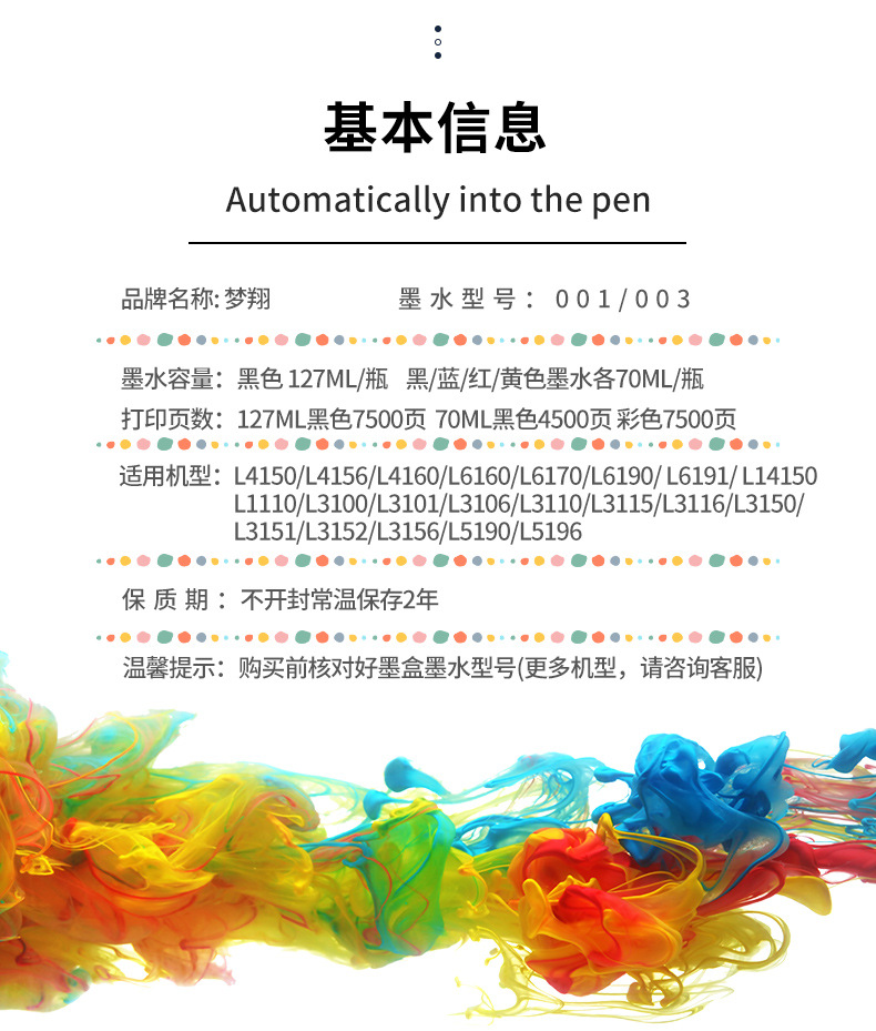 Применяет Epson EPSON 003/001 чернила L3110 L3101 6290 L11050 чернила для принтера