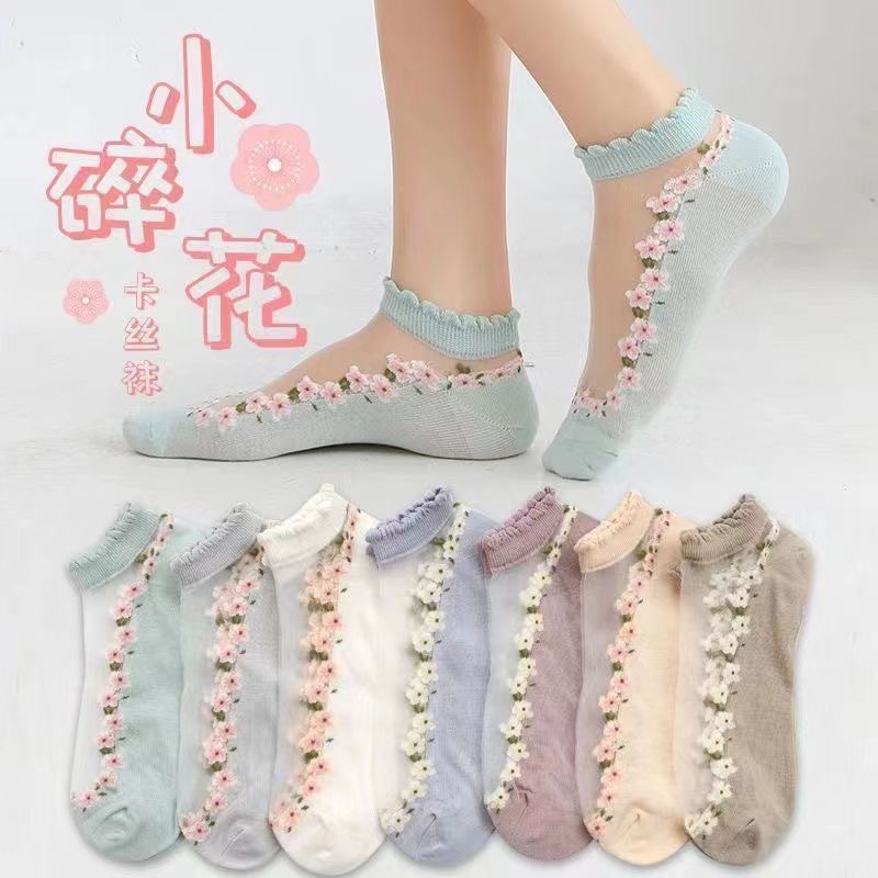 Японские короткие чулки-невидимые чулки-чулки маленькие цветочные чулки прозрачные хрустальные чулки летние женские чулки оптовая продажа
