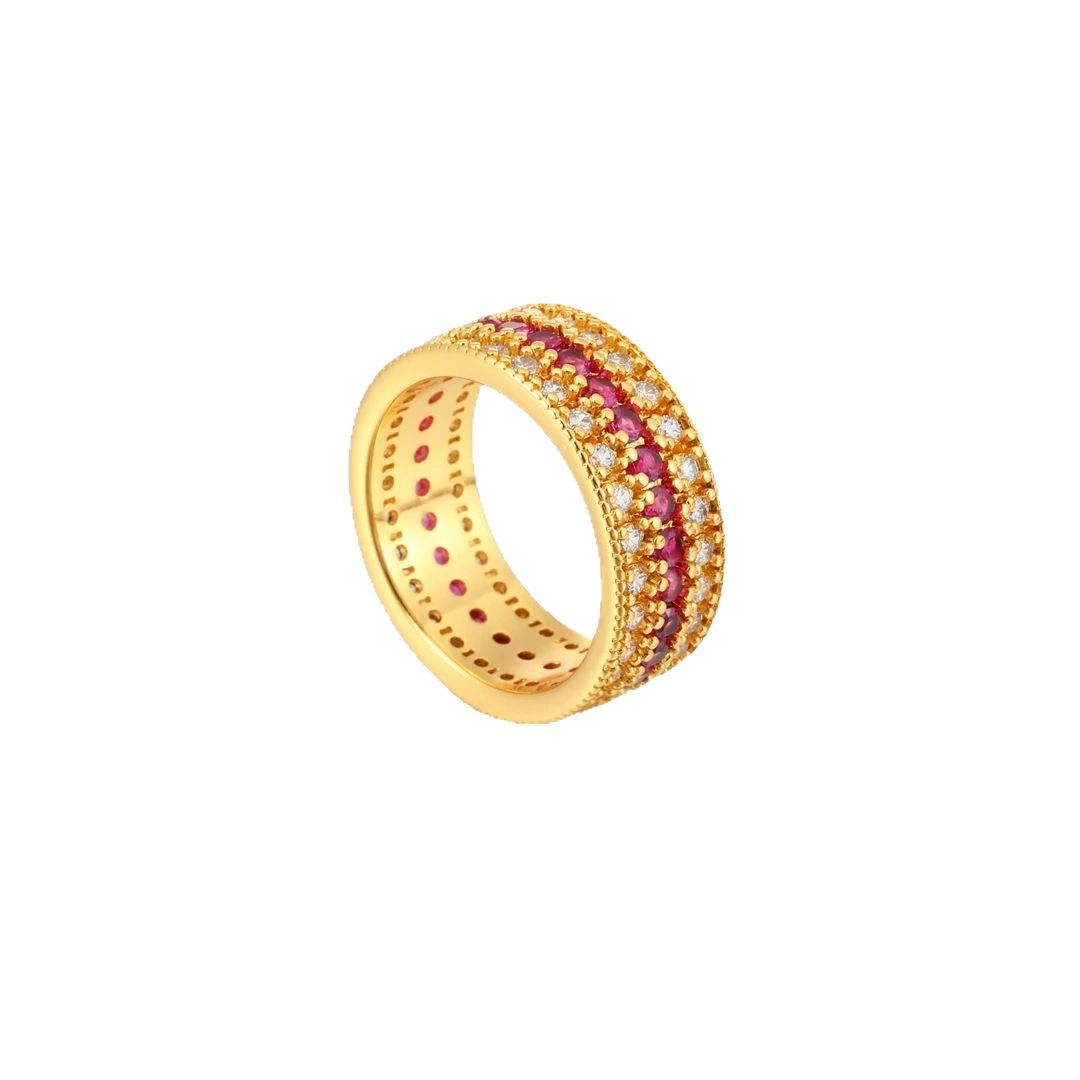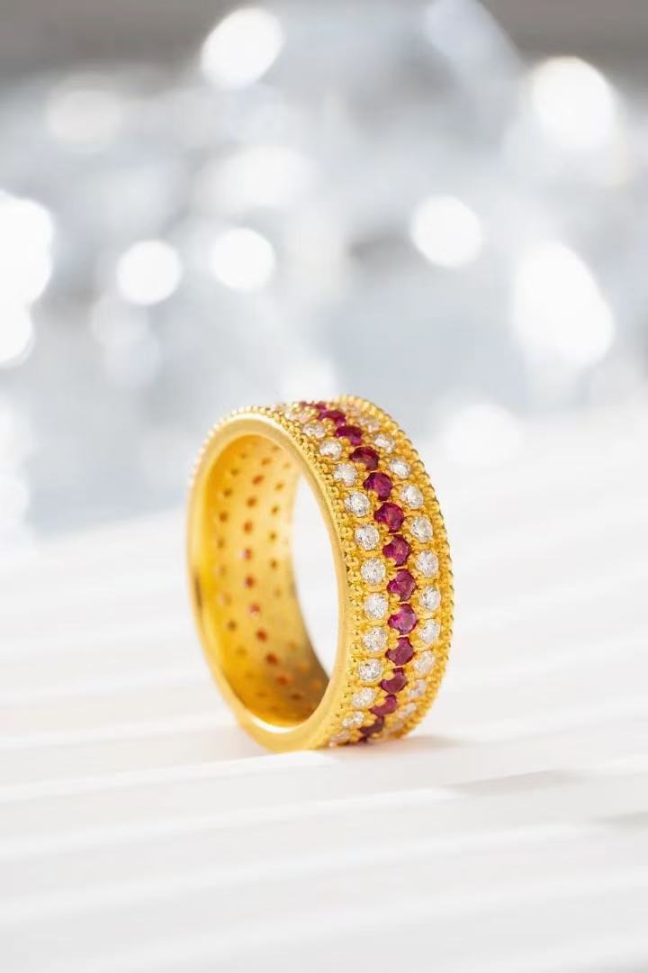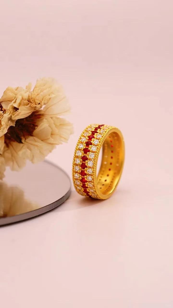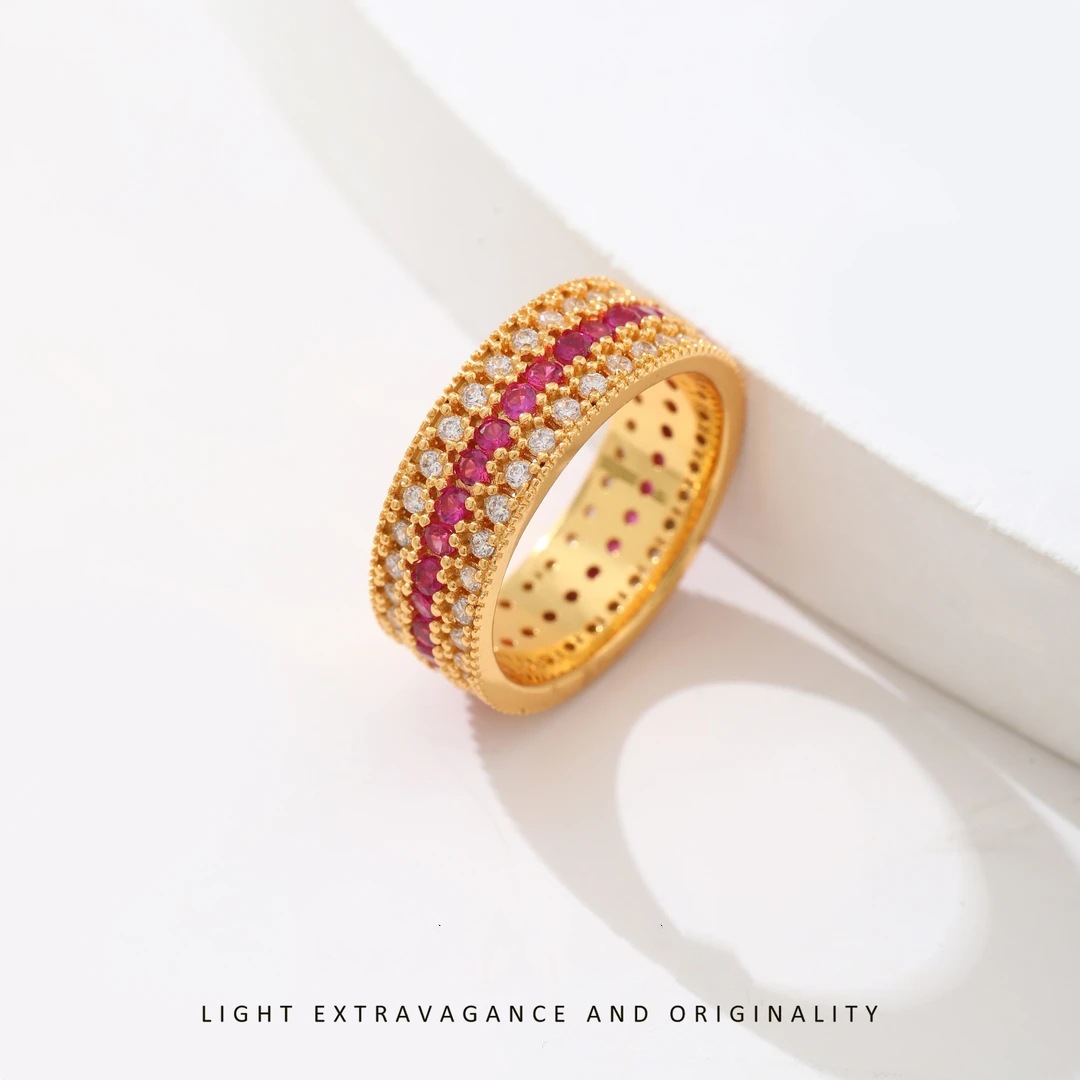 Трехрядное звездное кольцо из золота 18 карат au750, цветное золото, полная бриллиантовая звезда, красная и белая инкрустация, средневековое доступное роскошное высококачественное золото в форме ракушки
