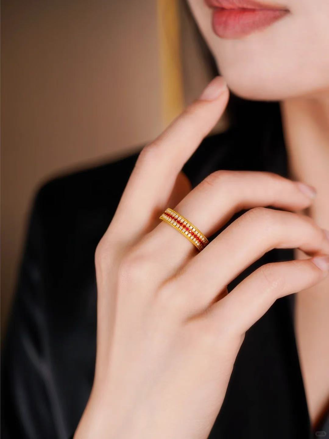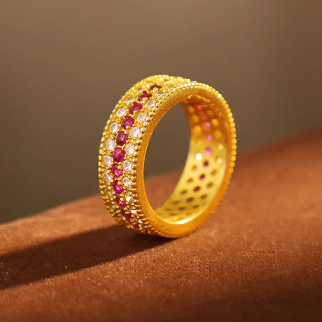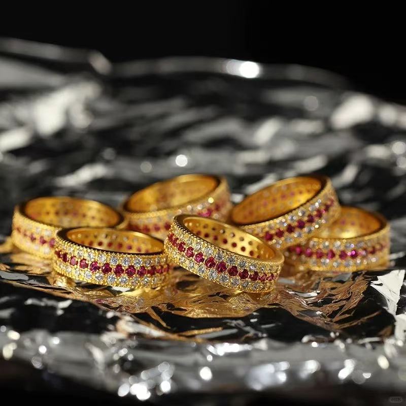 Трехрядное звездное кольцо из золота 18 карат au750, цветное золото, полная бриллиантовая звезда, красная и белая инкрустация, средневековое доступное роскошное высококачественное золото в форме ракушки