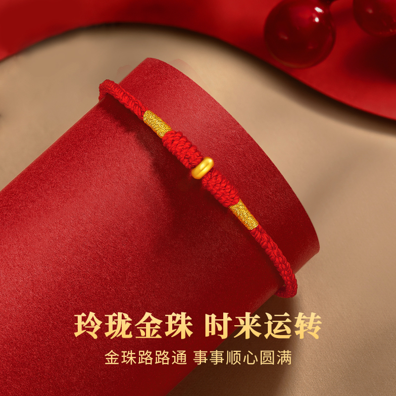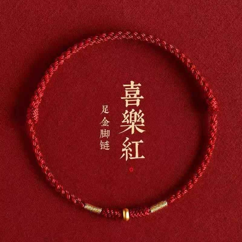 Браслет из чистого золота 999 пробы с бусинами-абакусами, красной нитью и золотыми бусинами для переноски, водонепроницаемый, DIY, подарок для пары на год по зодиаку