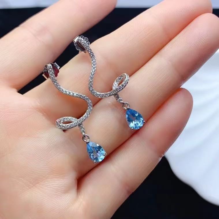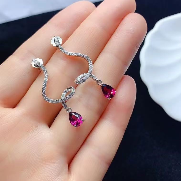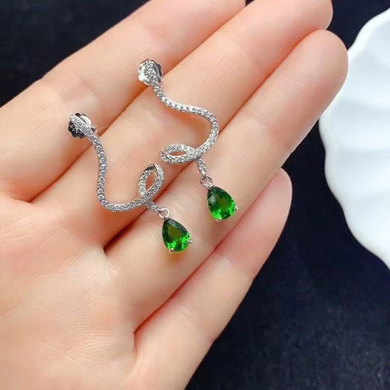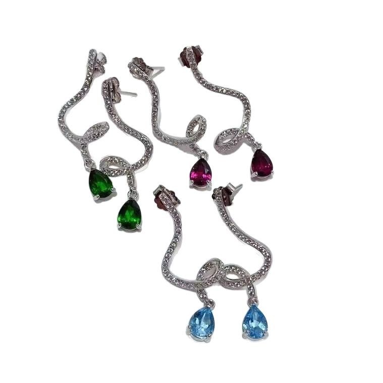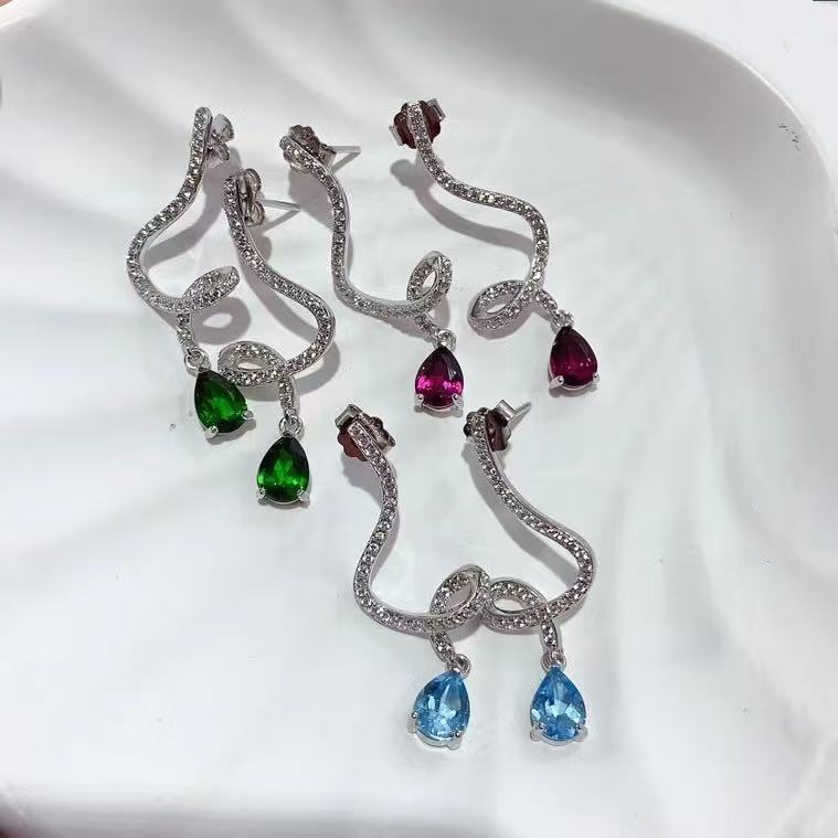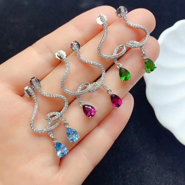 925 стерлингового серебра, инкрустированного топазом магнезиево-алюминиевый гранат, диоптеритовые серьги, спиральные капли воды, чувство высокой моды