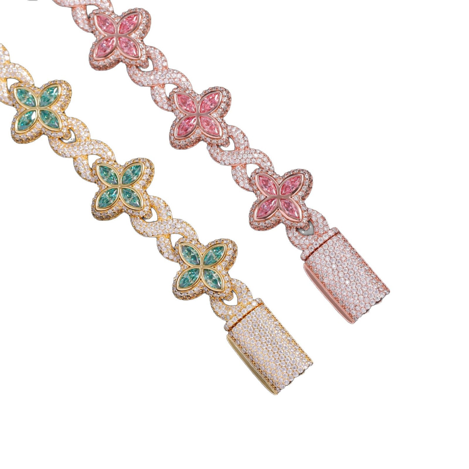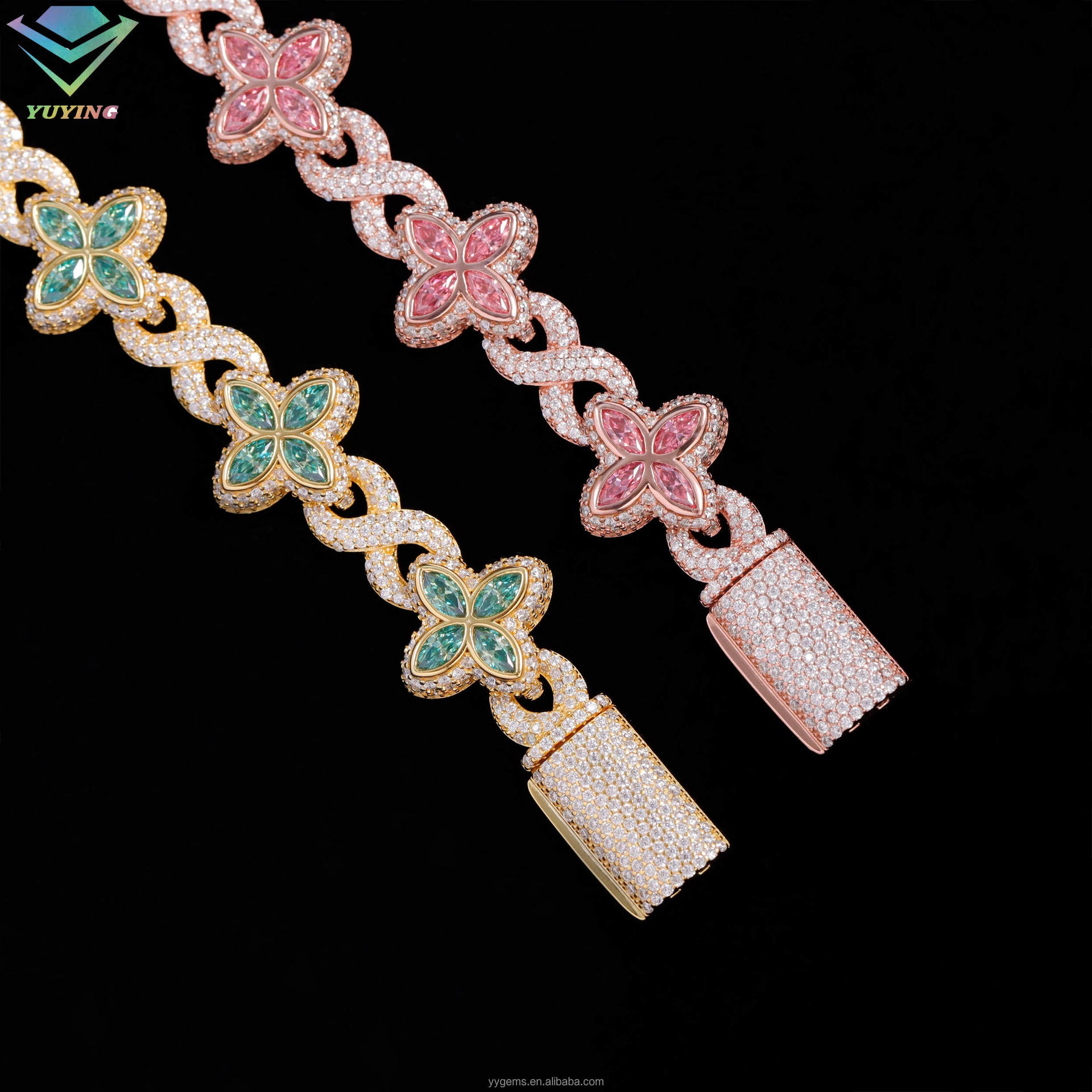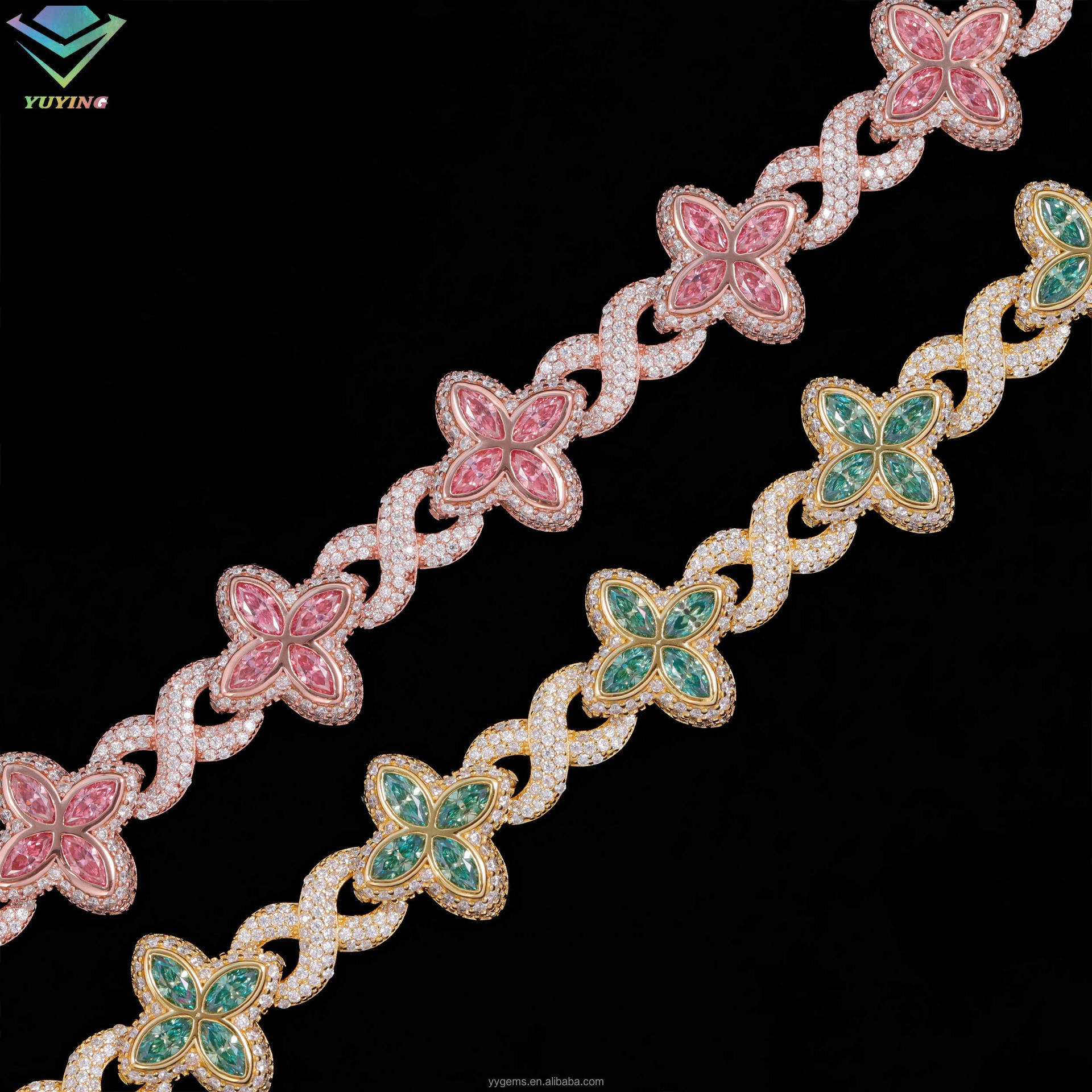Европейский и американский бестселлер: браслет из стерлингового серебра S925 с разноцветным четырехлистным клевером, инкрустированный муассанитом огранки «маркиза», классический универсальный модный браслет.