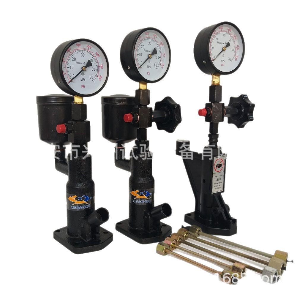 喷油嘴试验器S60H是校验喷油器的专用设备,可以检查喷油器的开启压力、密封性及喷雾形状,配备了一个双量程的压力表和两个接头,结构紧凑,操作方便,使用广泛: