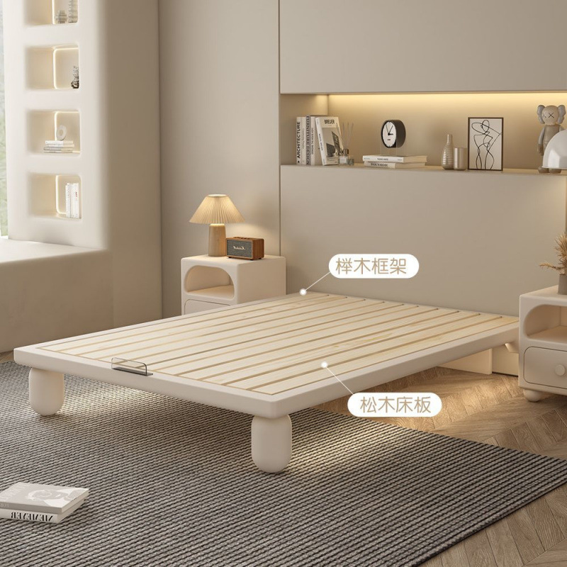 Крем Детская кровать из цельного дерева Современная минималистская с вставать светильники