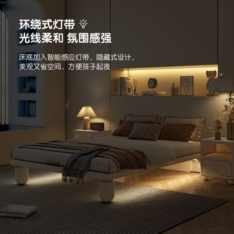 Кремовая детская кровать из массива дерева, современная повседневная с датчиком пробуждения, подвесная детская спальня с подсветкой