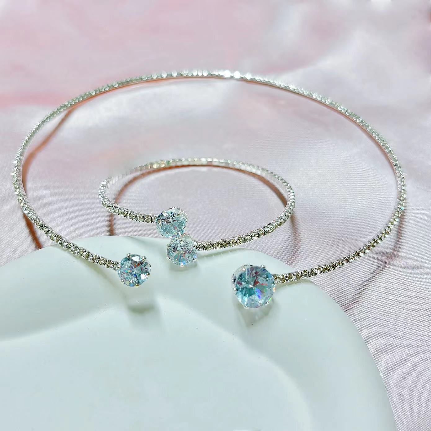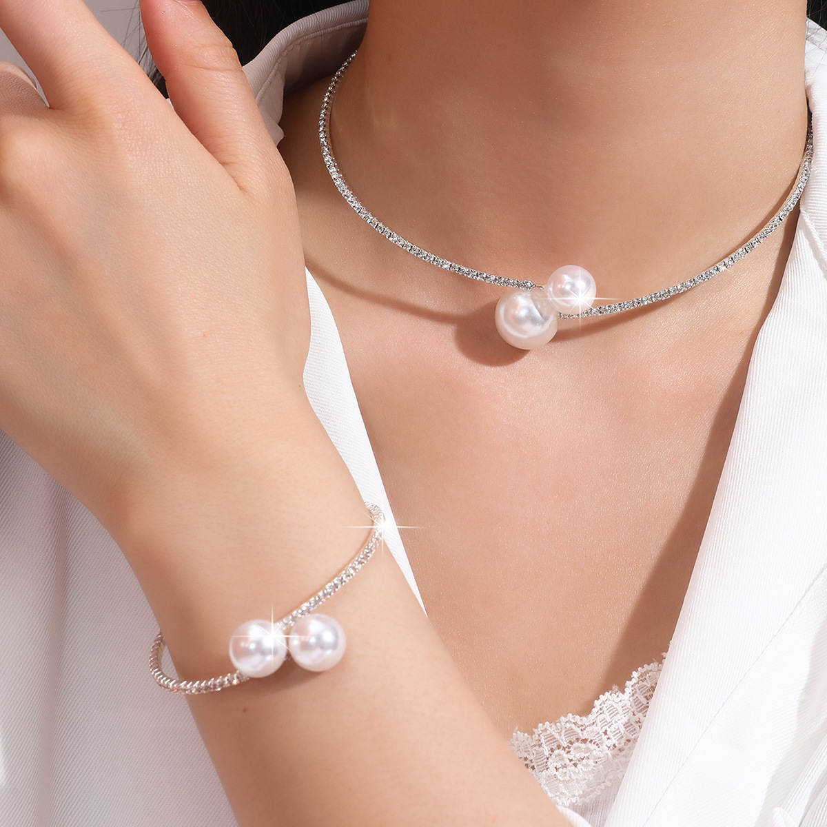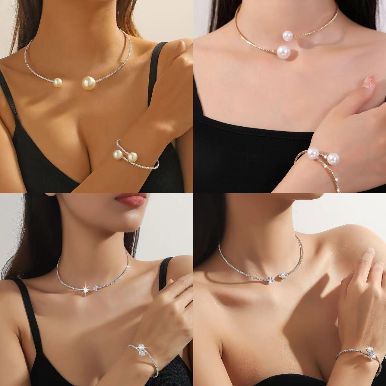Европейский и американский трансграничный горячий ошейник браслет 2 комплекта жемчужный циркон любовный треугольник круглый модный дикий темперамент