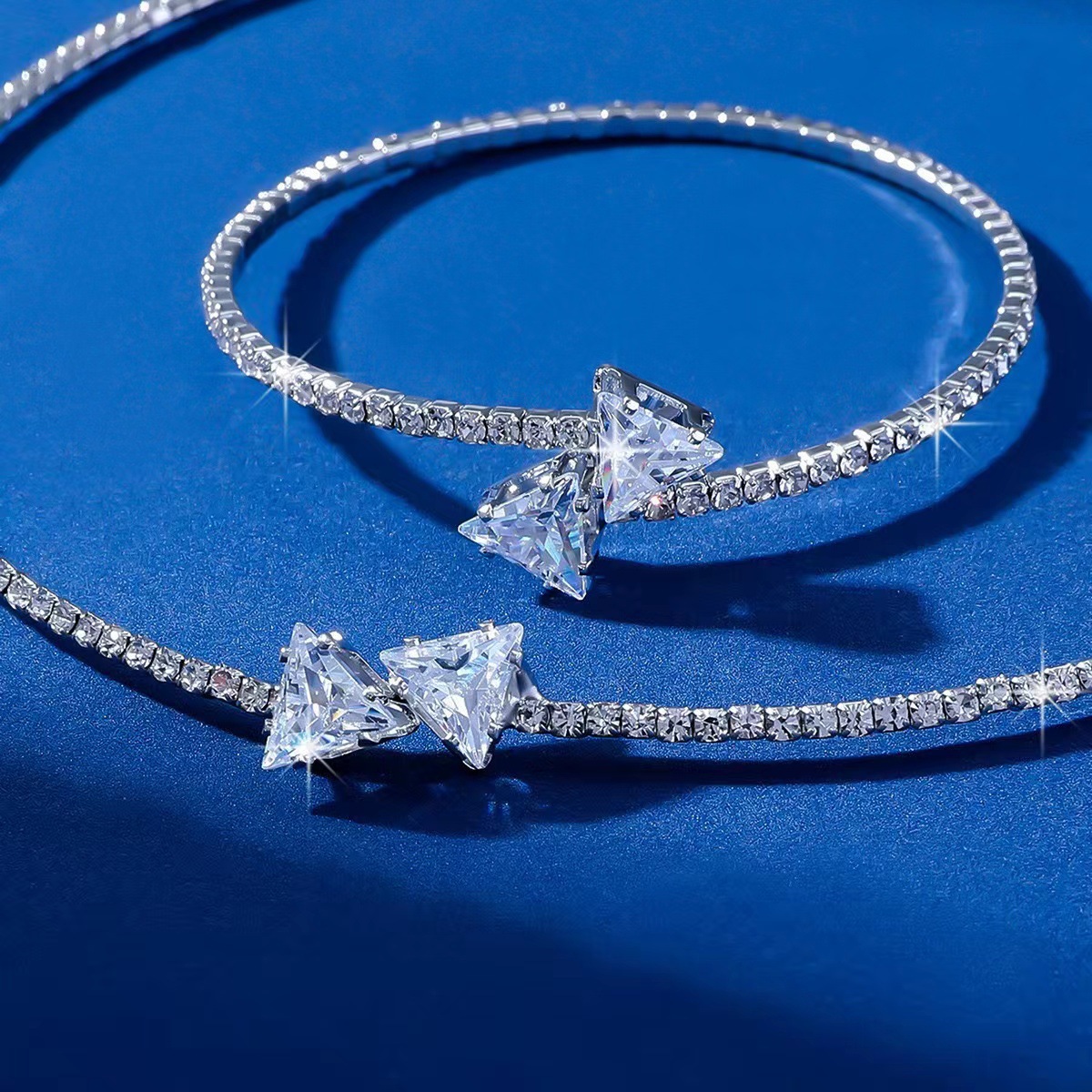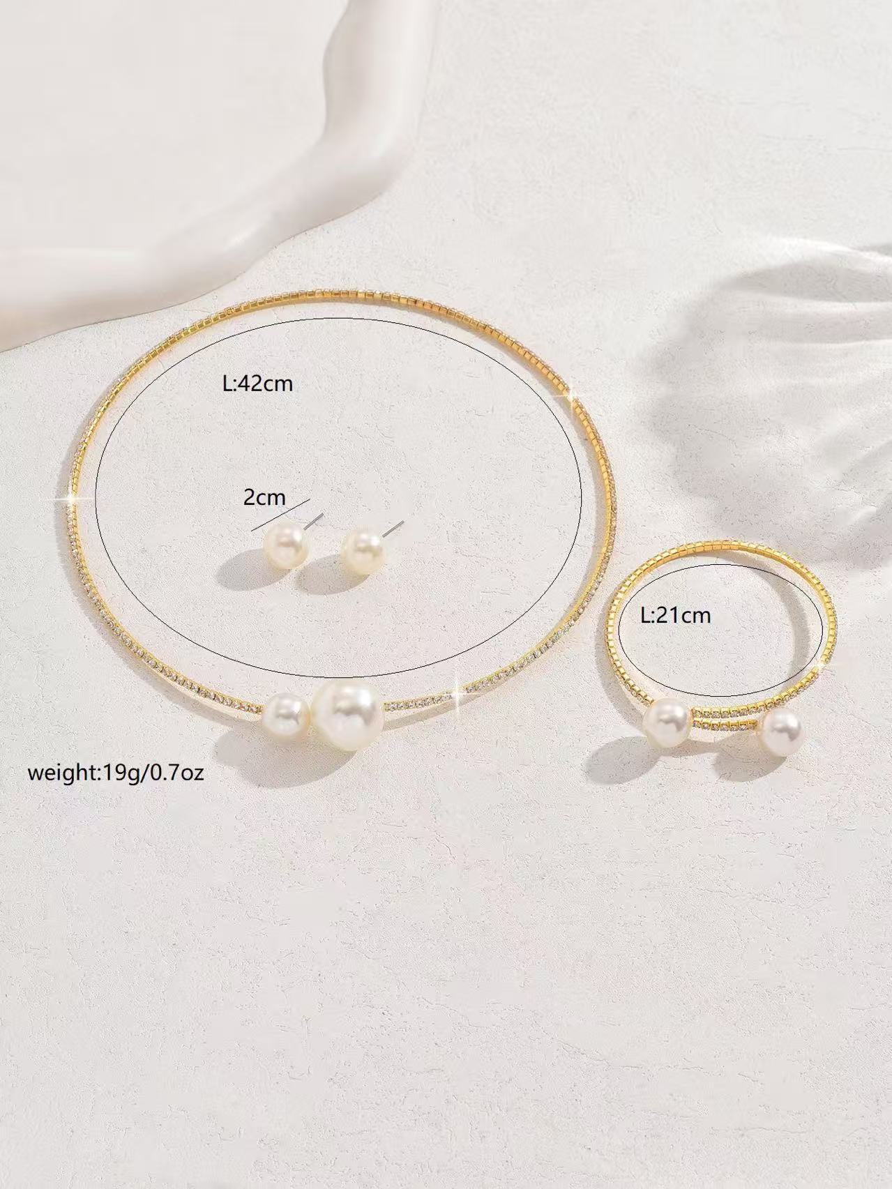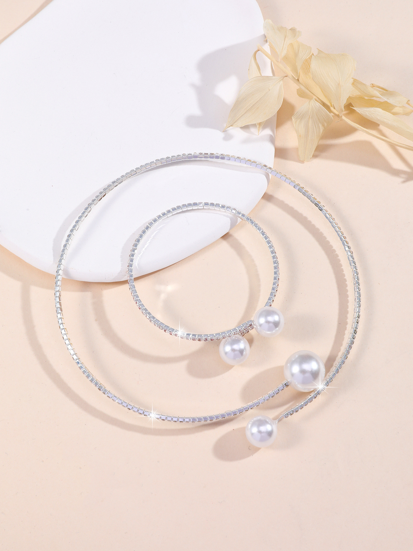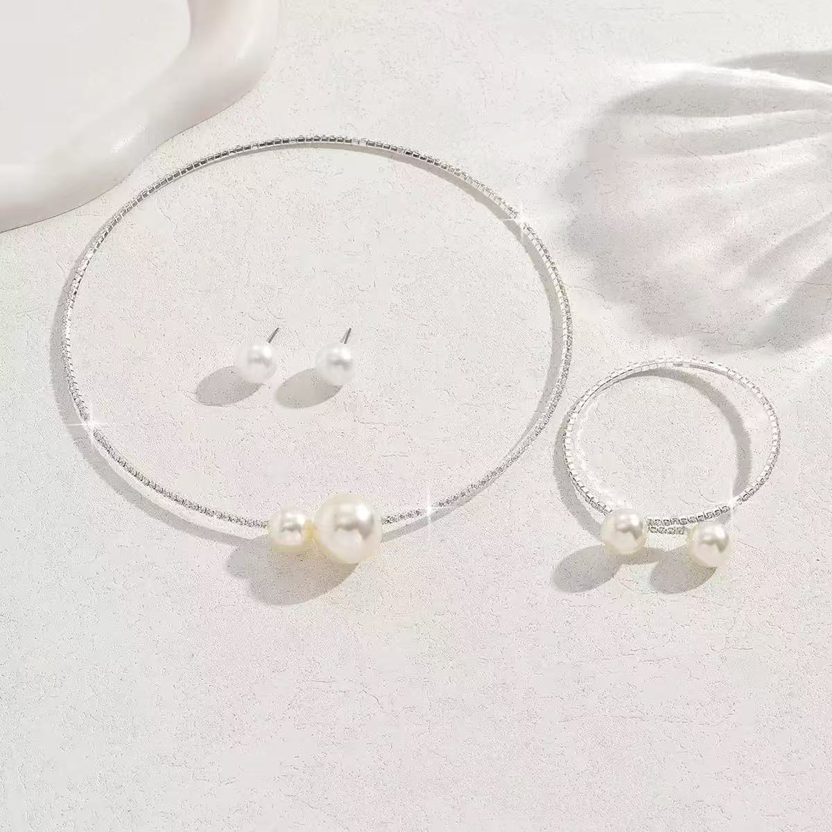 Европейский и американский трансграничный горячий ошейник браслет 2 комплекта жемчужный циркон любовный треугольник круглый модный дикий темперамент