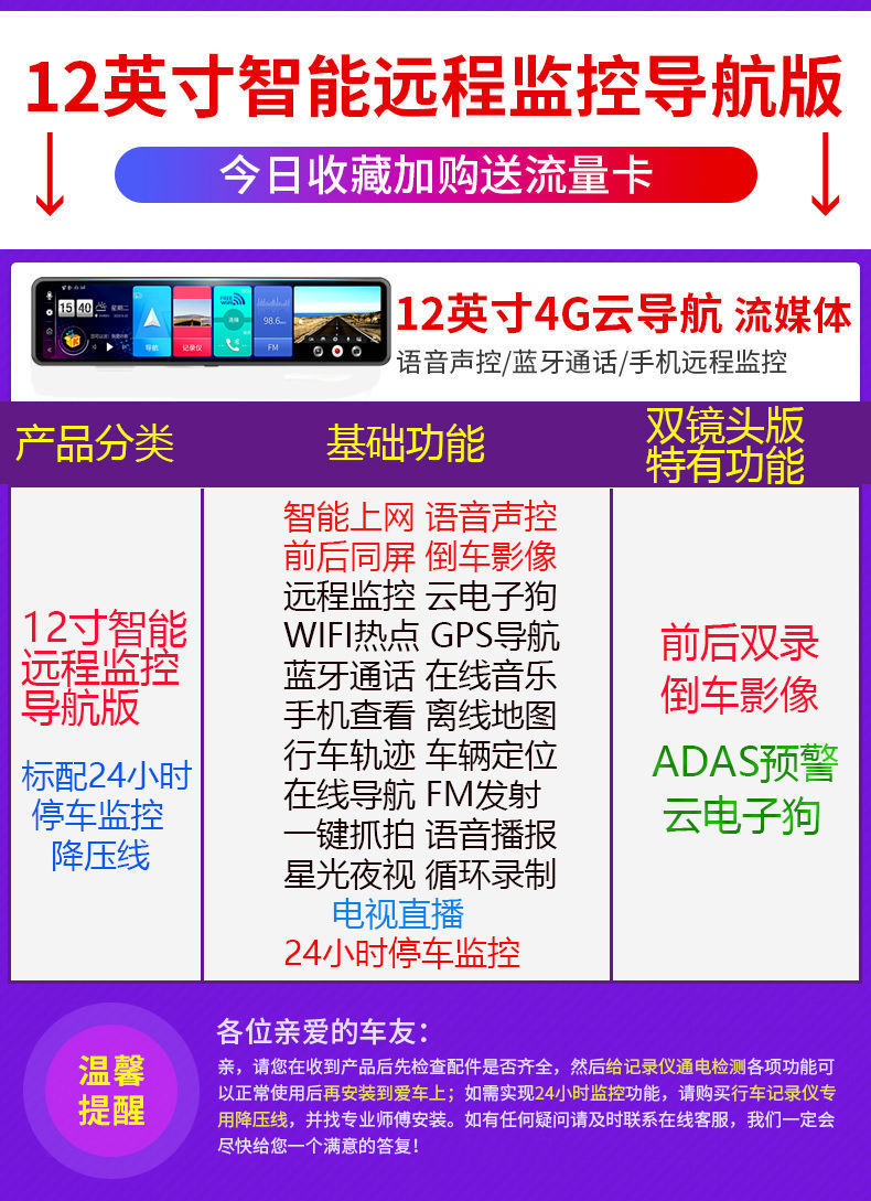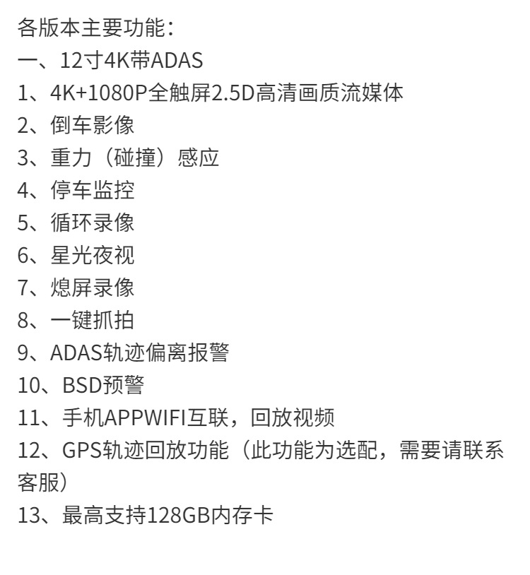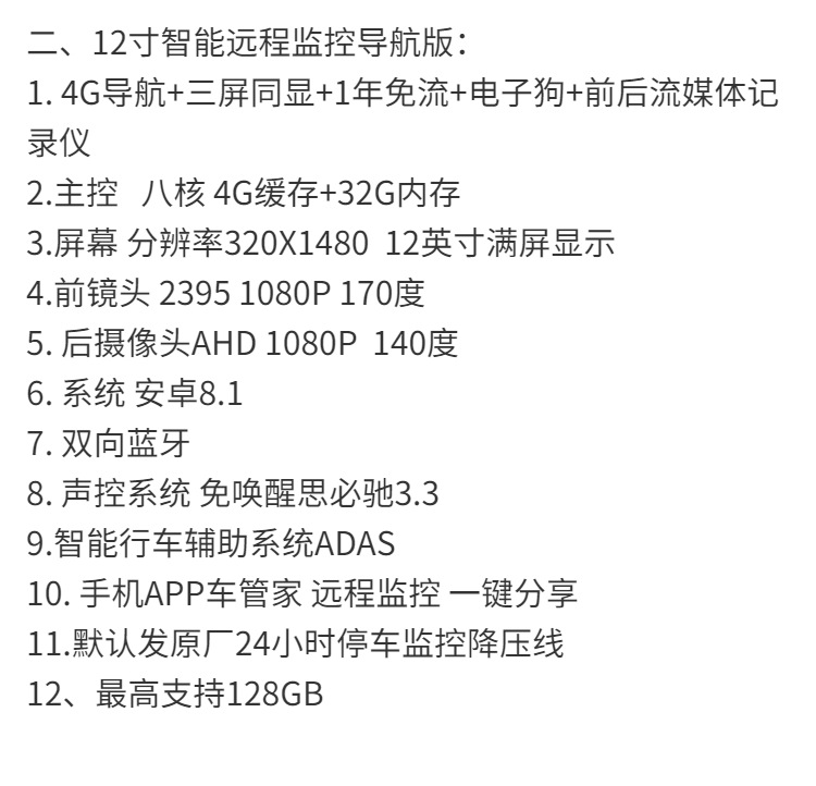 12inch 4K с ADAS (без функции навигации); 12inch Интеллектуальная версия удаленного мониторинга и навигации