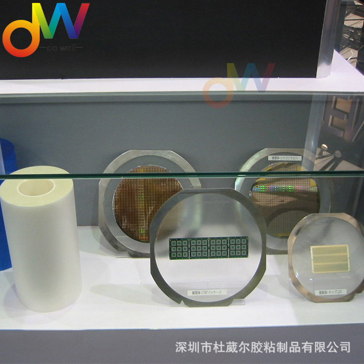 1、切割时高粘着力,照射UV后粘度很低捡拾时晶片不飞散,不残胶。