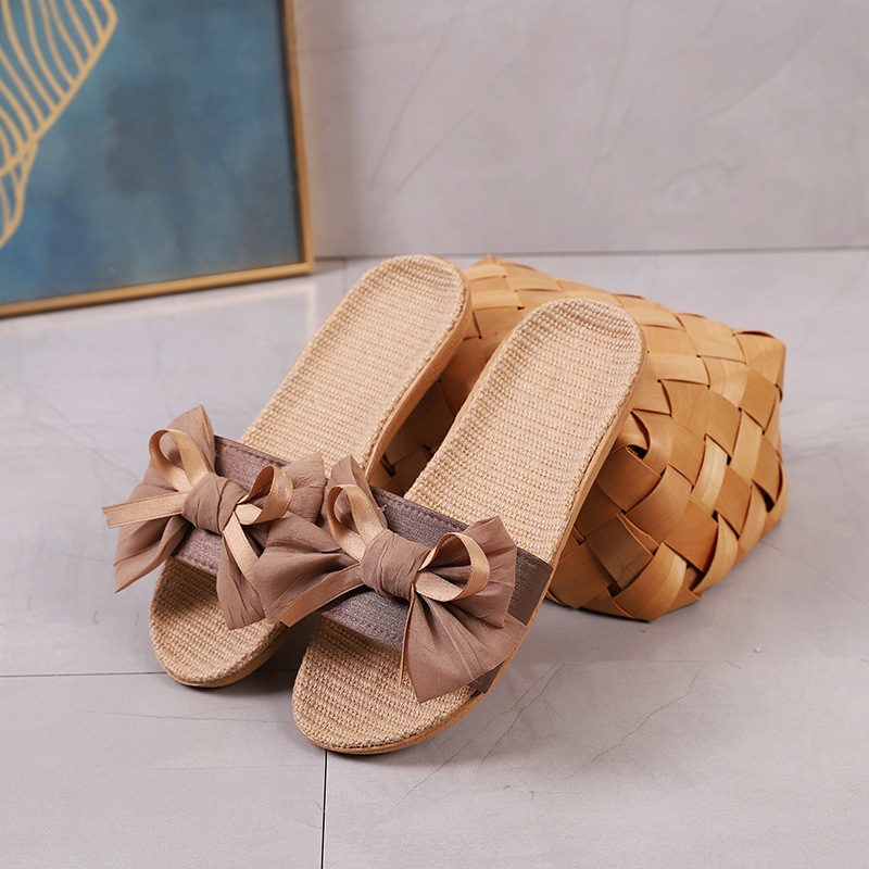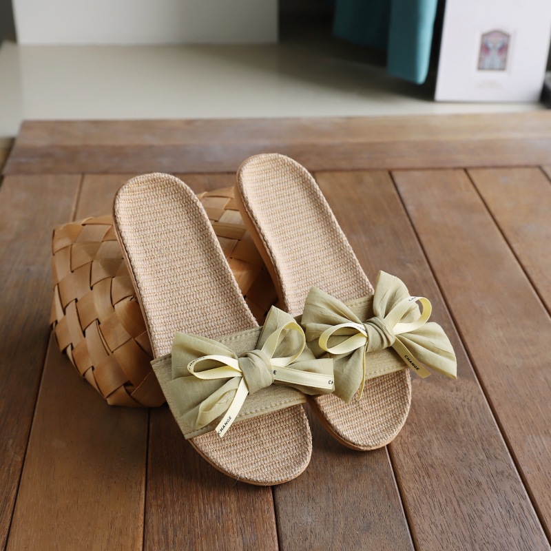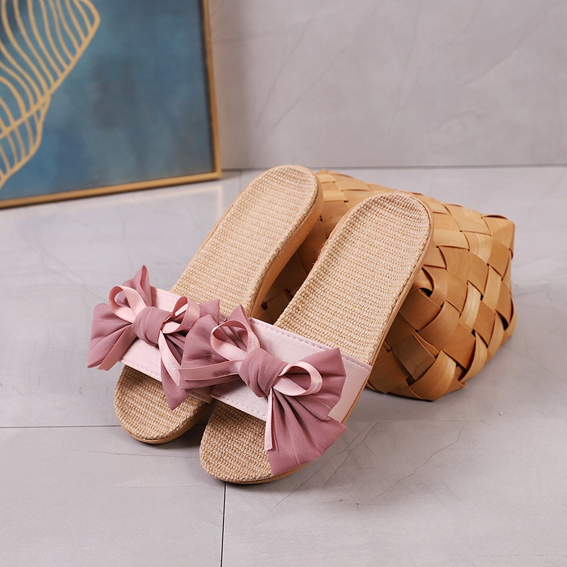 Тапочки женские летние полы внутри и снаружи дома противоскользящие офисные тапочки для дома милые банты льняные тапочки