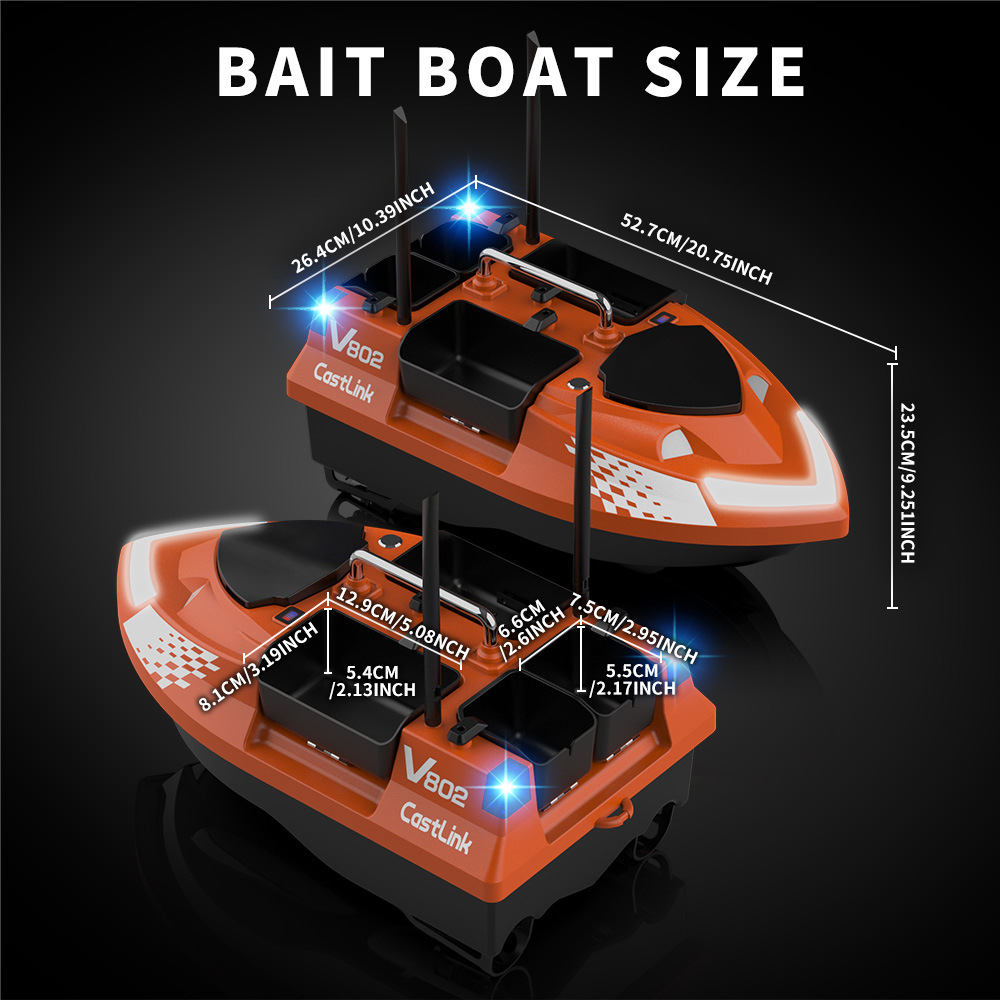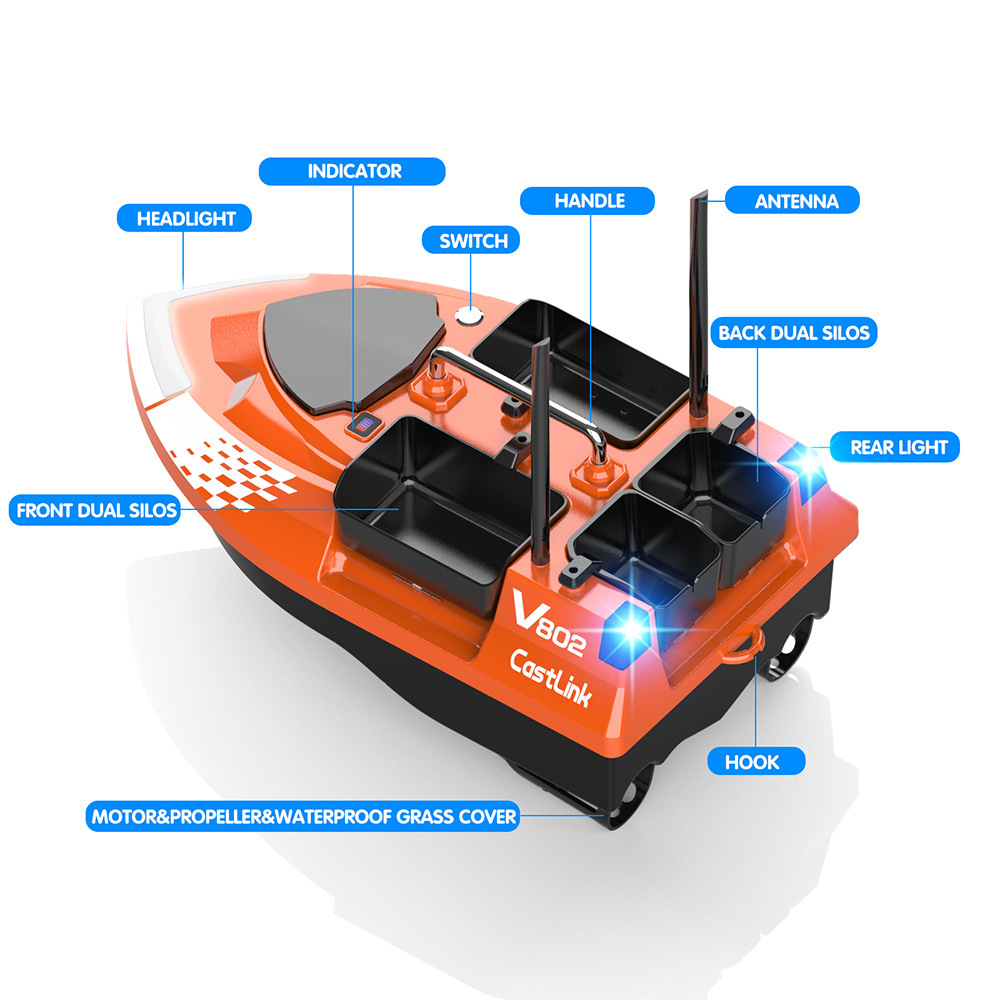 V802 RC Bait Boat 2 антенны с несколькими отделениями, радиус действия 500 м
