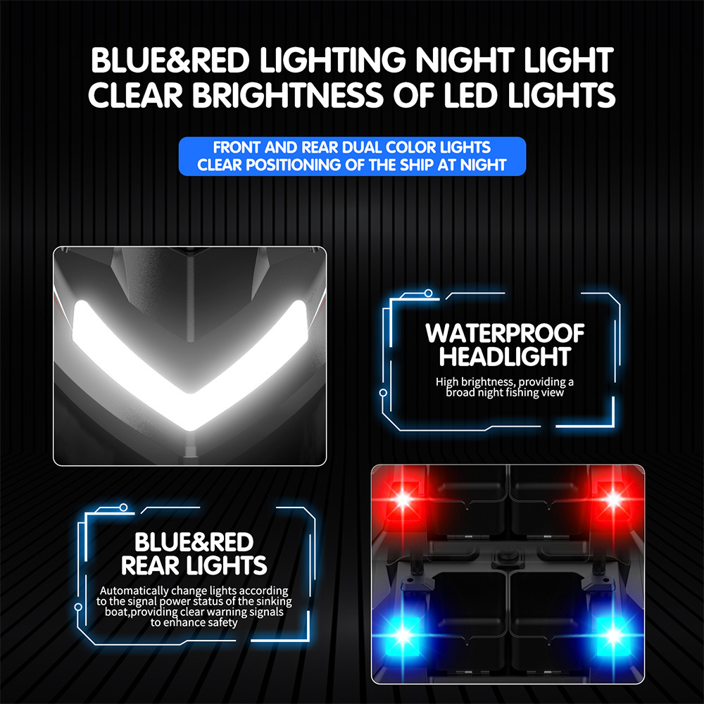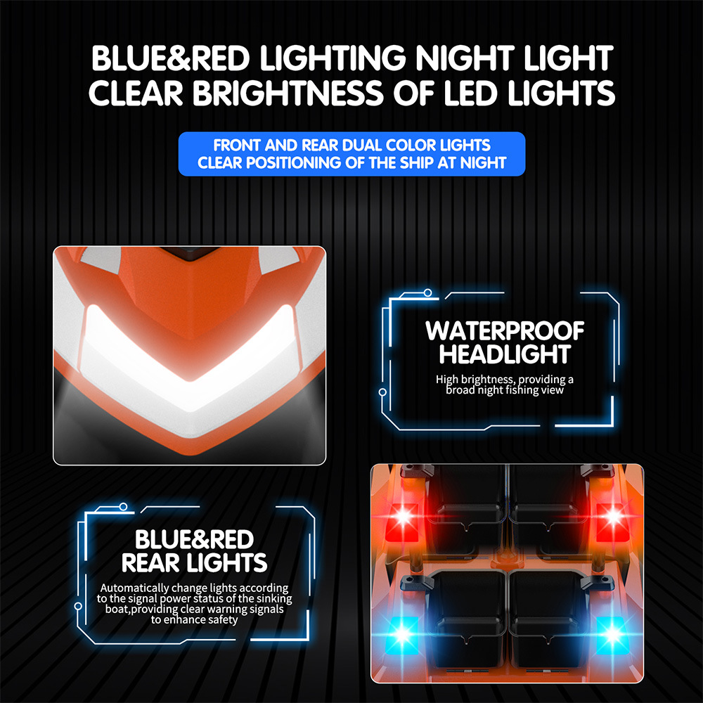 7. Bow bright night navigation lights, aft steering lights; two light modes (always on/flashing)