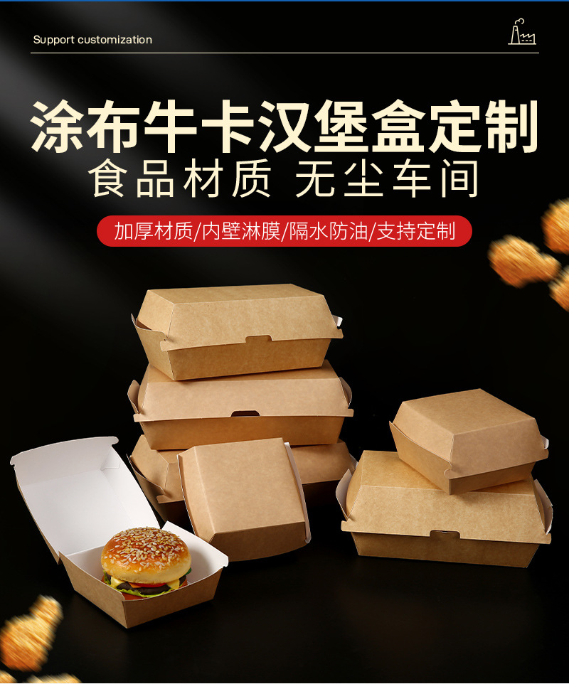 Индивидуальная упаковка для бургеров из покрытого картона, коробка для бургеров из говядины и курицы, коммерческая одноразовая упаковка для бургеров