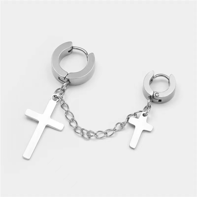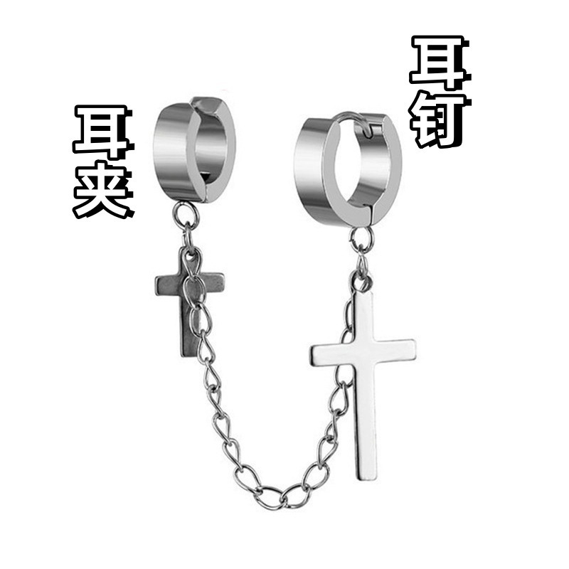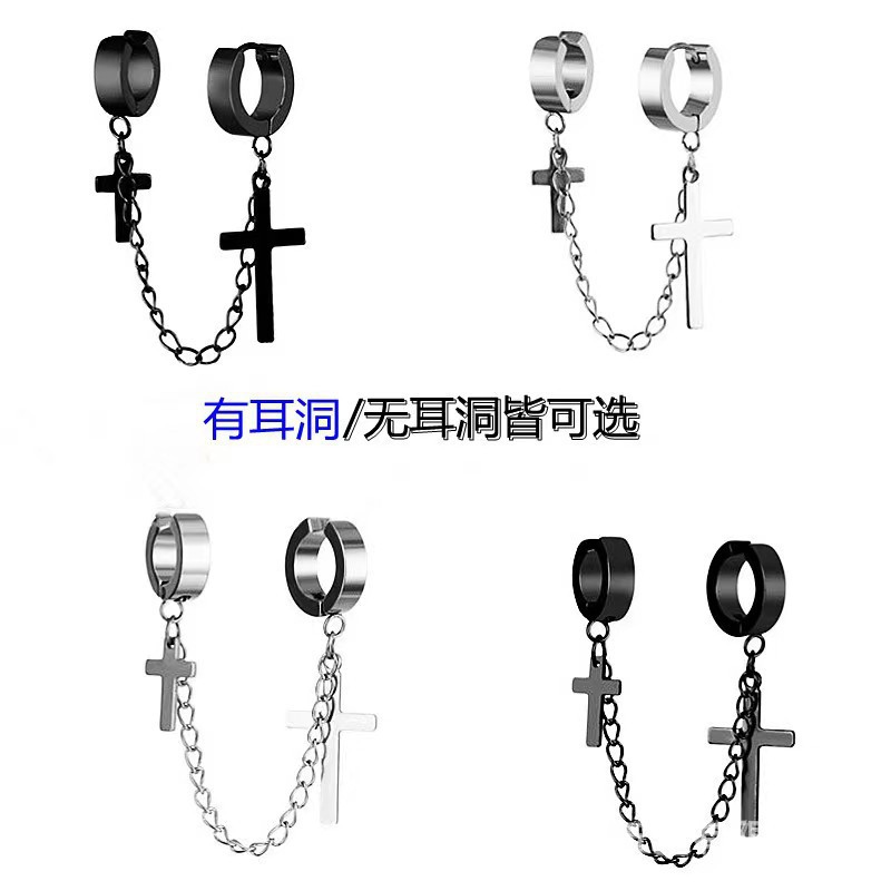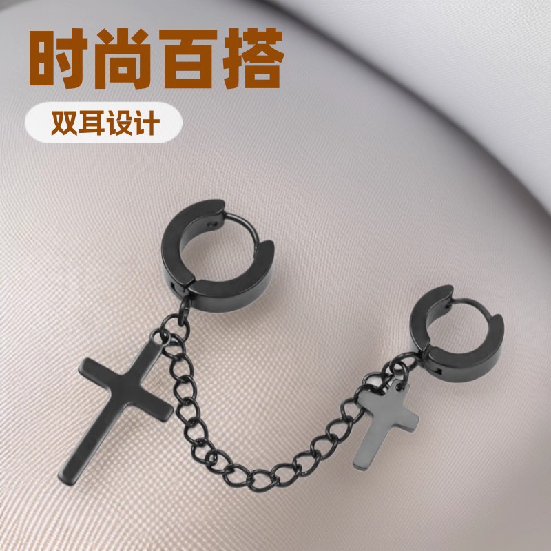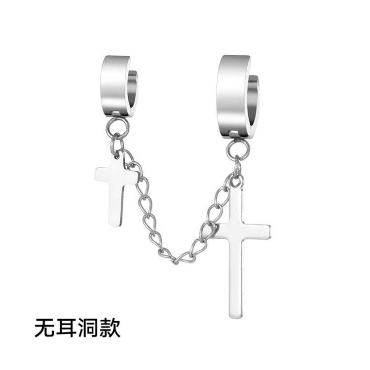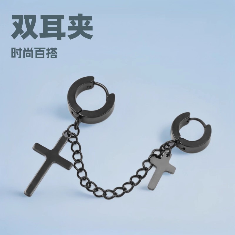 Цепочка с двойными ушками-клипсами в корейском стиле из нержавеющей стали с двойным крестообразным дизайном, универсальная и модная, для мужчин и женщин, многослойные украшения для ушей.