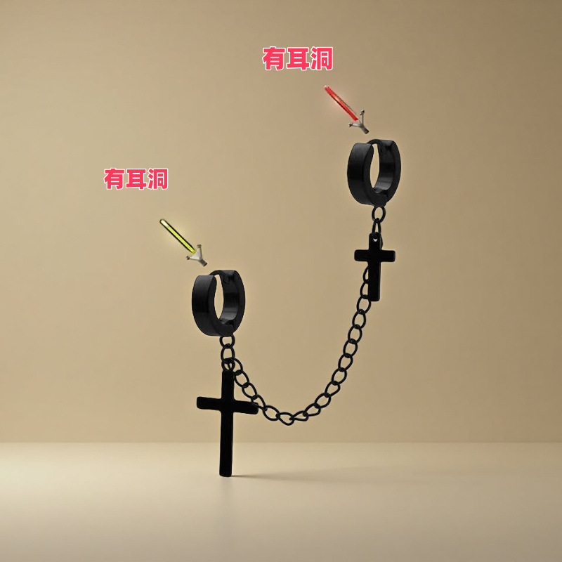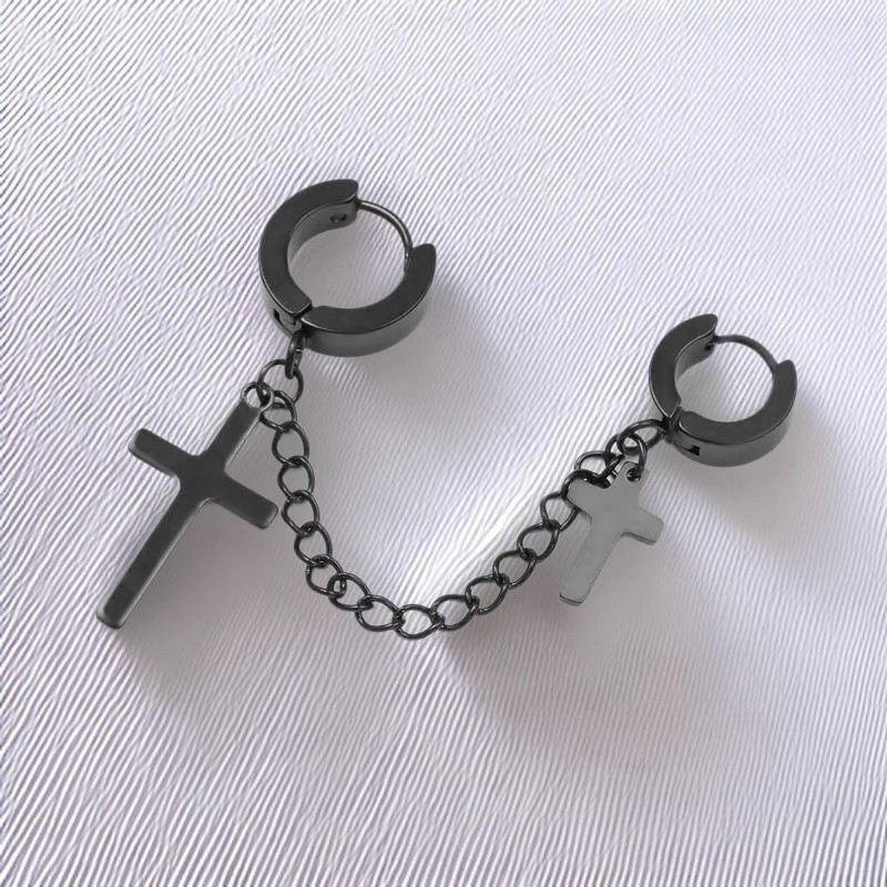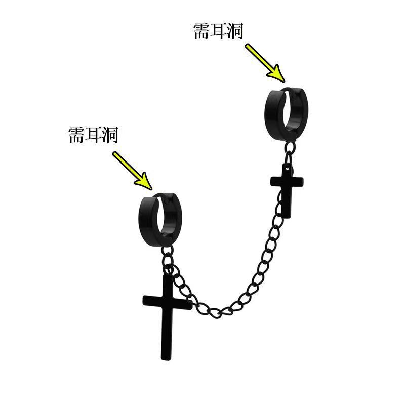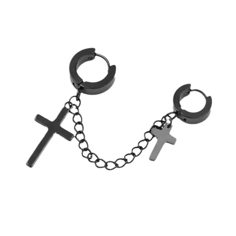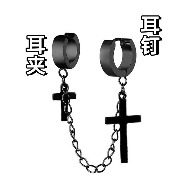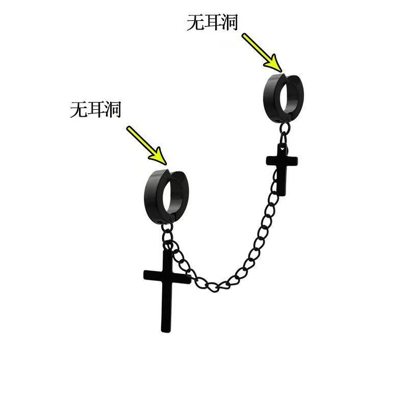 Цепочка с двойными ушками-клипсами в корейском стиле из нержавеющей стали с двойным крестообразным дизайном, универсальная и модная, для мужчин и женщин, многослойные украшения для ушей.