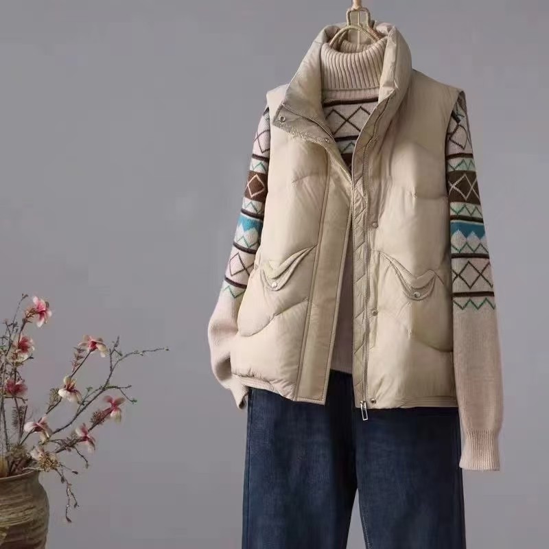 Тонкий дикий пуховик жилет женский воротник теплый жилет