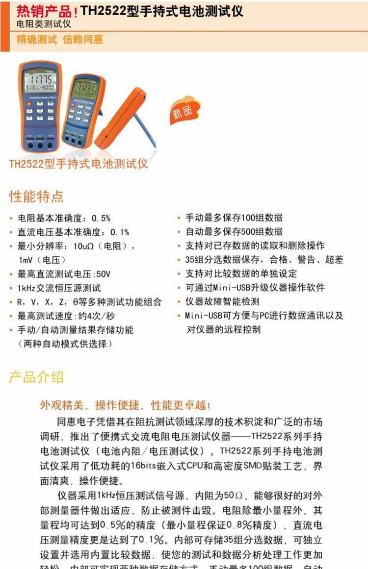 Tonghui TH2522 ручной аккумулятор с низким сопротивлением измеритель 1 кГц переменного тока постоянного напряжения источник USB интерфейс